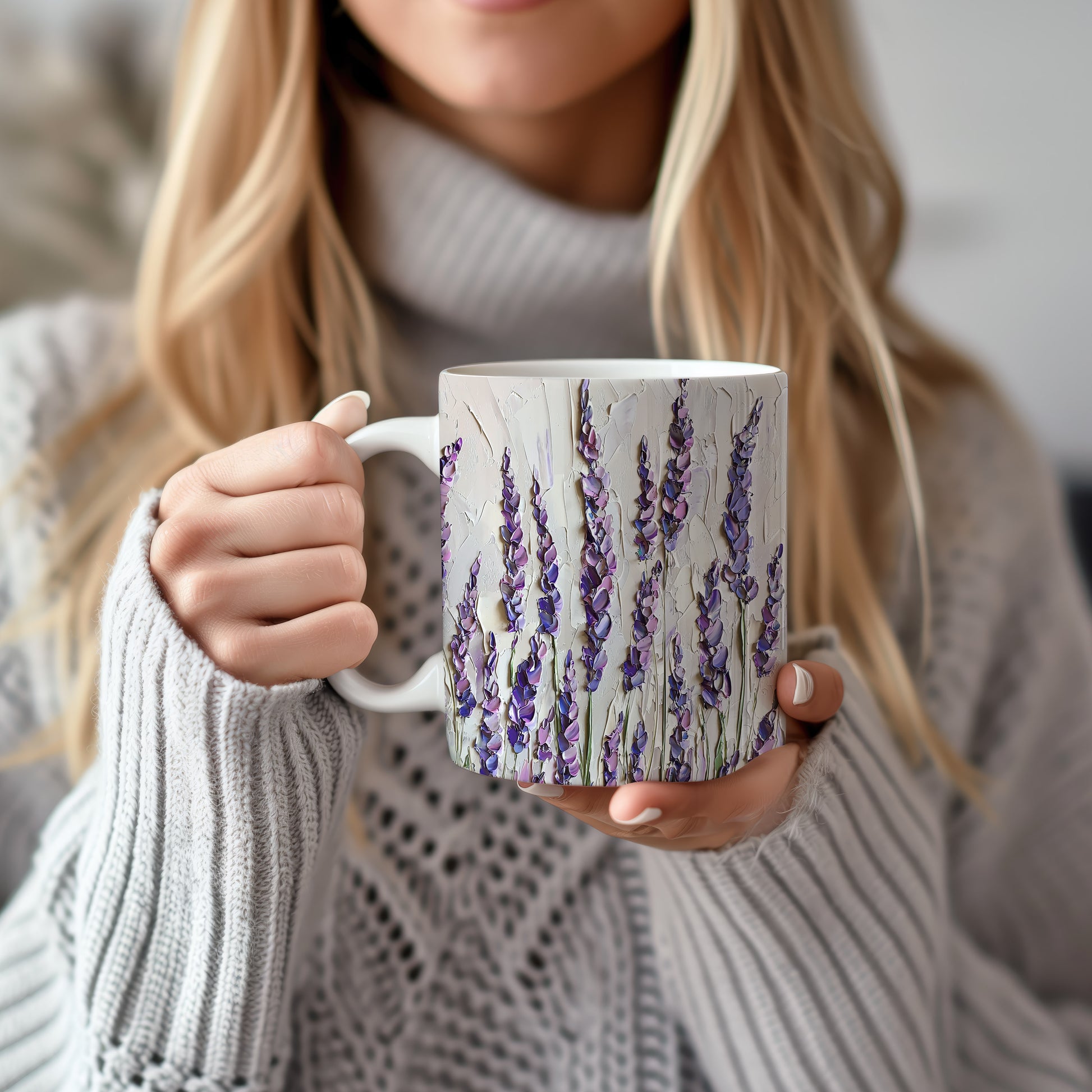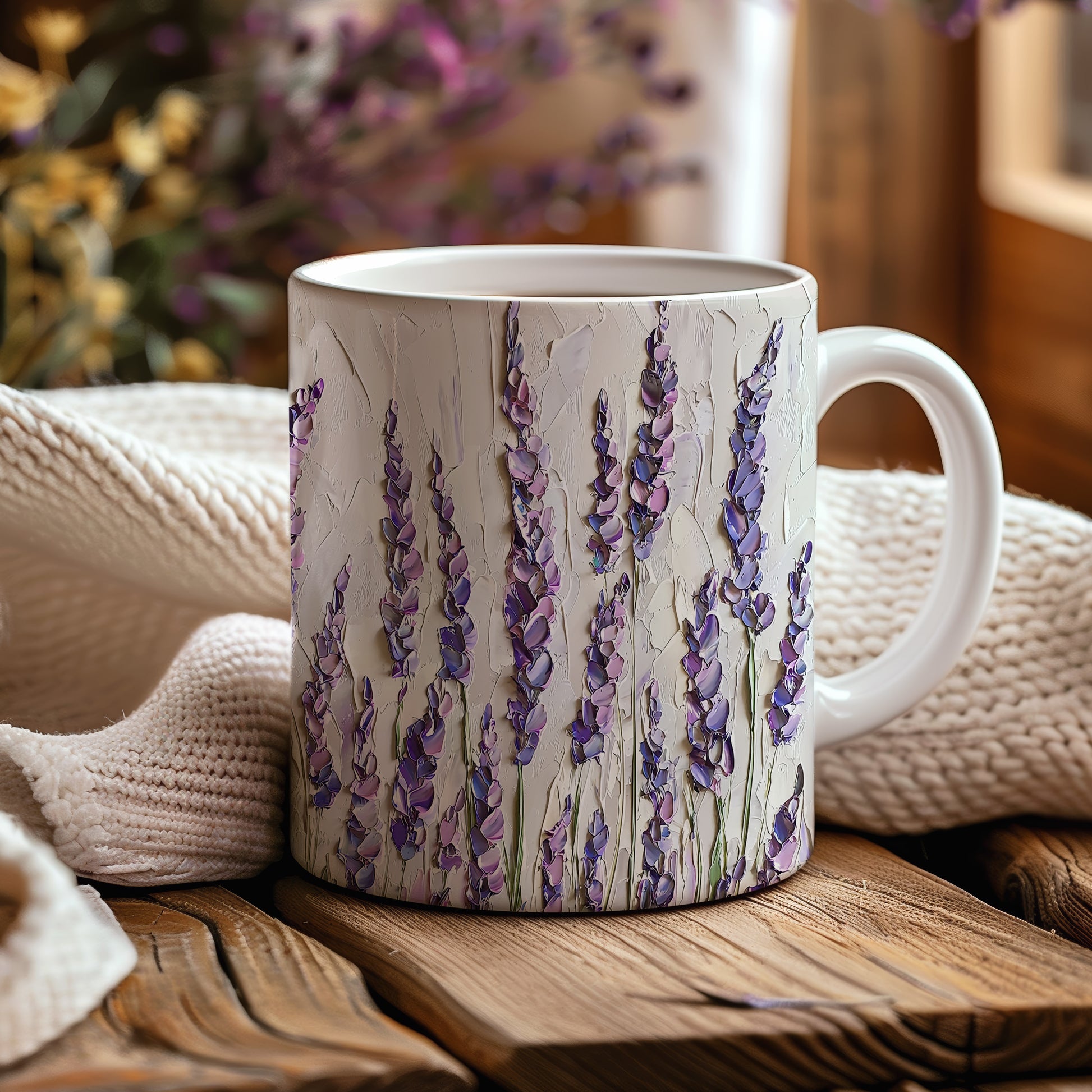 Hrnek s motivem levandule – malířským vzhledem