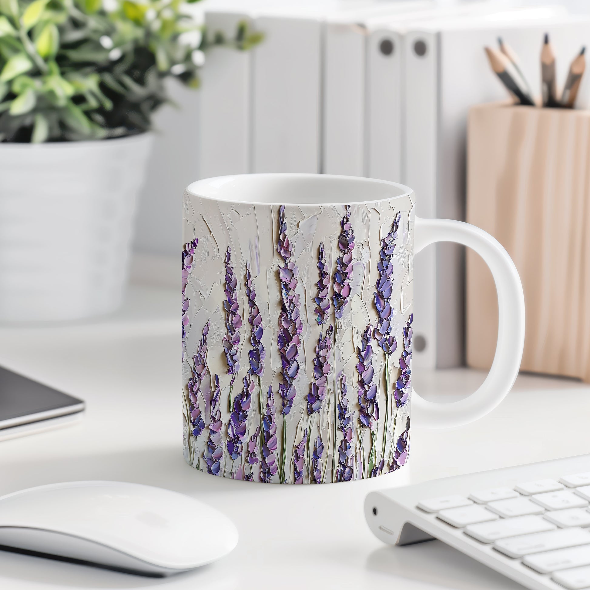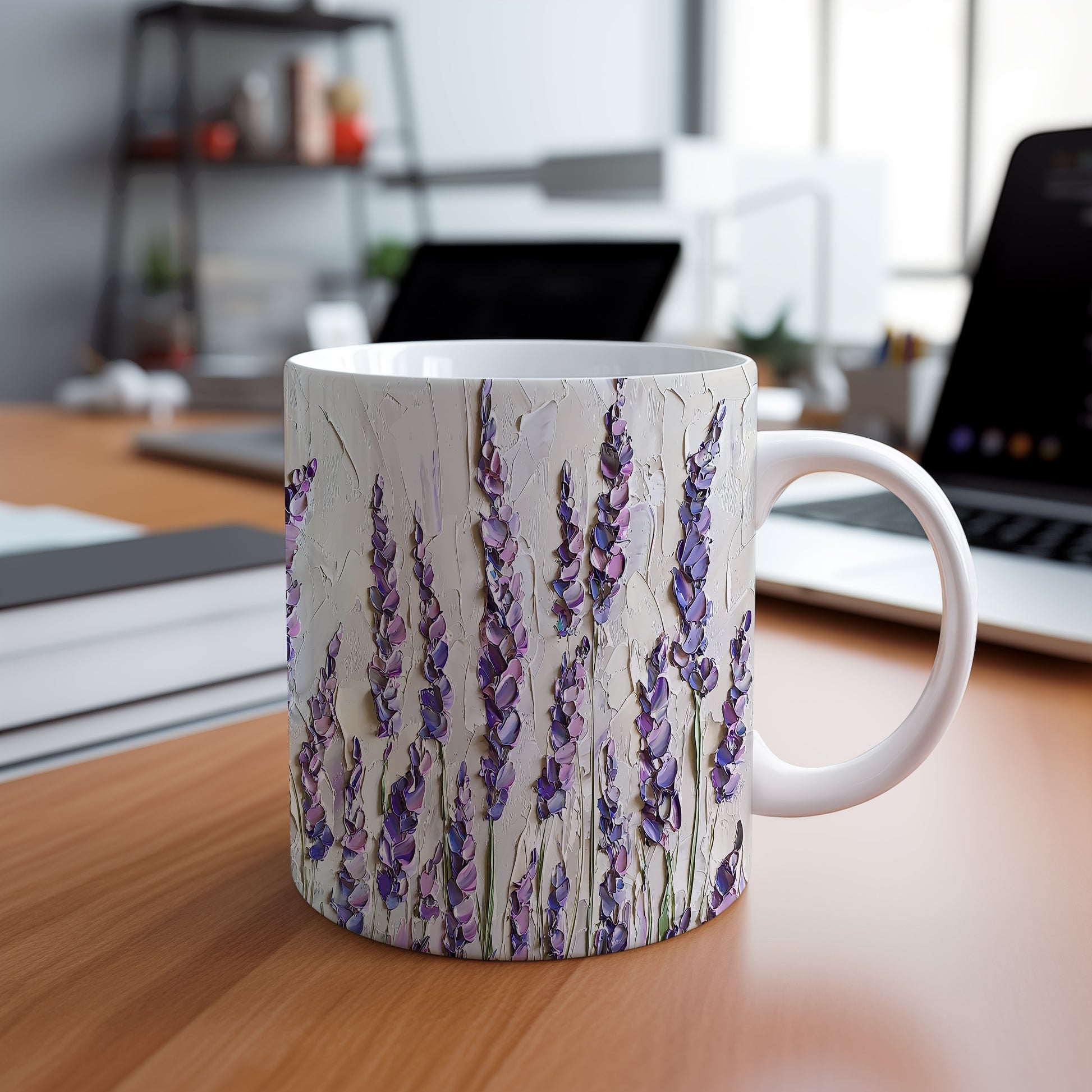 Stylový hrnek s krásným motivem levandulových květů. Tento elegantní kousek je ideální pro každodenní použití a skvělým dárkem pro milovníky přírody. Materiál: keramika. Objem: 330 ml. Vhodné do myčky i mikrovlnky. Užijte si svůj oblíbený nápoj s nádechem elegance.