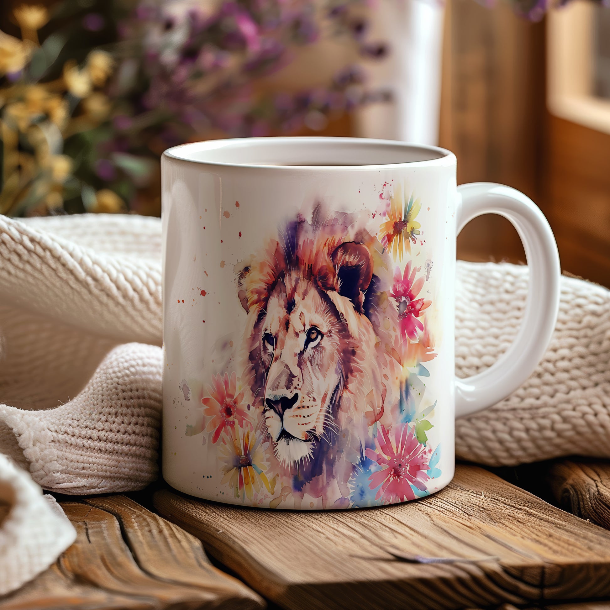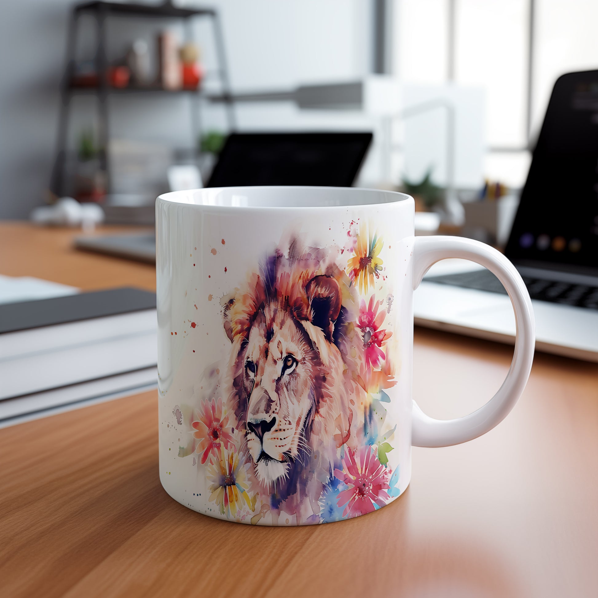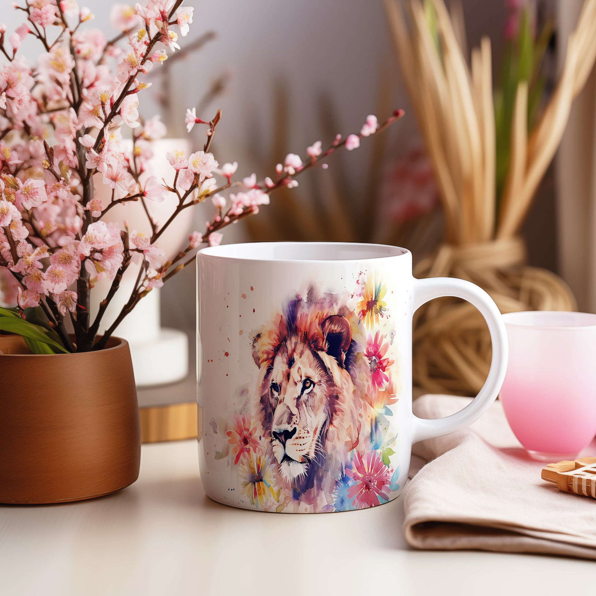 Elegantní hrnek s realistickým motivem lva obklopeného barevnými květinami. Tento hrnek je ideální pro milovníky přírody a zvířat, skvělý tip na dárek pro každého, kdo ocení krásu divoké přírody. Materiál: keramika. Objem: 330 ml. Vhodné do myčky i mikrovlnky. Používání tohoto hrnku přináší radost z každého doušku.