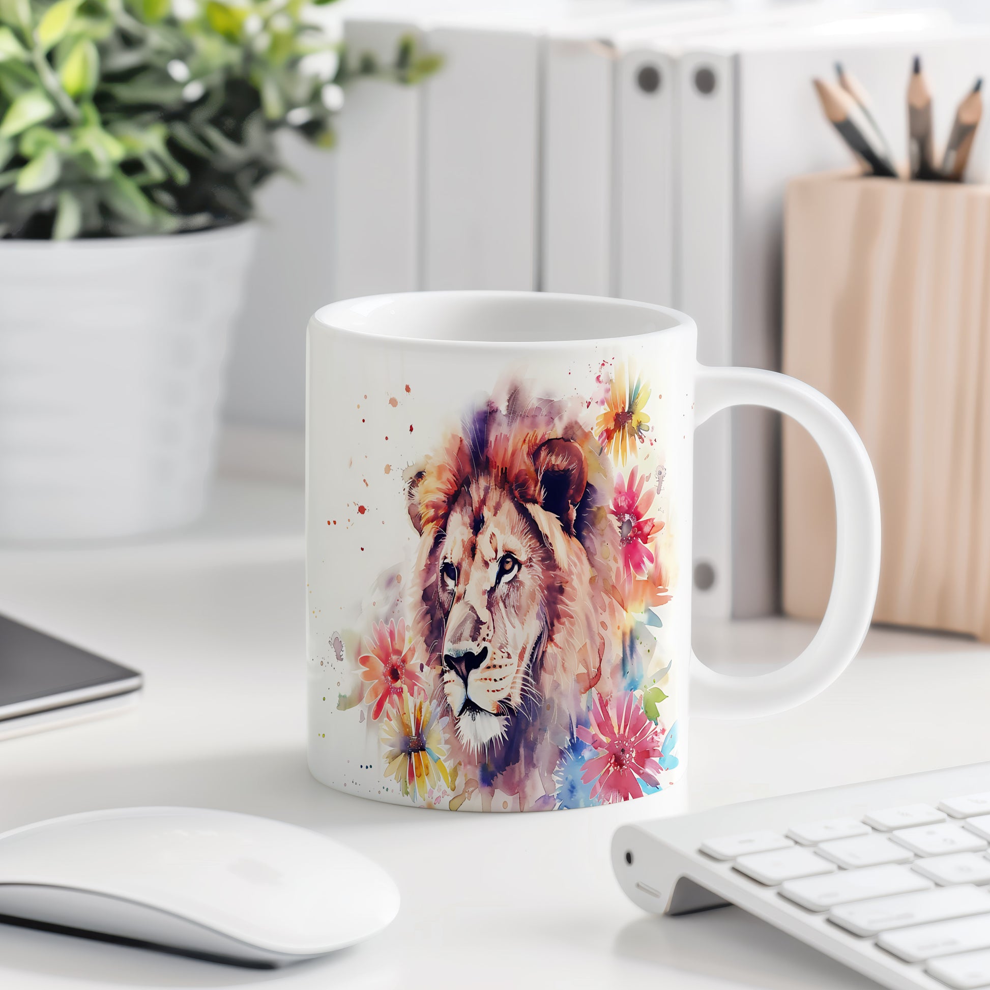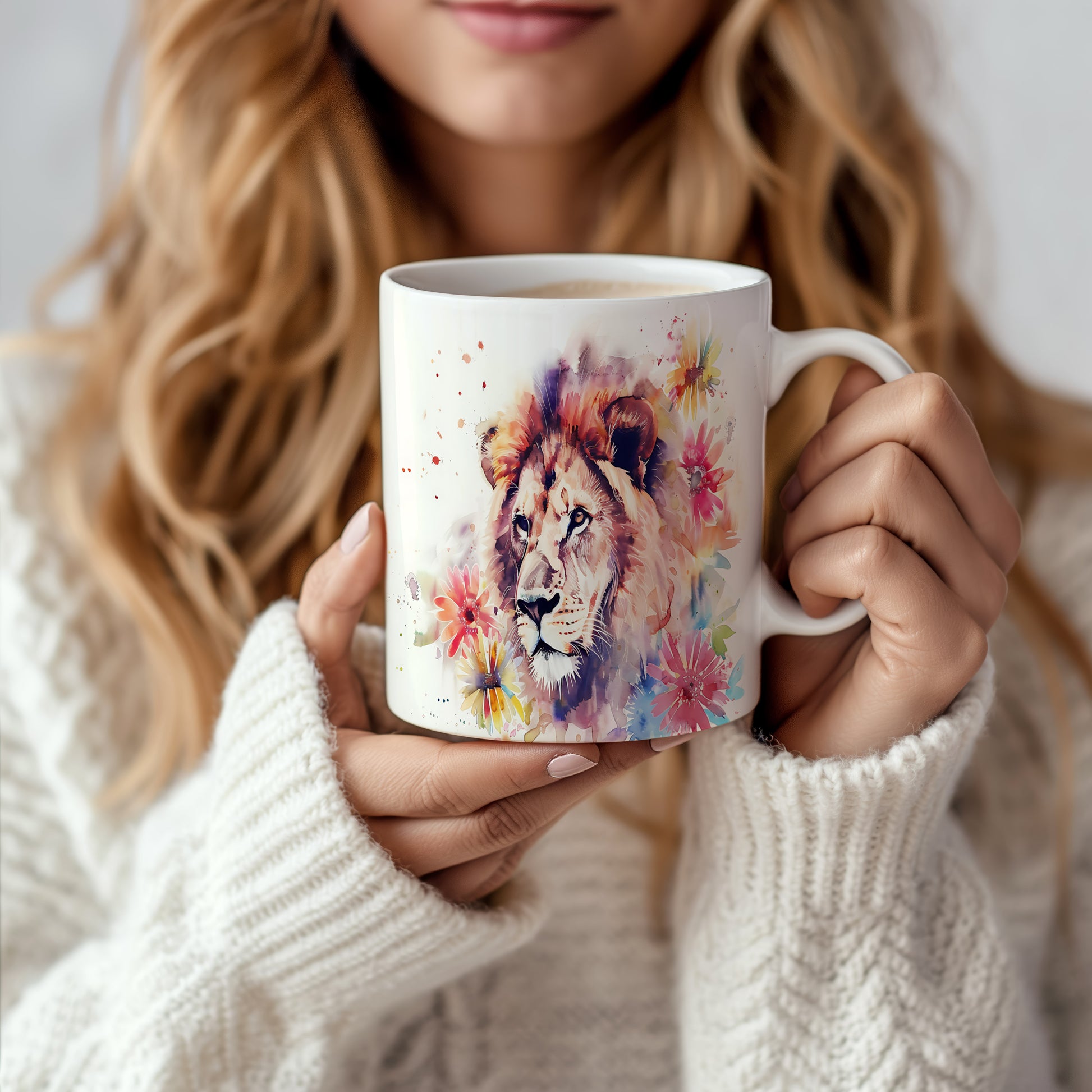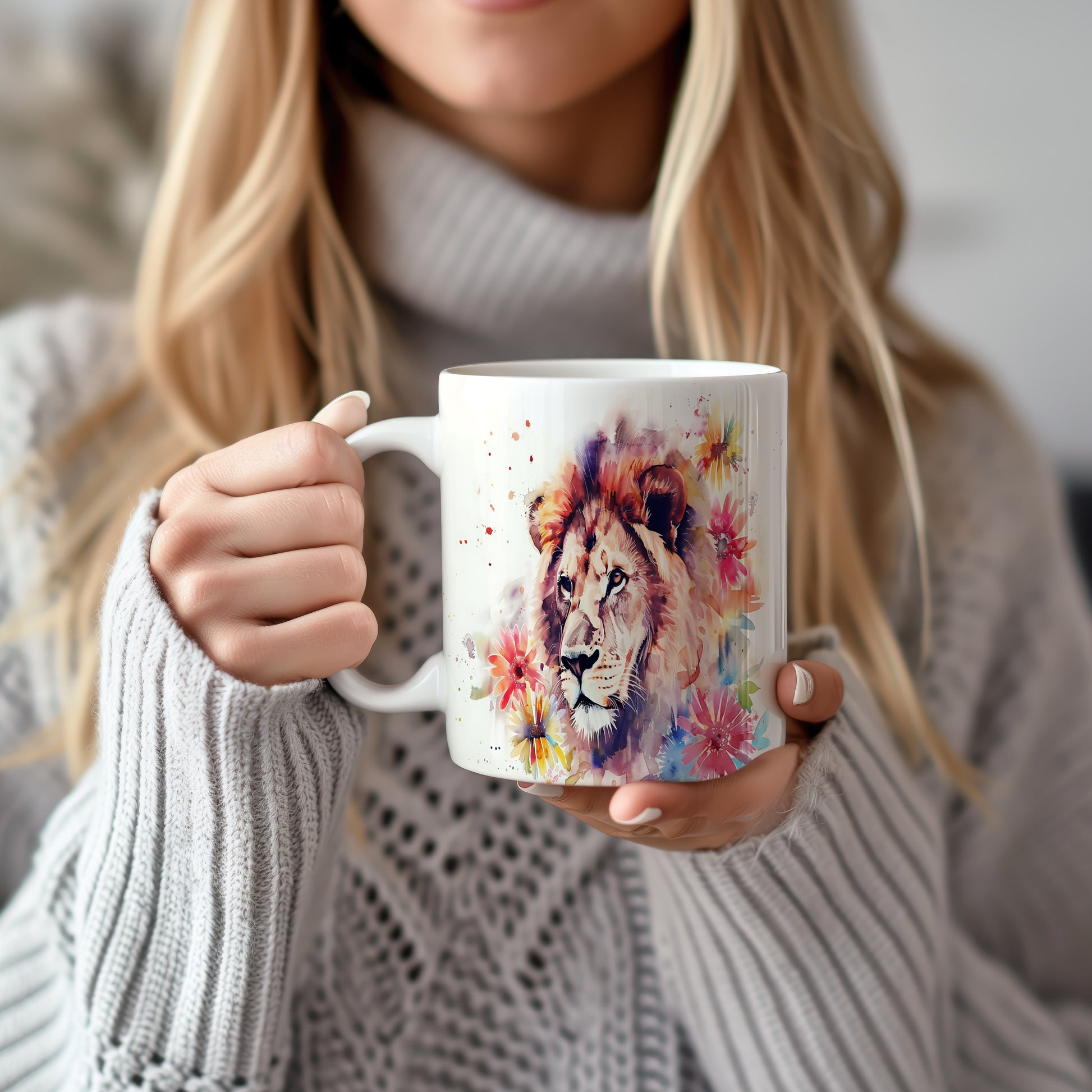 Elegantní hrnek s realistickým motivem lva obklopeného barevnými květinami. Tento hrnek je ideální pro milovníky přírody a zvířat, skvělý tip na dárek pro každého, kdo ocení krásu divoké přírody. Materiál: keramika. Objem: 330 ml. Vhodné do myčky i mikrovlnky. Používání tohoto hrnku přináší radost z každého doušku.