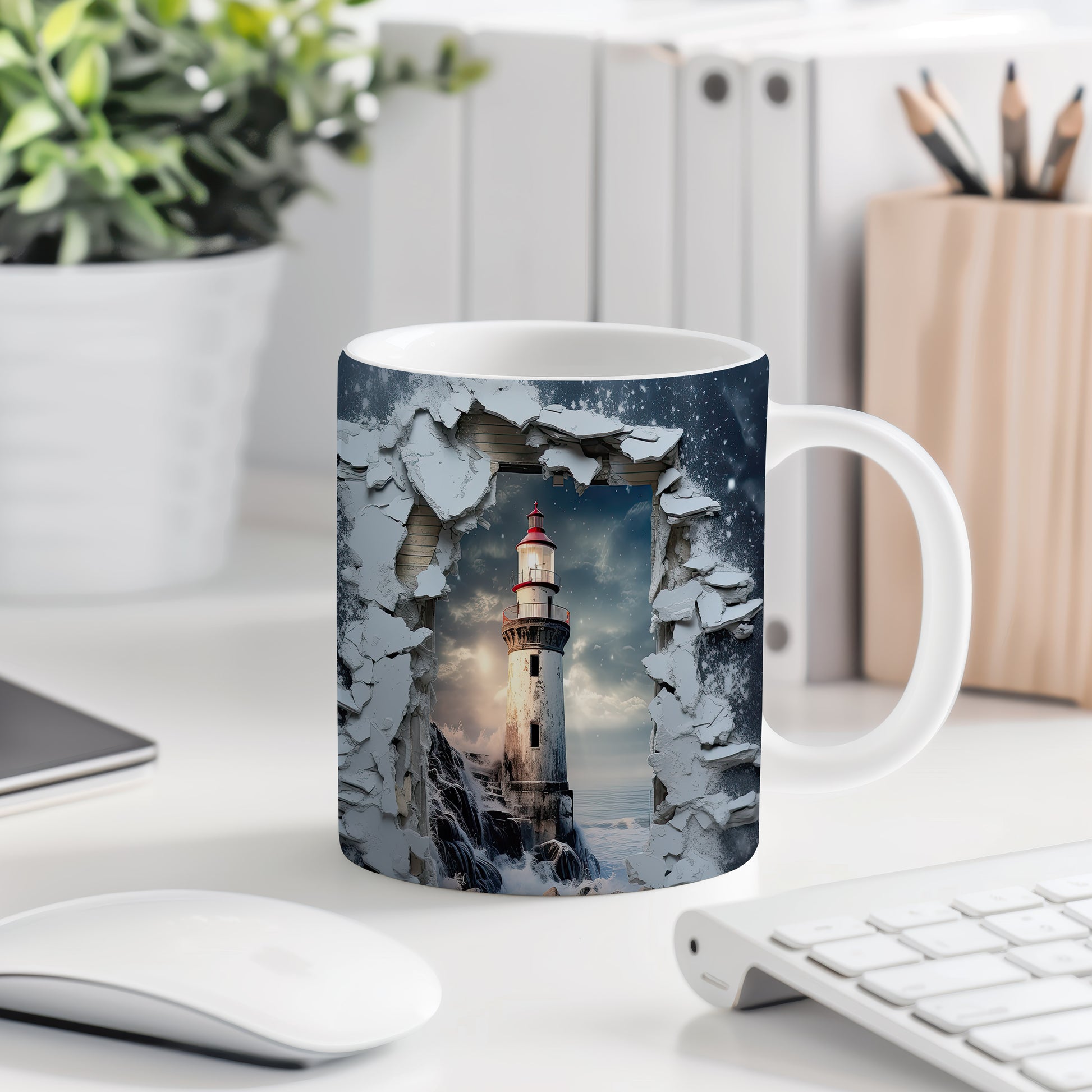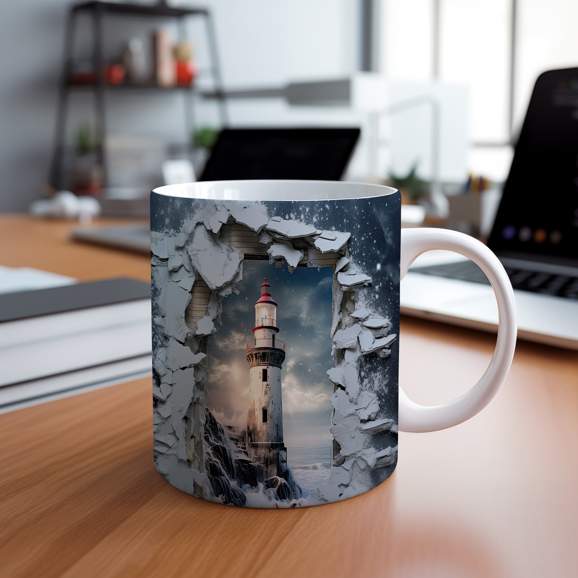 Hrnek s realistickým motivem majáku je ideální pro milovníky přírody a mořských scenérií. Skvělý tip na dárek pro přátele nebo rodinu, kteří ocení originální design. Materiál: keramika. Objem: 330 ml. Vhodné do myčky i mikrovlnky. Tento hrnek vám přinese radost při každém doušku vašeho oblíbeného nápoje.