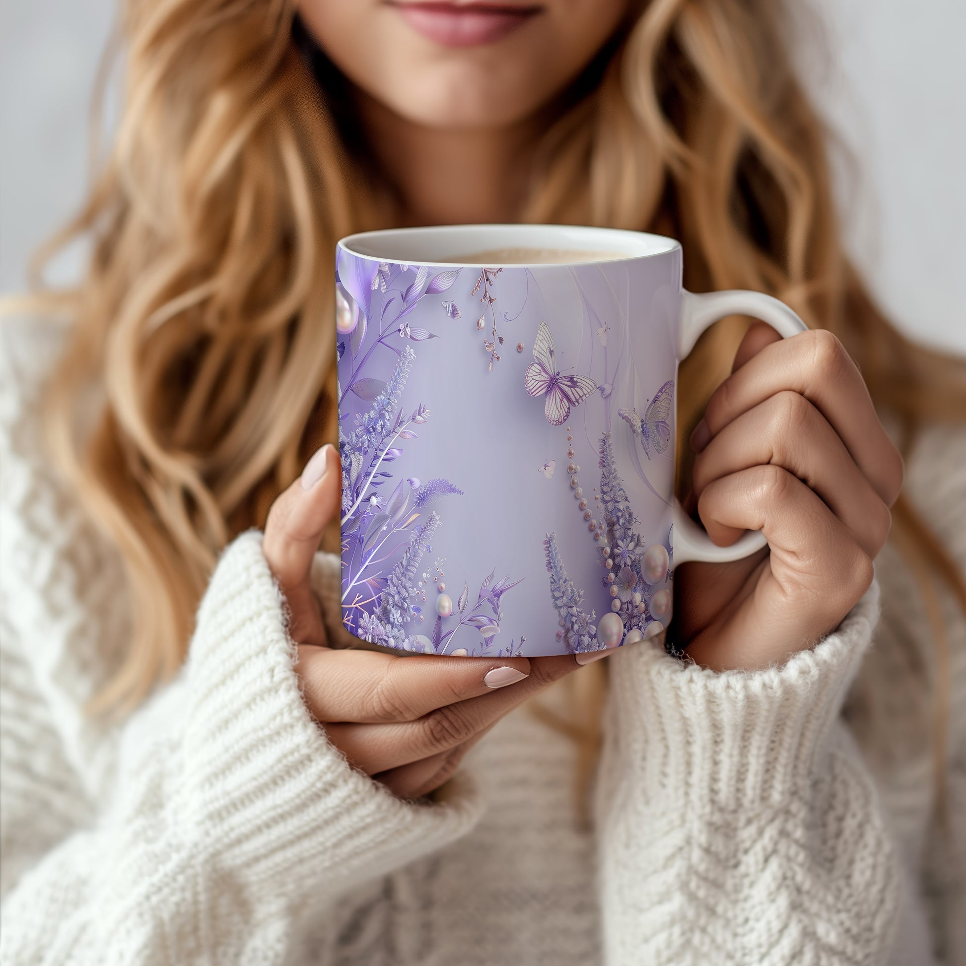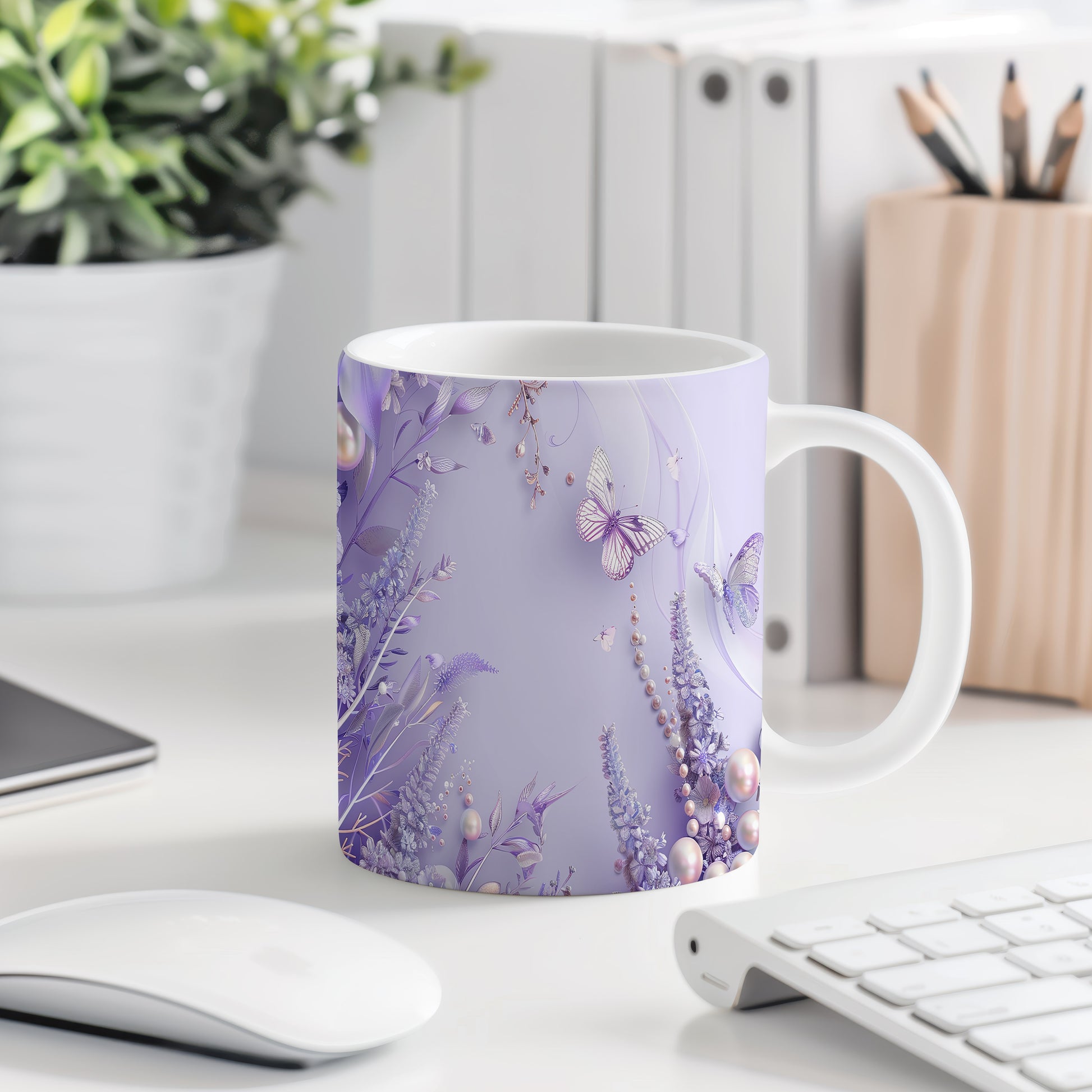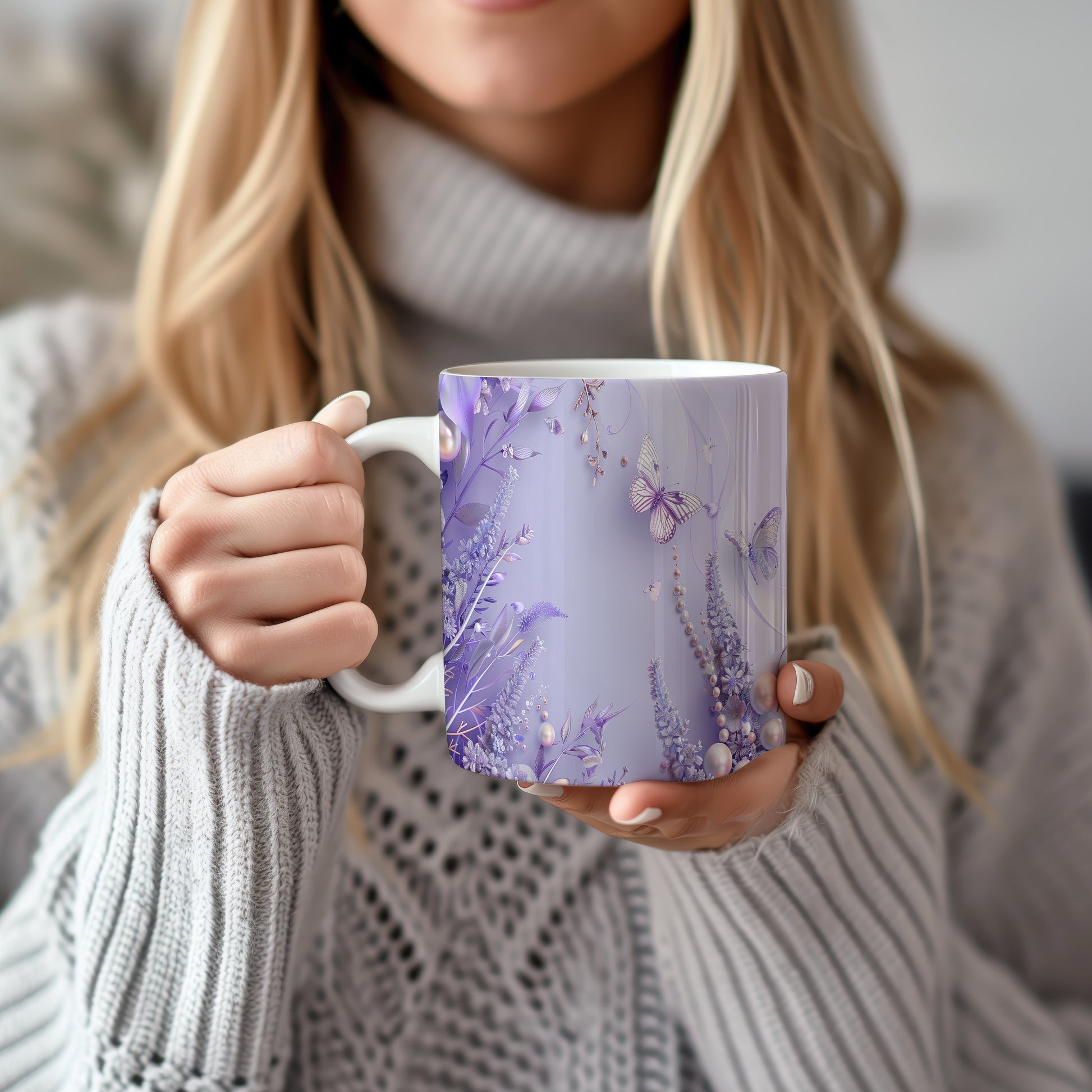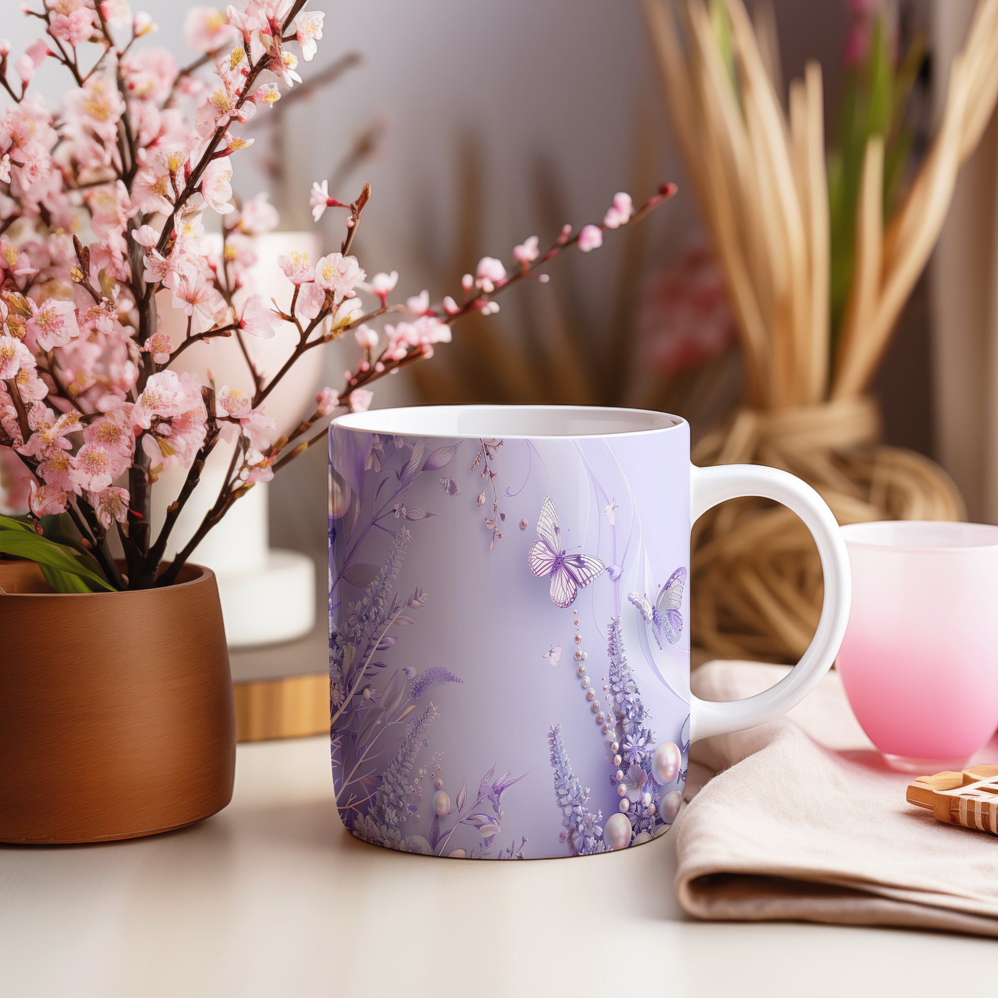 Elegantní hrnek s motivem motýlů v jemných odstínech fialové. Tento hrnek je ideální pro milovníky přírody a květinových vzorů, skvělý tip na dárek pro každou příležitost. Materiál: keramika. Objem: 330 ml. Vhodné do myčky i mikrovlnky. Používáním tohoto hrnku si užijete nejen krásný design, ale i praktické vlastnosti.