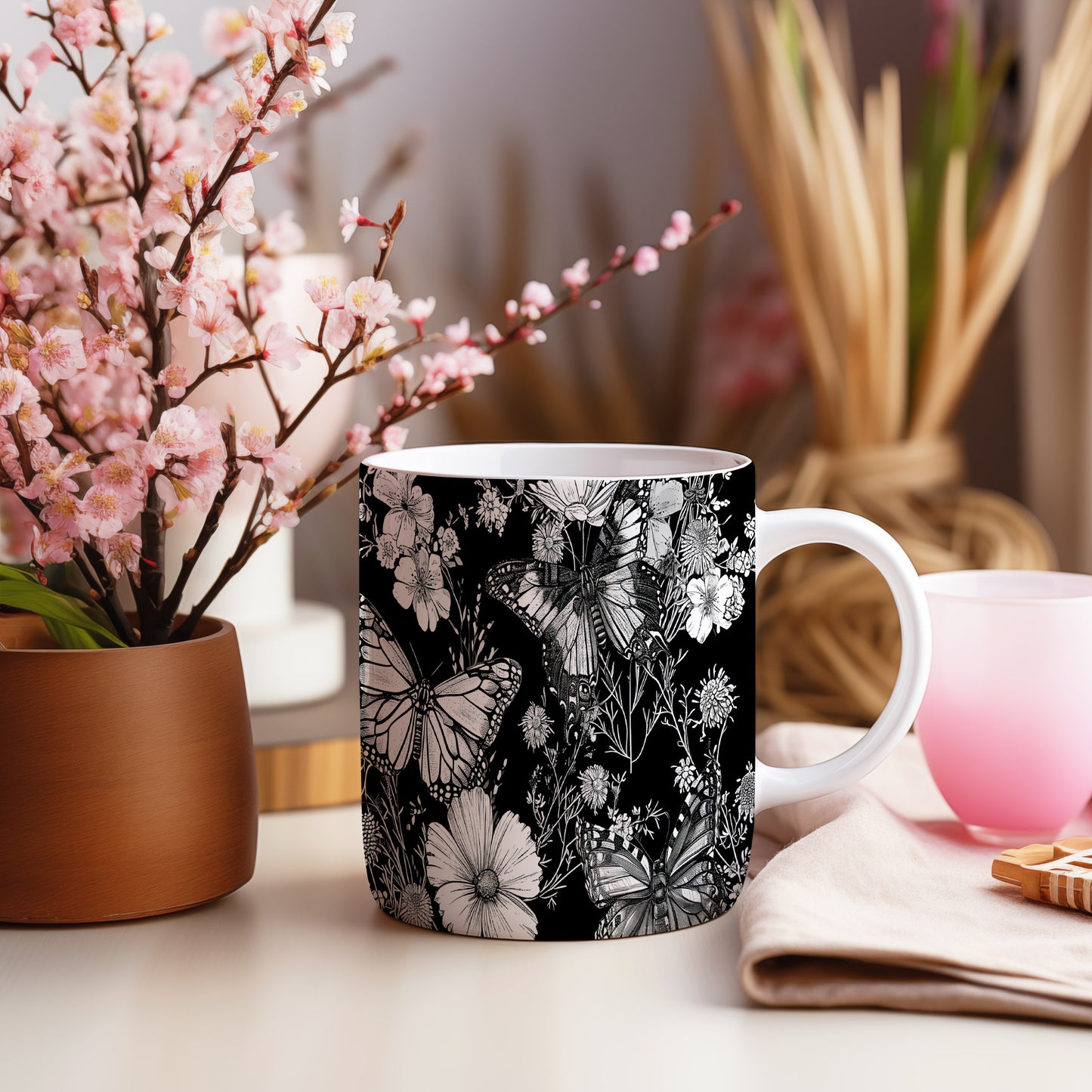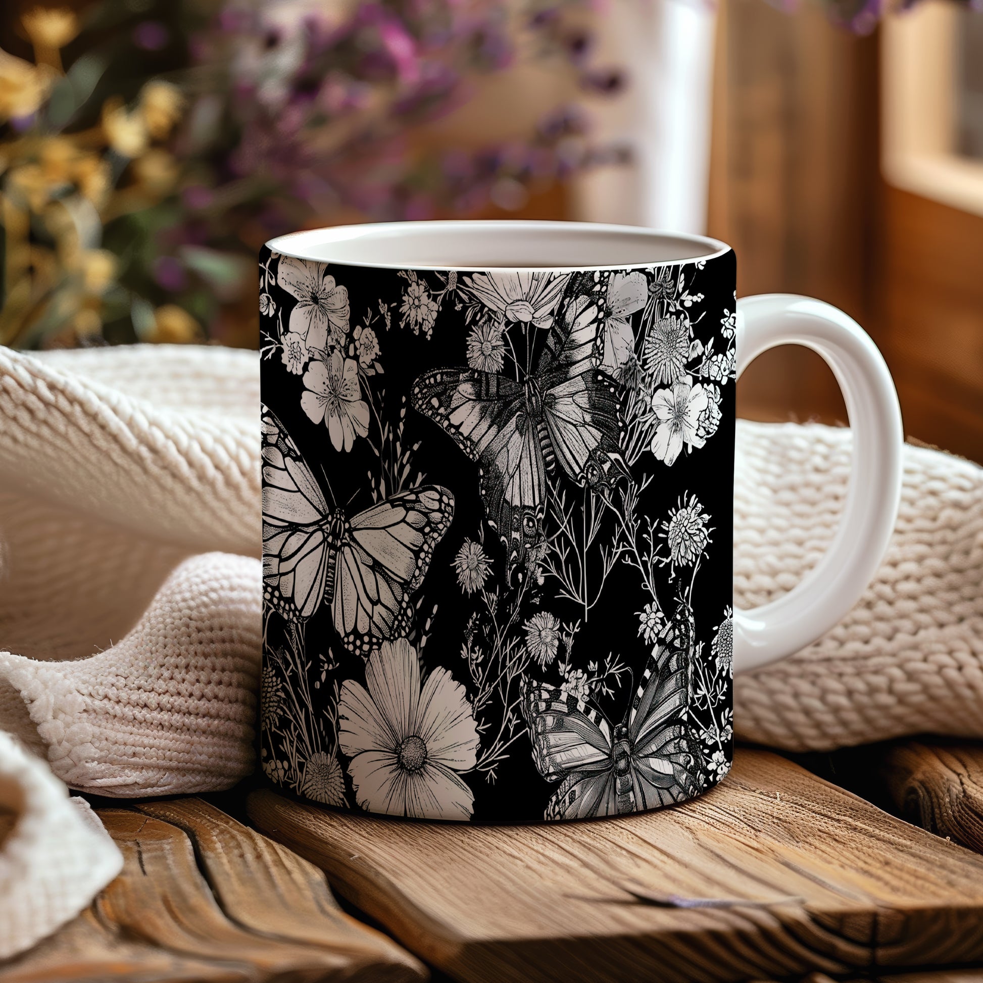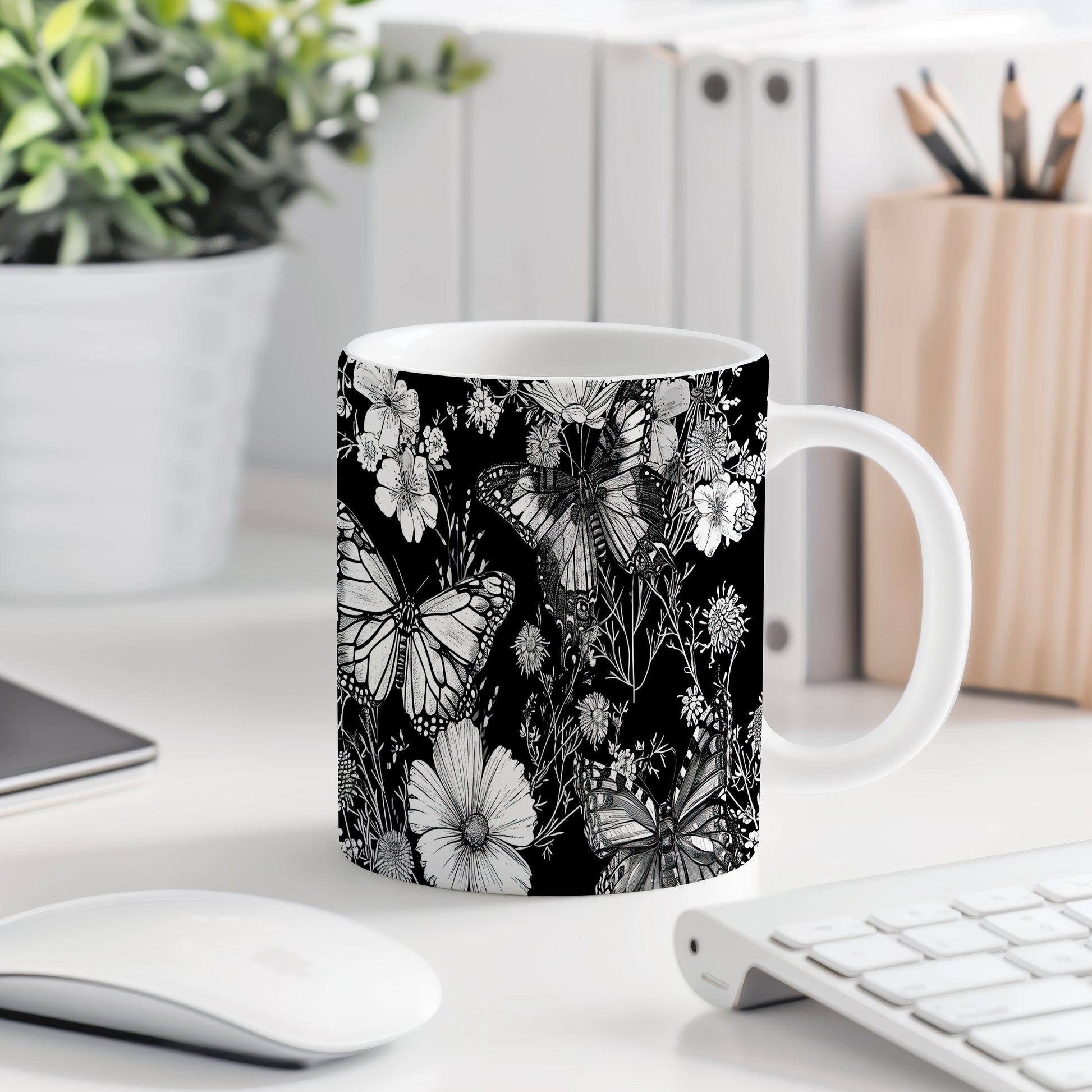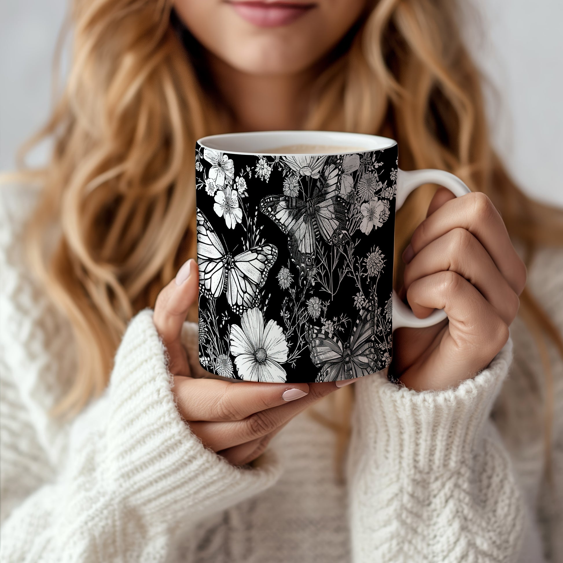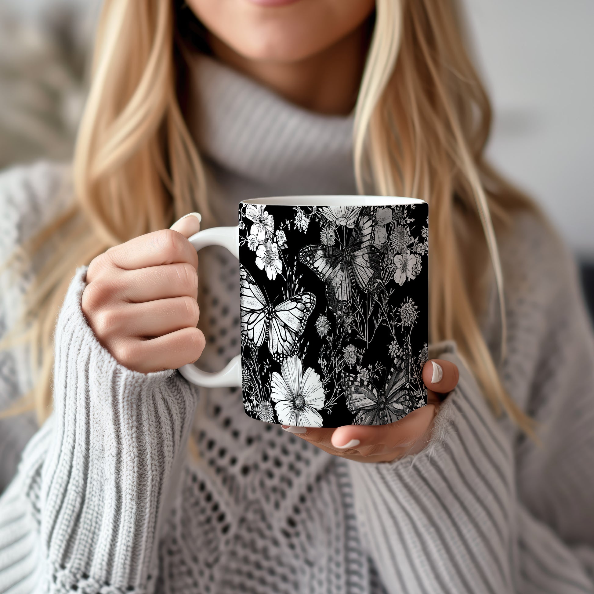 Elegantní hrnek s detailním černobílým motivem motýlů. Tento stylový kousek je ideální pro milovníky čaje a kávy, skvěle se hodí jako dárek pro přátele nebo rodinu. Materiál: keramika. Objem: 330 ml. Vhodné do myčky i mikrovlnky. Používáním tohoto hrnku přinesete do svého dne klid a harmonii.