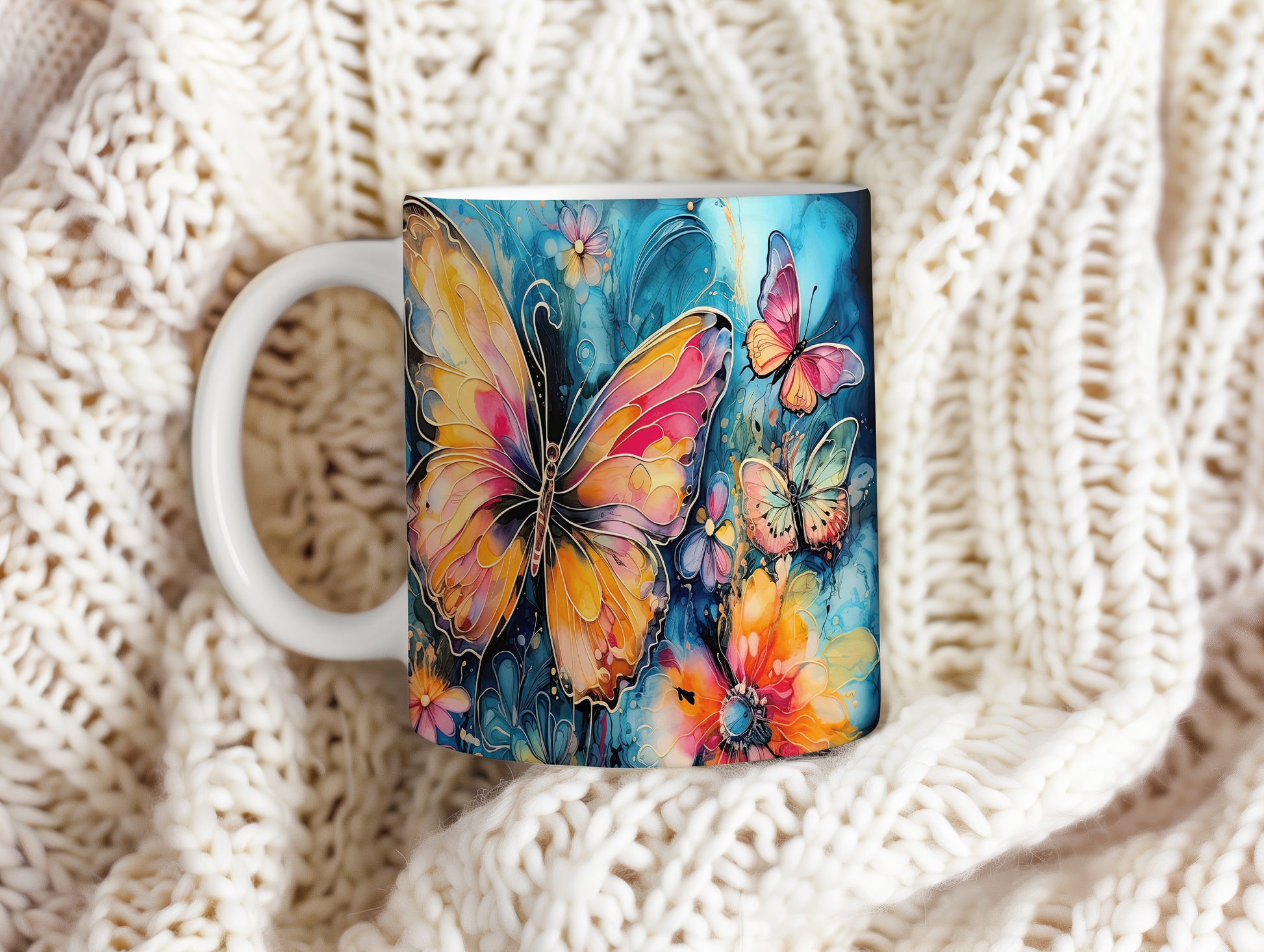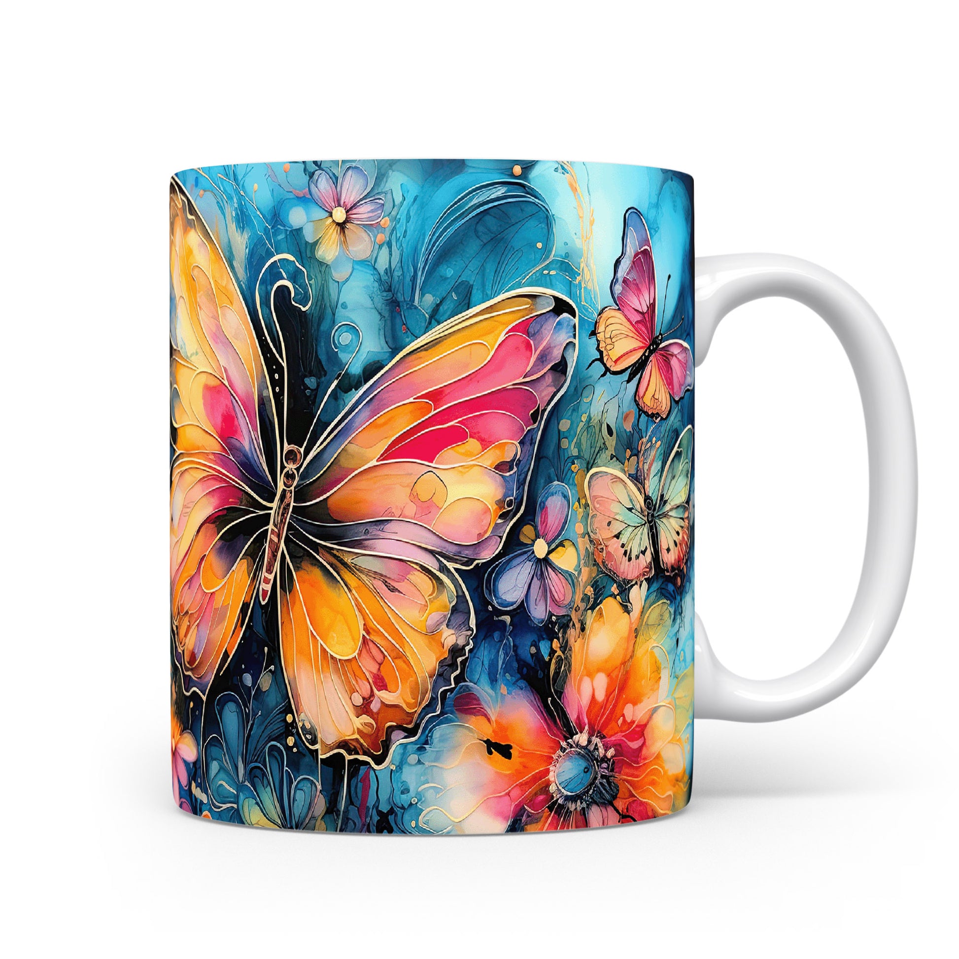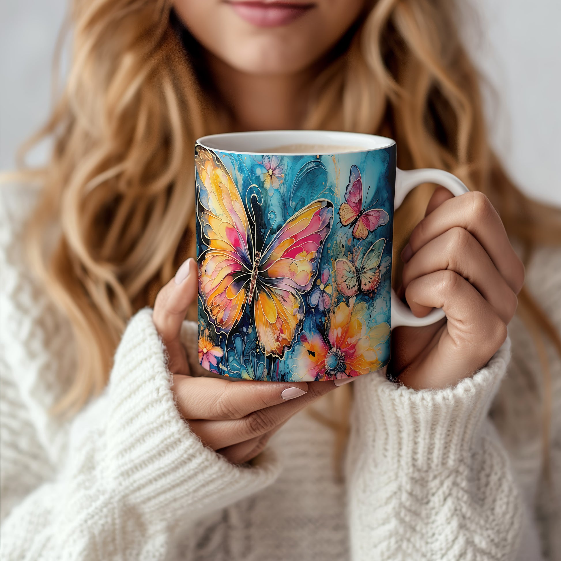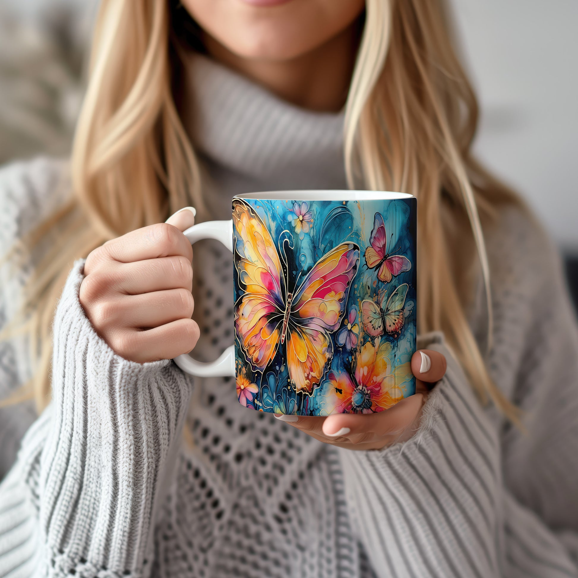 Elegantní hrnek zdobený barevnými motýly. Tento motiv evokuje přírodu a jaro, ideální pro milovníky květin a zvířat. Skvělý tip na dárek pro přátele nebo rodinu. Materiál: keramika. Objem: 330 ml. Vhodné do myčky i mikrovlnky. Užívejte si kávu nebo čaj s tímto stylovým hrnkem, který přináší radost do každého dne.