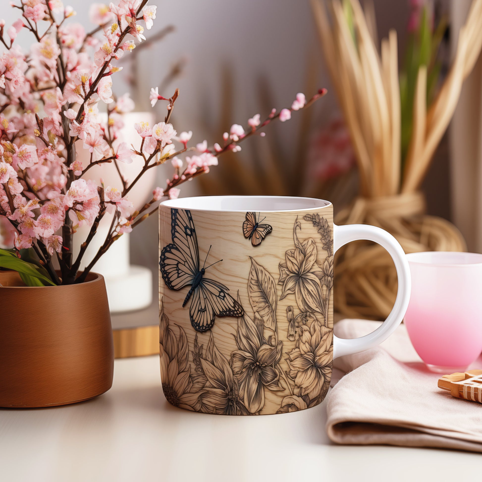 Tento keramický hrnek s jemným designem motýlů je ideální pro každodenní používání. Skvěle se hodí jako dárek pro milovníky přírody nebo jako stylový doplněk do vaší kuchyně. Materiál: keramika. Objem: 330 ml. Vhodné do myčky i mikrovlnky. Díky svému elegantnímu vzhledu přináší do vašeho pití radost a pohodu.