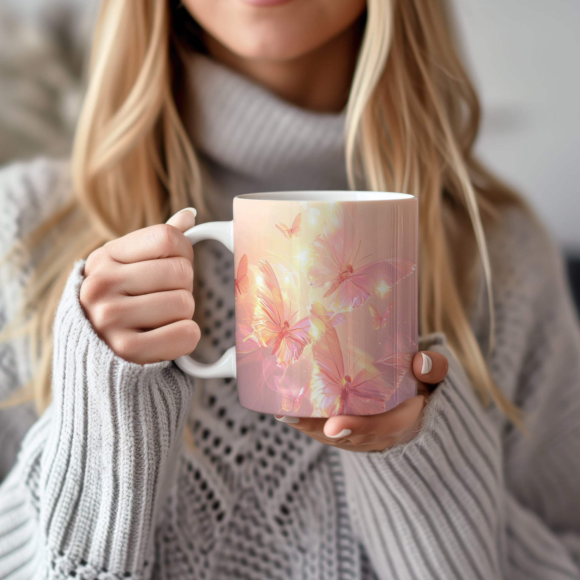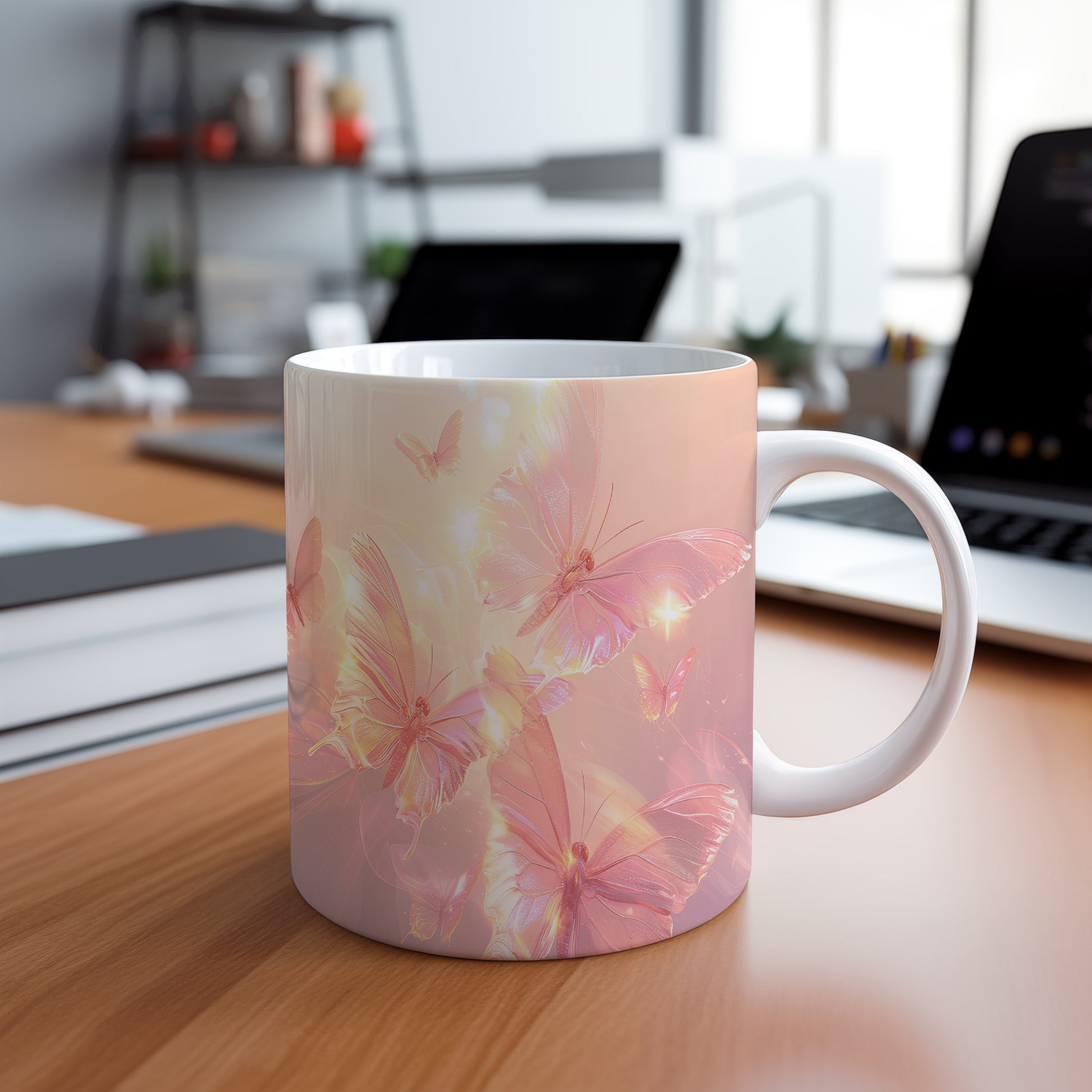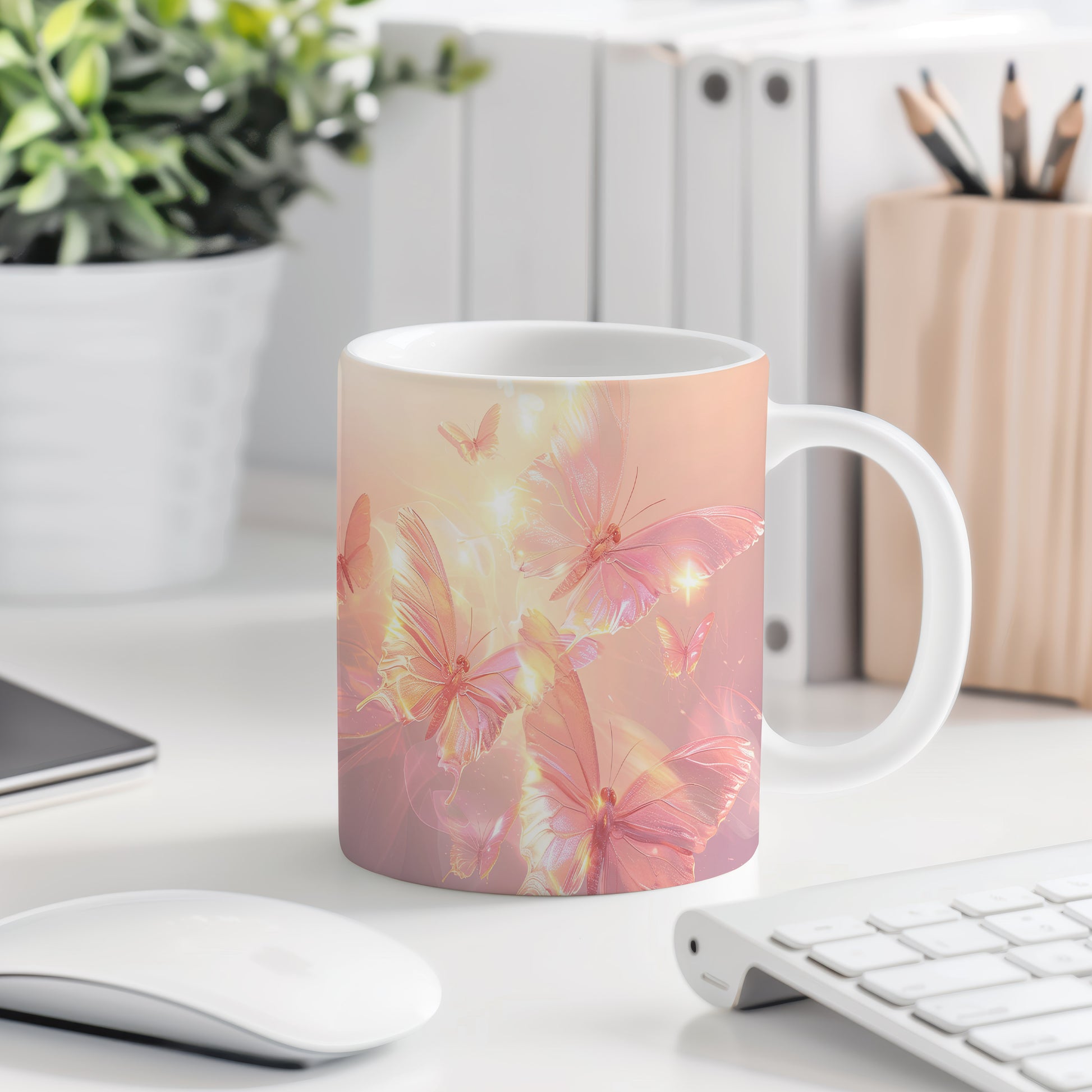 Hrnek s motivem motýlů v jemných barvách