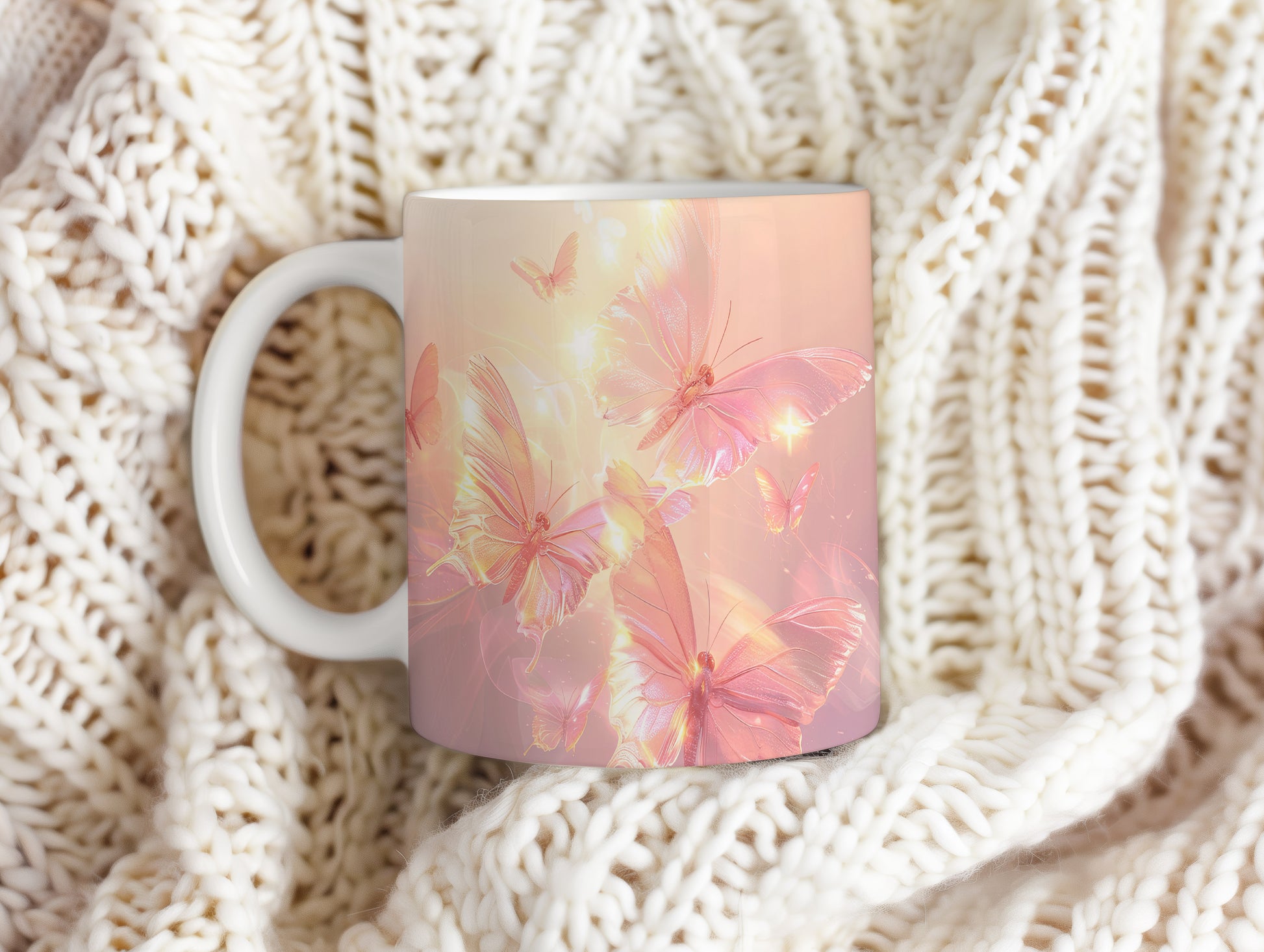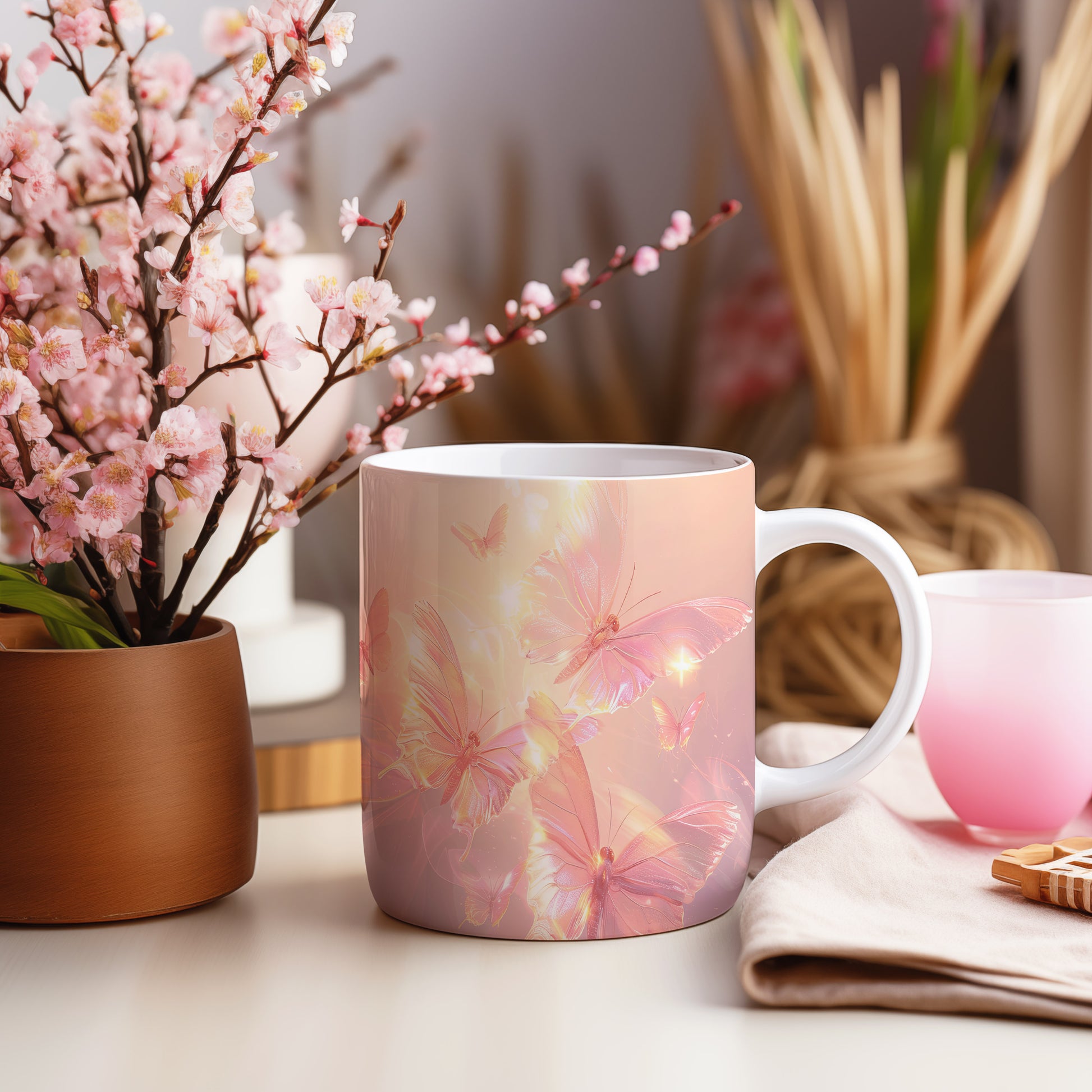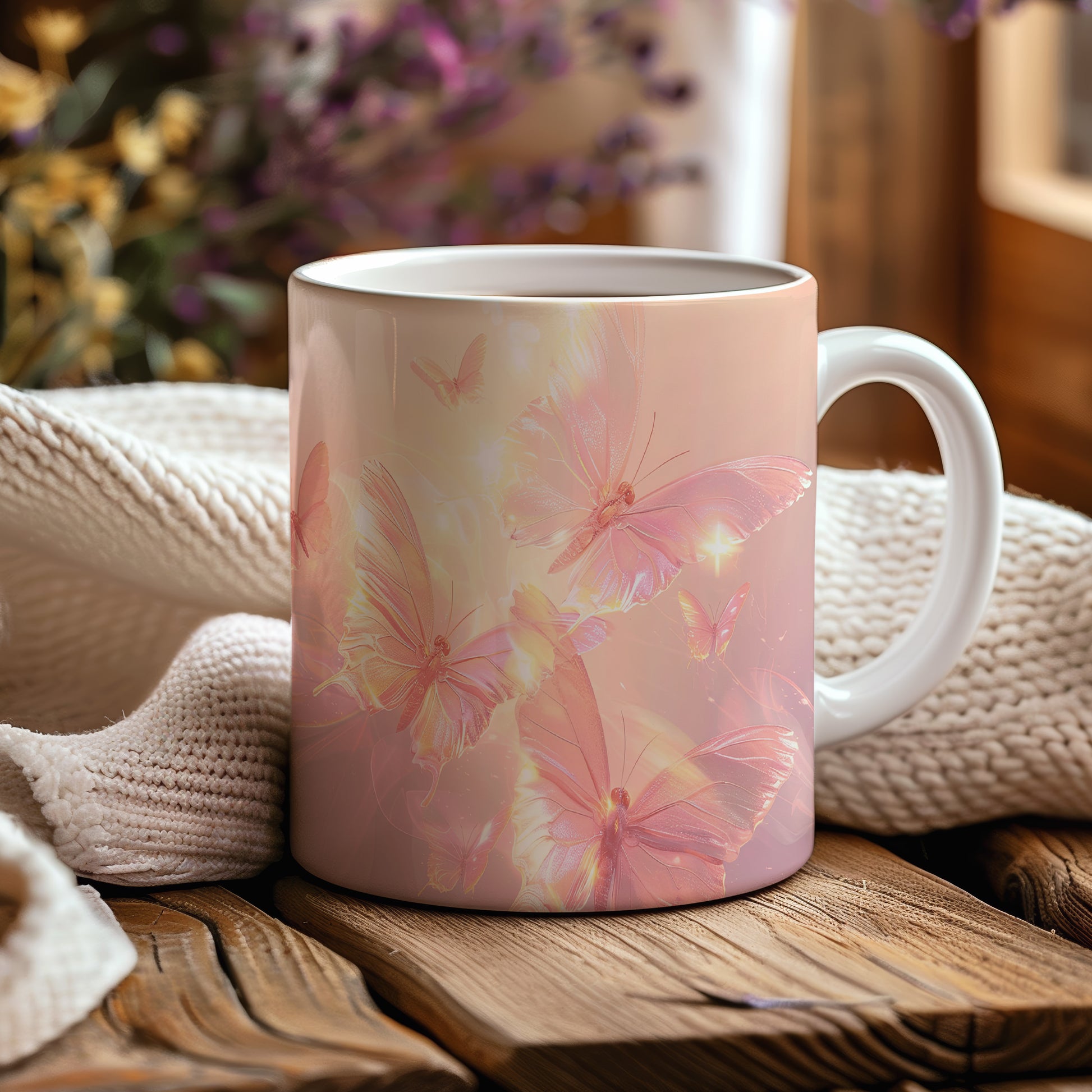 Hrnek s motivem motýlů v jemných barvách