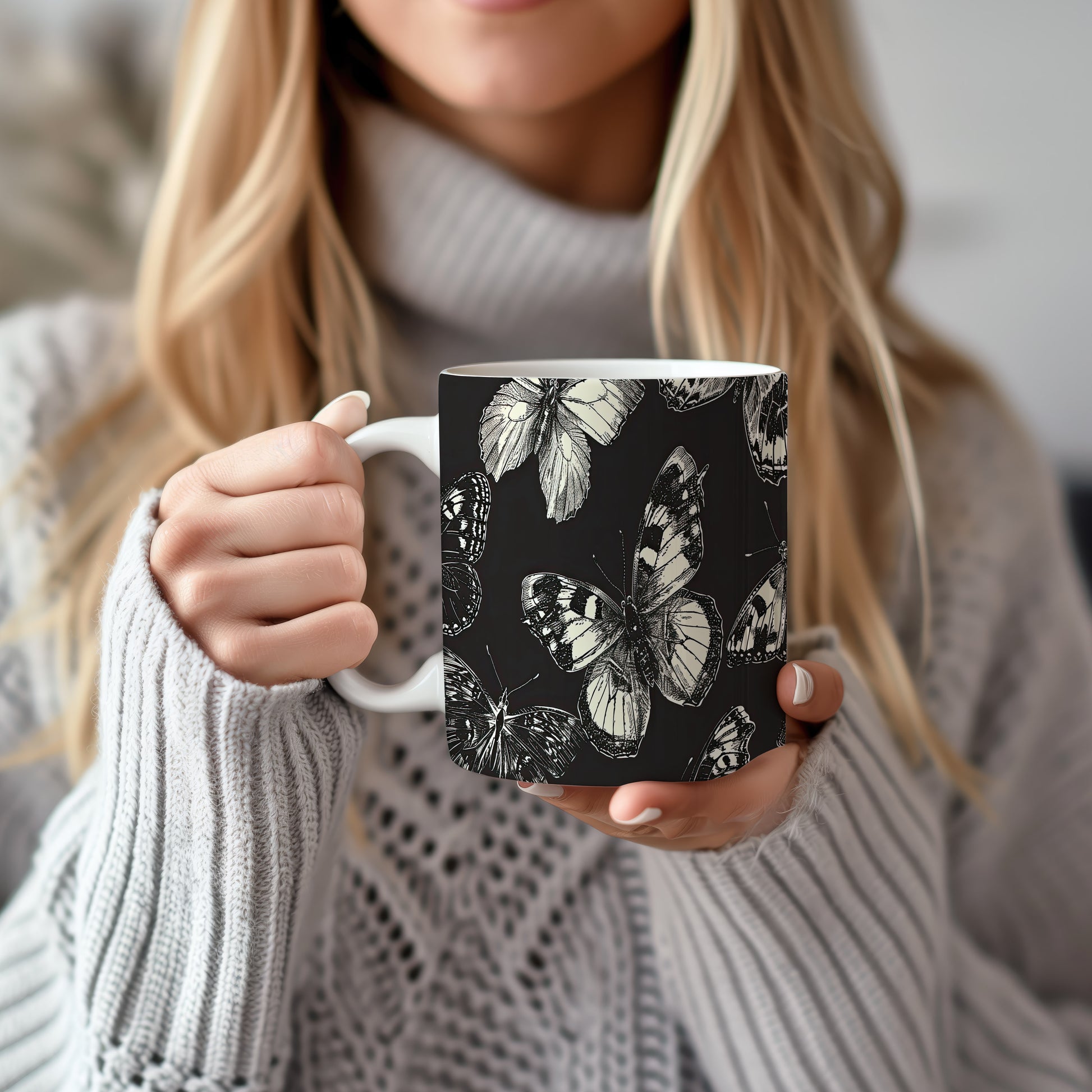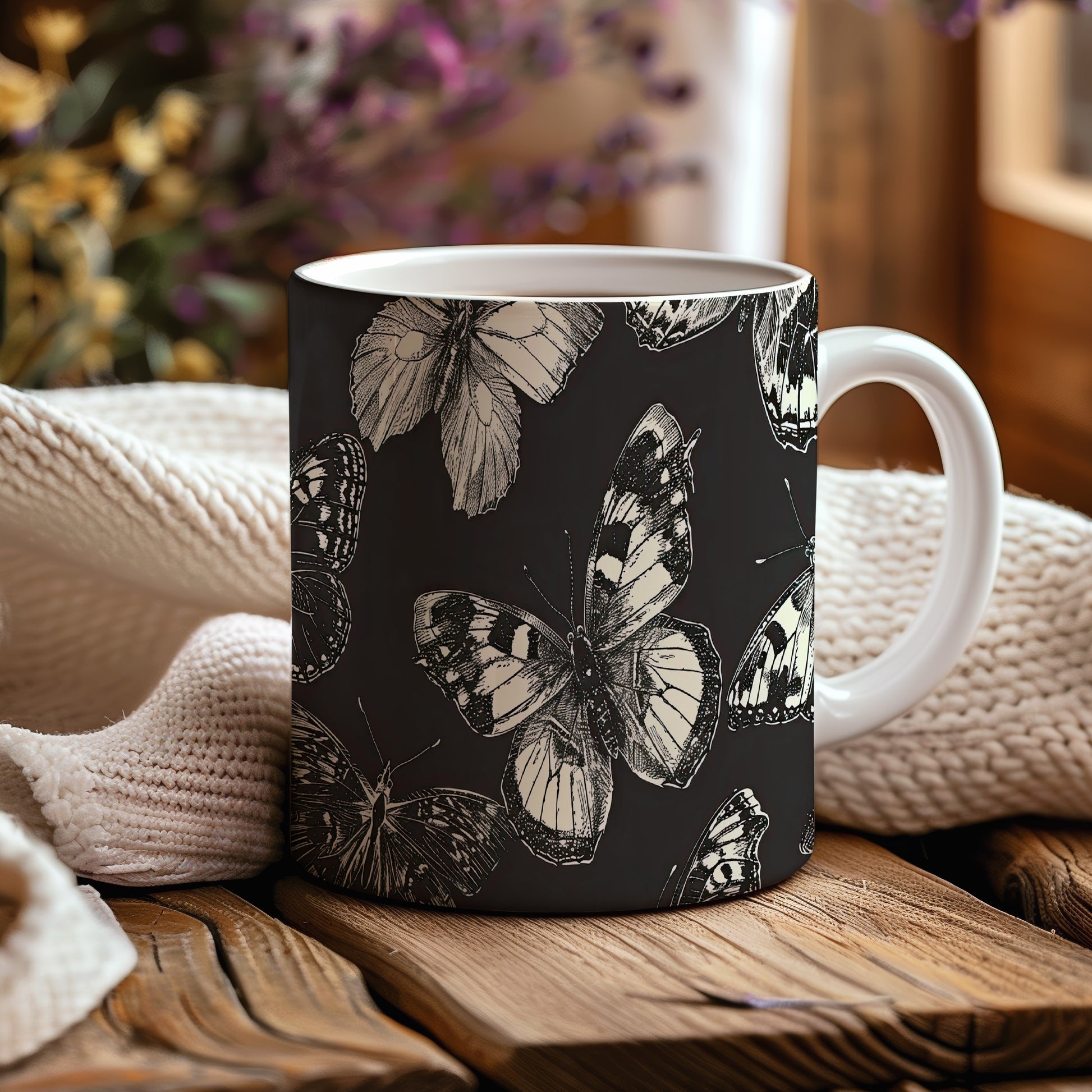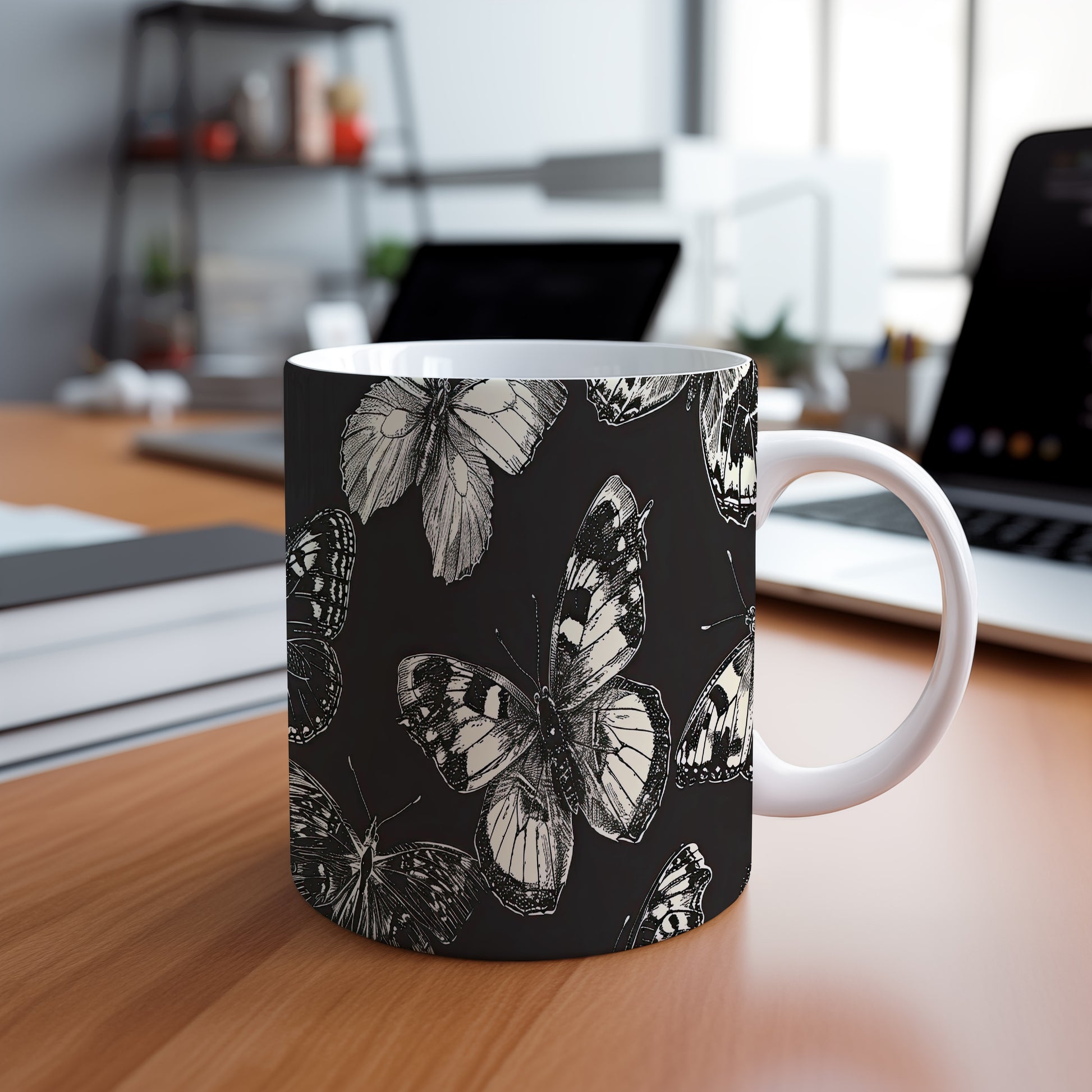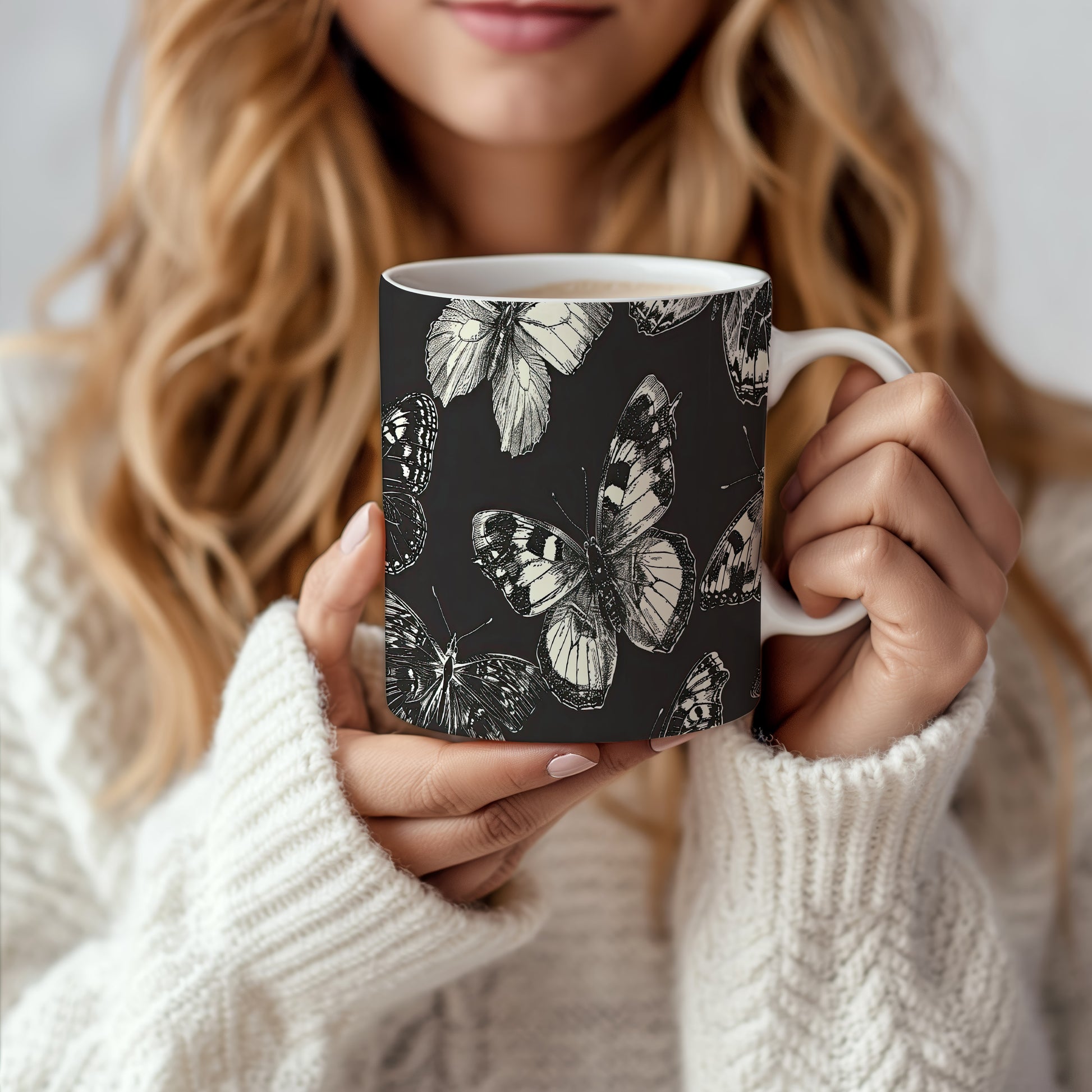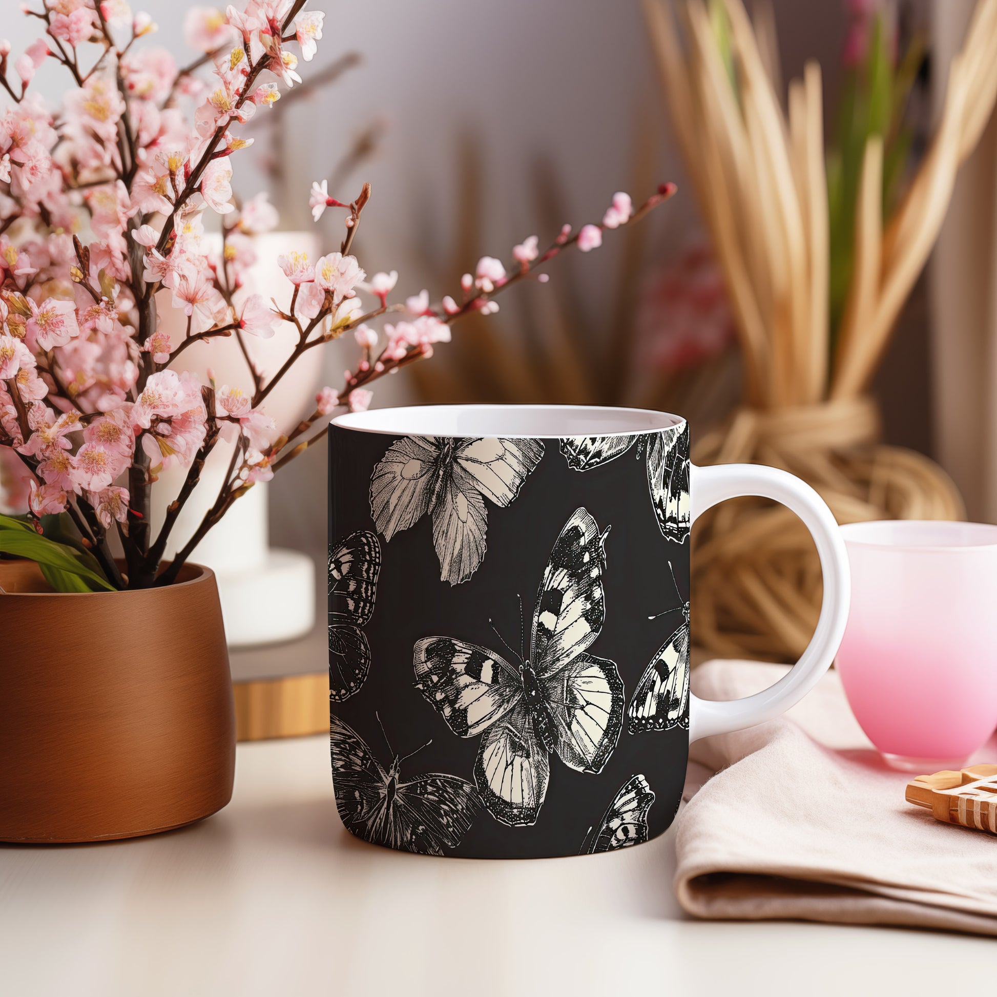 Hrnek s motivem motýlů – výrazným designem
