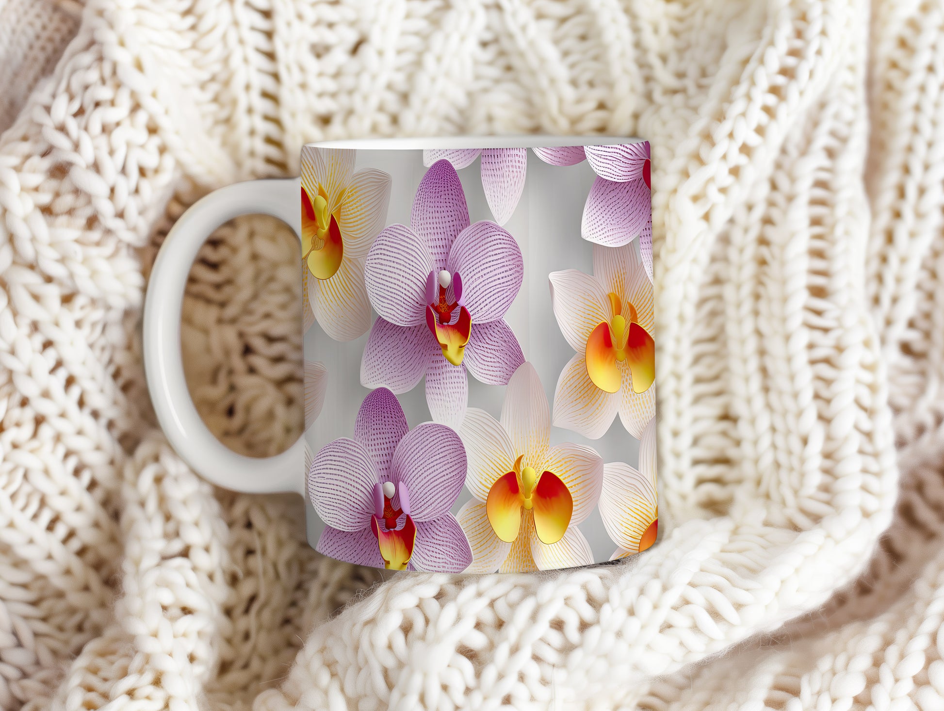 Elegantní hrnek s krásnými květy orchidejí v růžových a bílých odstínech. Tento stylový kousek je ideální pro milovníky květin a skvělým dárkem pro každou příležitost. Materiál: keramika. Objem: 330 ml. Vhodné do myčky i mikrovlnky. Užijte si svůj oblíbený nápoj s nádechem přírody.