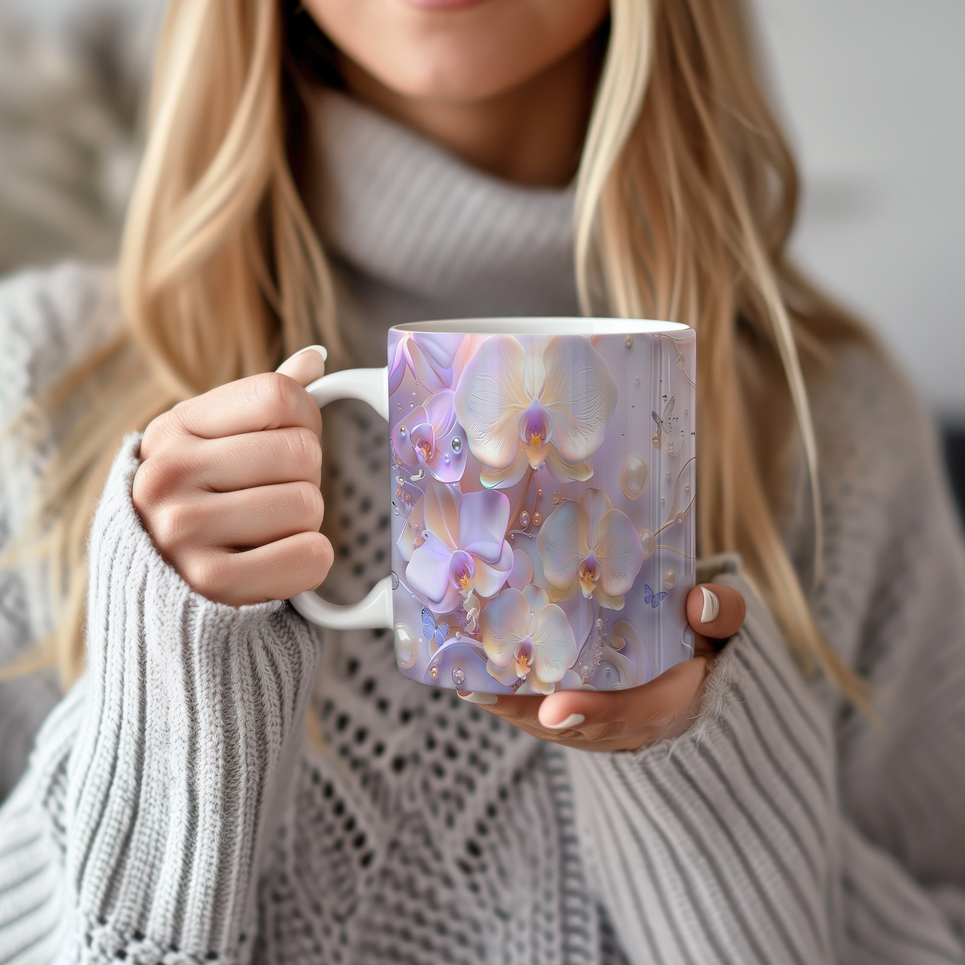 Elegantní keramický hrnek s jemným motivem orchidejí v odstínech fialové a růžové. Tento hrnek je ideální pro milovníky čaje a kávy, skvělý tip na dárek pro vaše blízké. Materiál: keramika. Objem: 330 ml. Vhodné do myčky i mikrovlnky. Používání tohoto hrnku přináší radost z každého doušku.