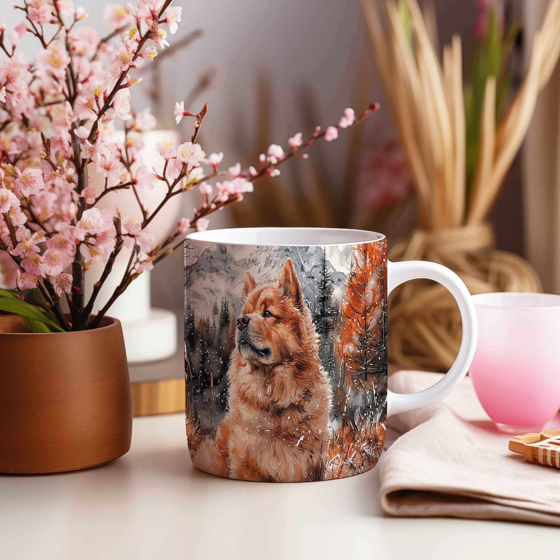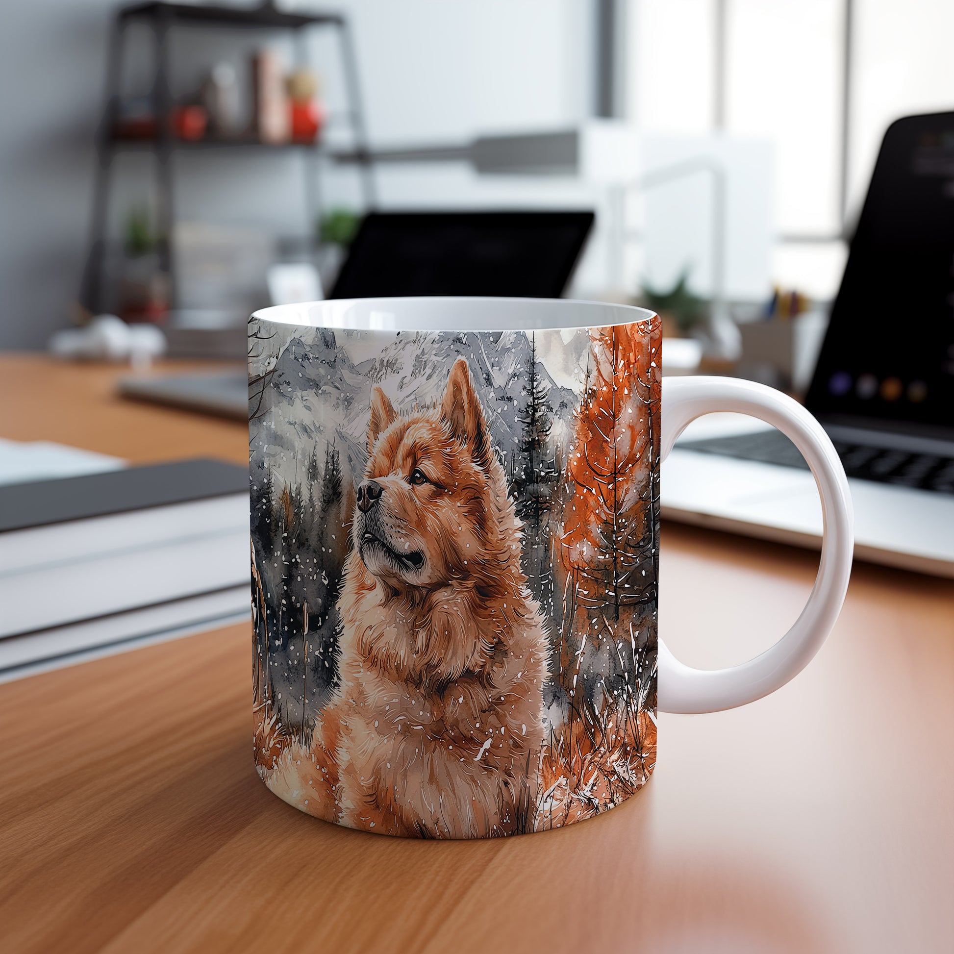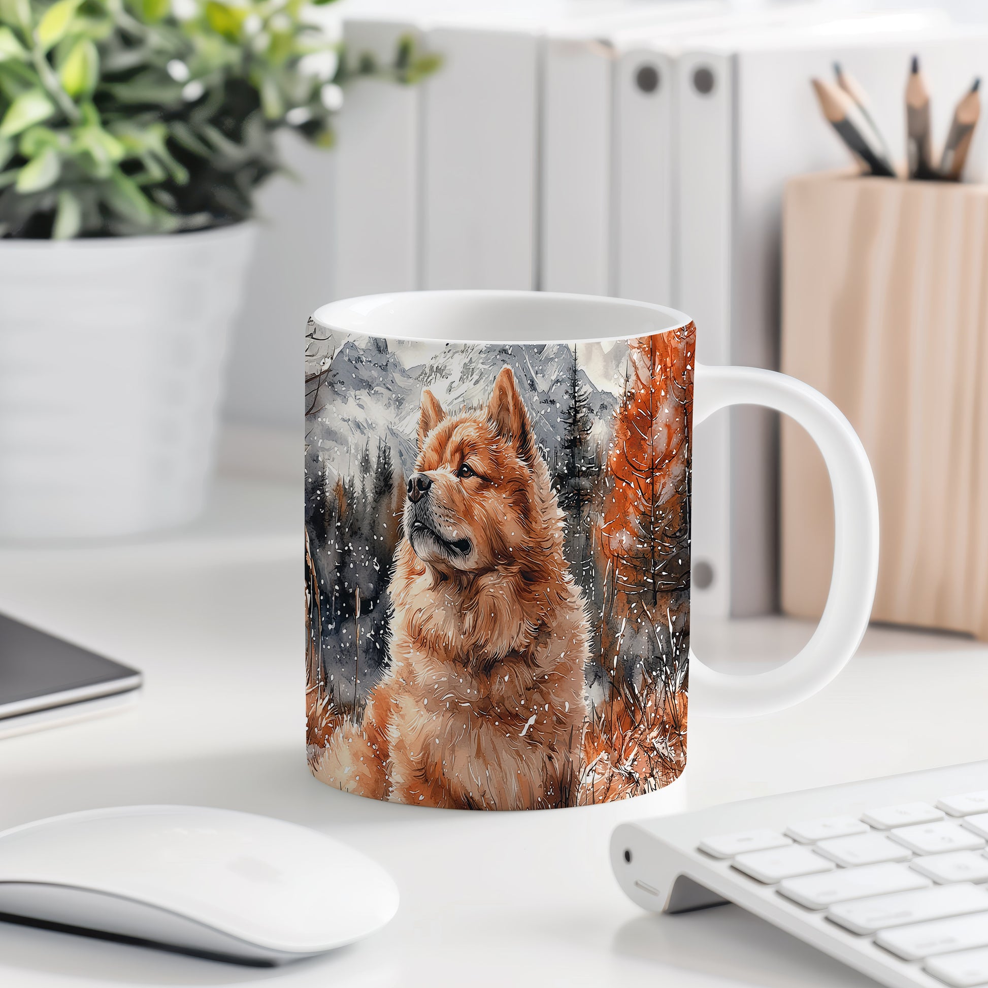 Tento elegantní hrnek zobrazuje majestátního psa plemene Chow v zasněžené krajině. Je ideální pro milovníky psů a skvělým dárkem pro každého, kdo ocení krásu tohoto plemene. Materiál: keramika. Objem: 330 ml. Vhodné do myčky i mikrovlnky. Používání tohoto hrnku přináší radost a styl do každodenního pití.