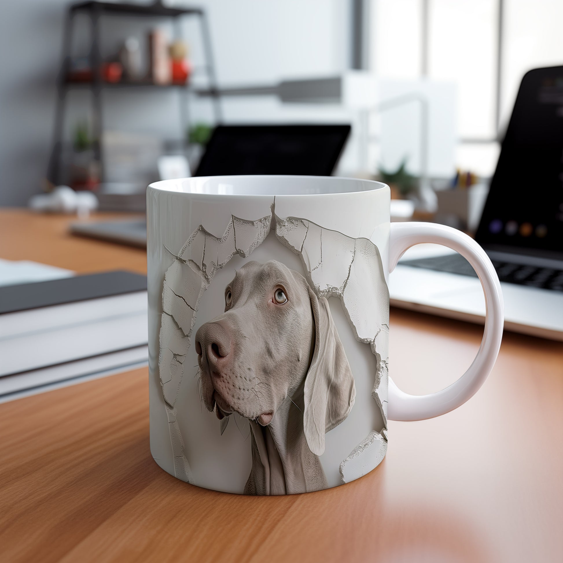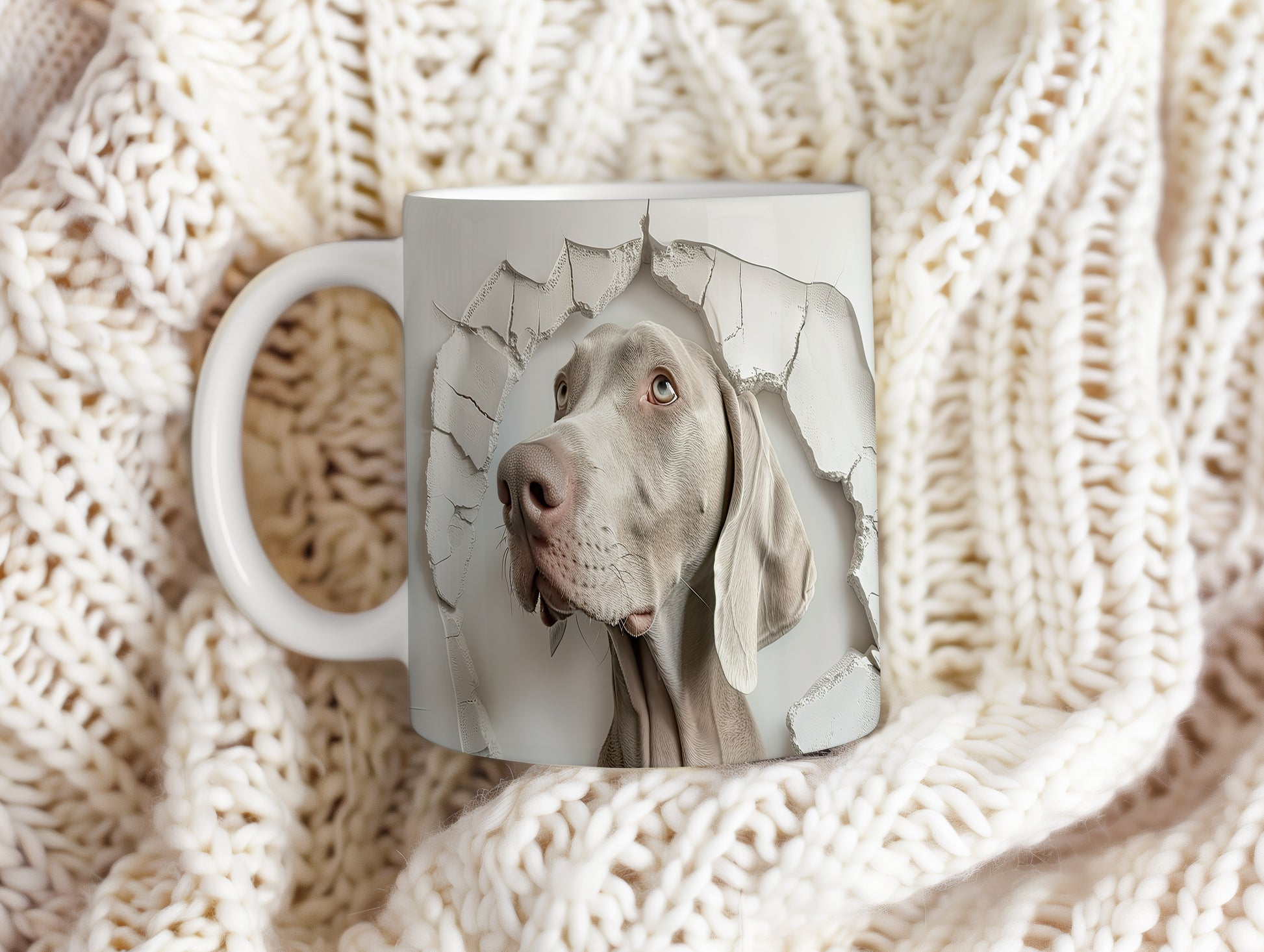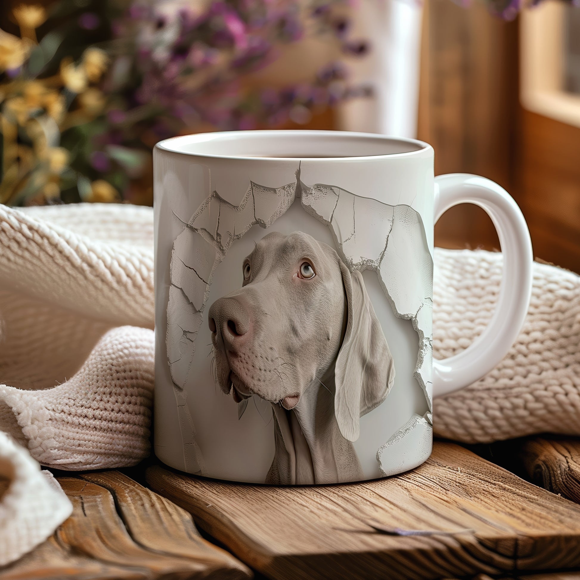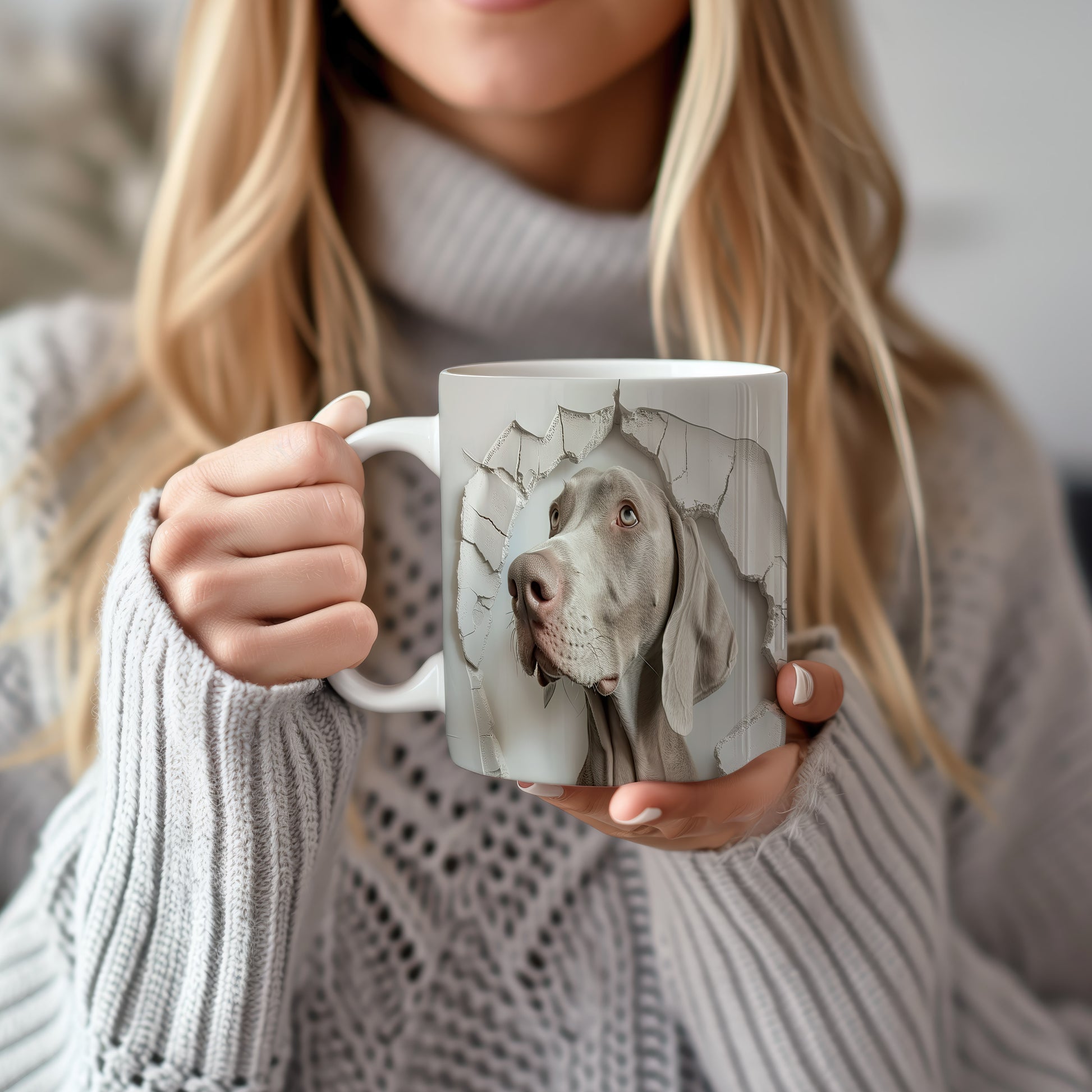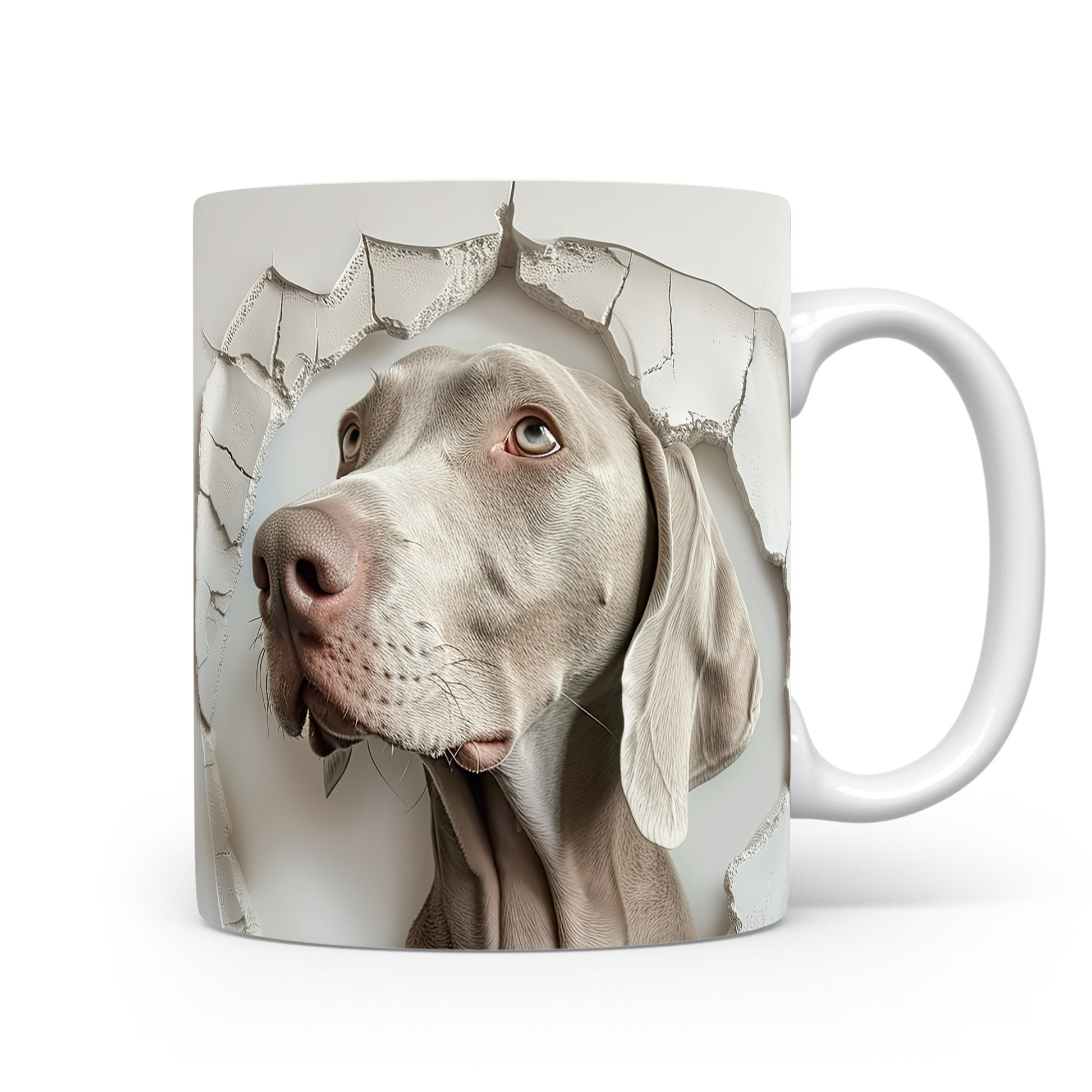 Na hrnku je realisticky zobrazený pes s šedou srstí, který vytváří dojem, že proráží zeď. Tento hrnek je ideální pro milovníky psů a skvělý tip na dárek pro přátele nebo rodinu. Materiál: keramika. Objem: 330 ml. Vhodné do myčky i mikrovlnky. Používání tohoto hrnku přináší radost a oživí každé pití.