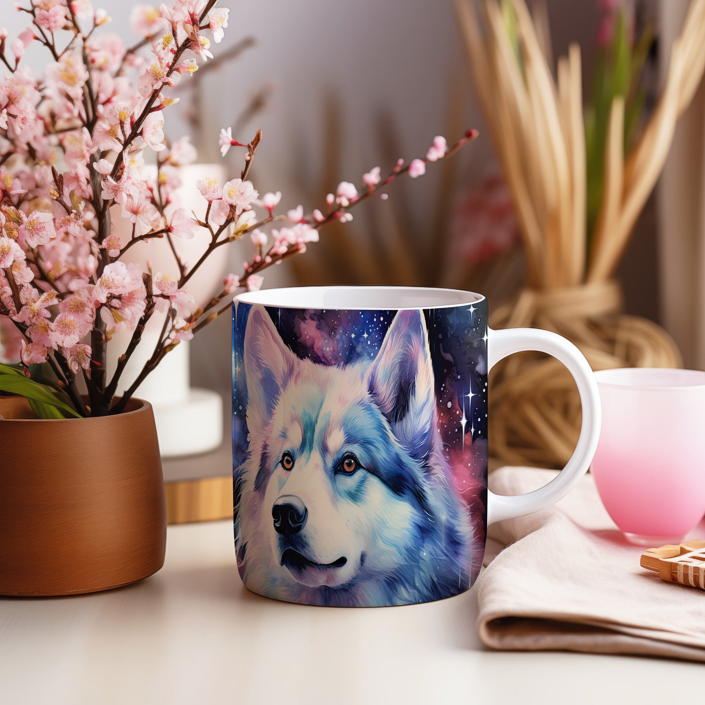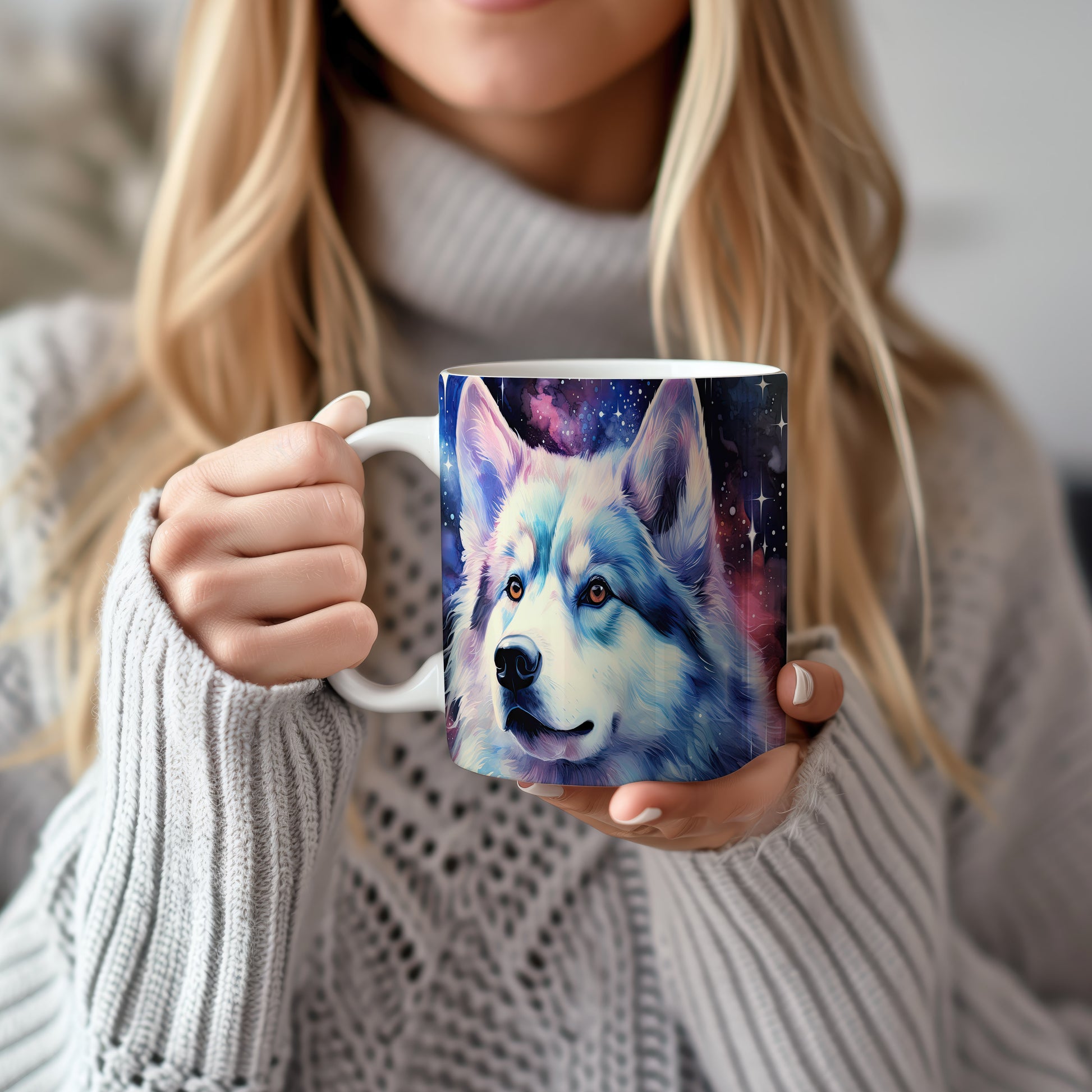 Tento keramický hrnek s realistickým motivem psa na pozadí galaxie je skvělou volbou pro milovníky zvířat a vesmíru. Je ideální jako dárek pro přátele nebo rodinu, kteří mají rádi pejsky. Materiál: keramika. Objem: 330 ml. Vhodné do myčky i mikrovlnky. Díky svému originálnímu designu přináší do každodenního pití radost a styl.
