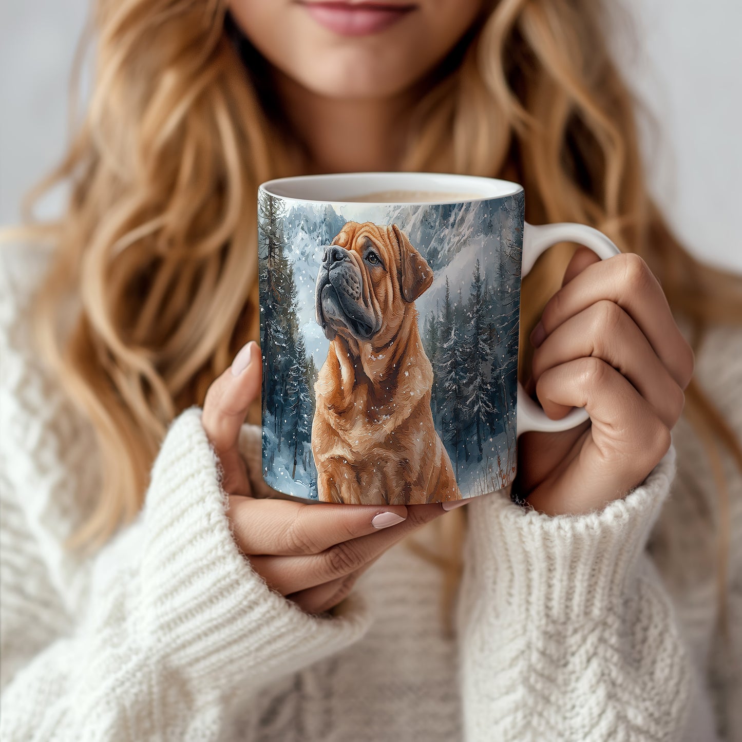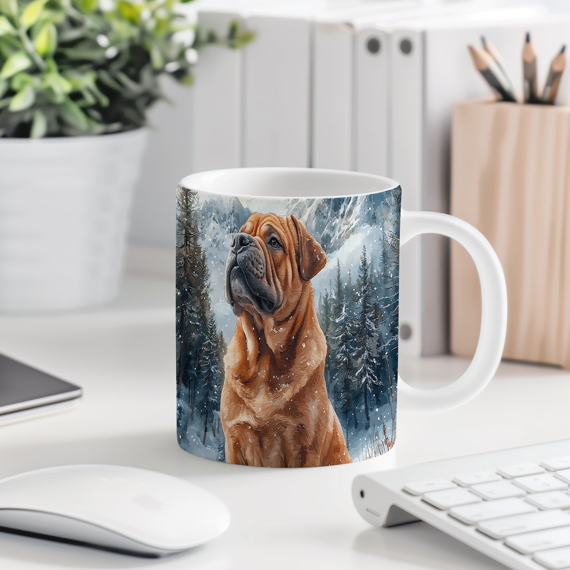 Hrnek s motivem shar pei v zasněžené krajině