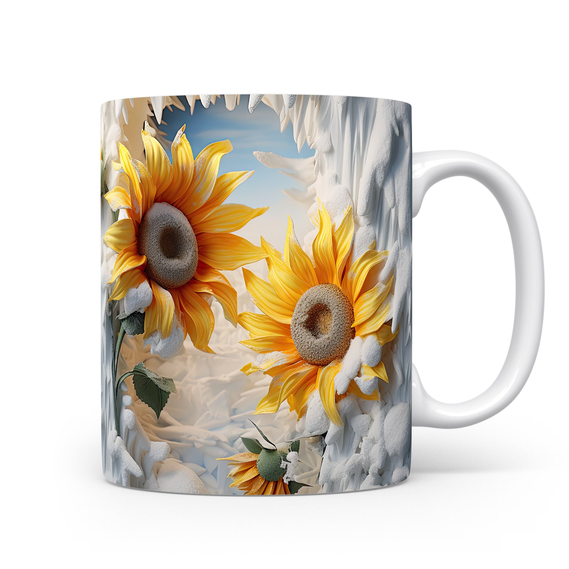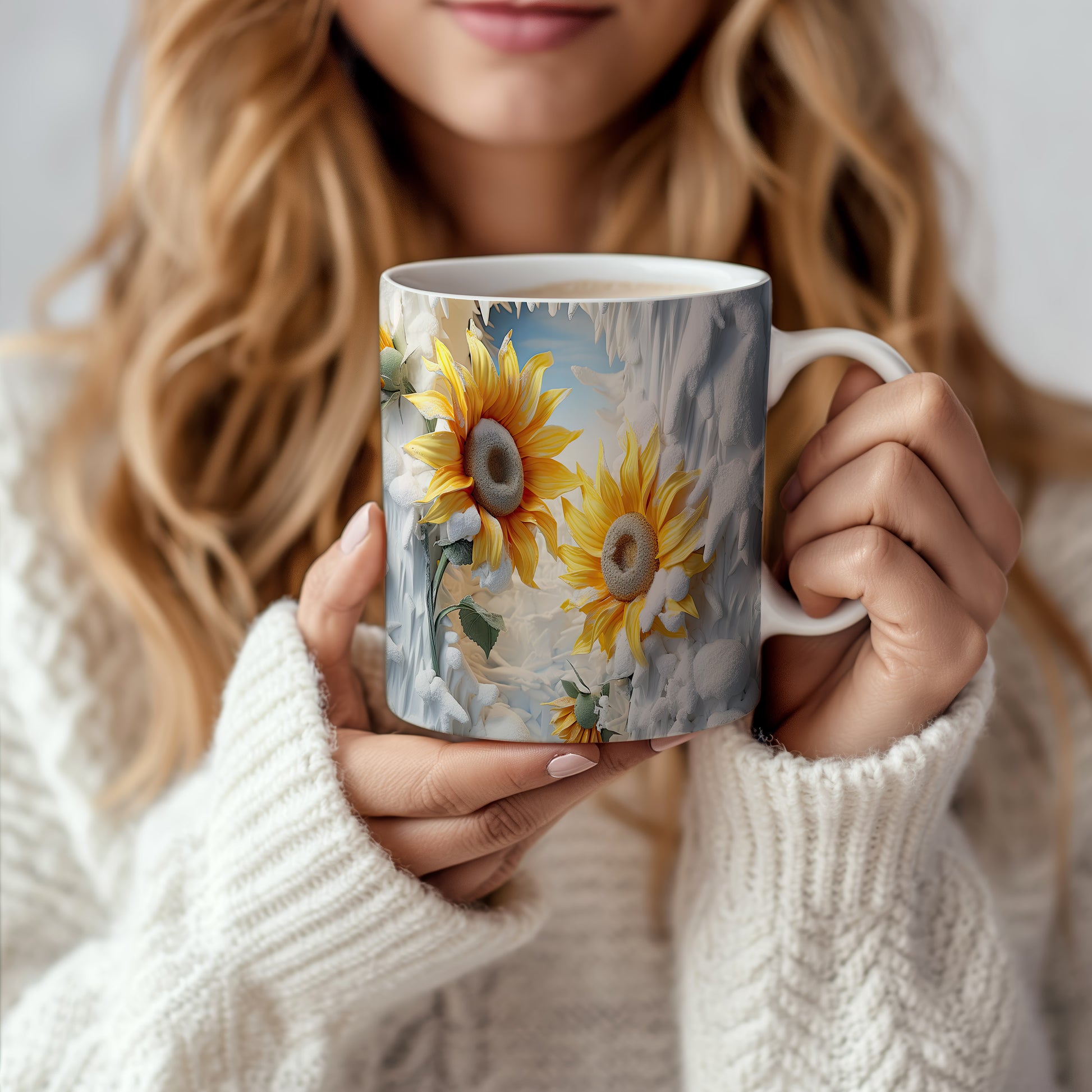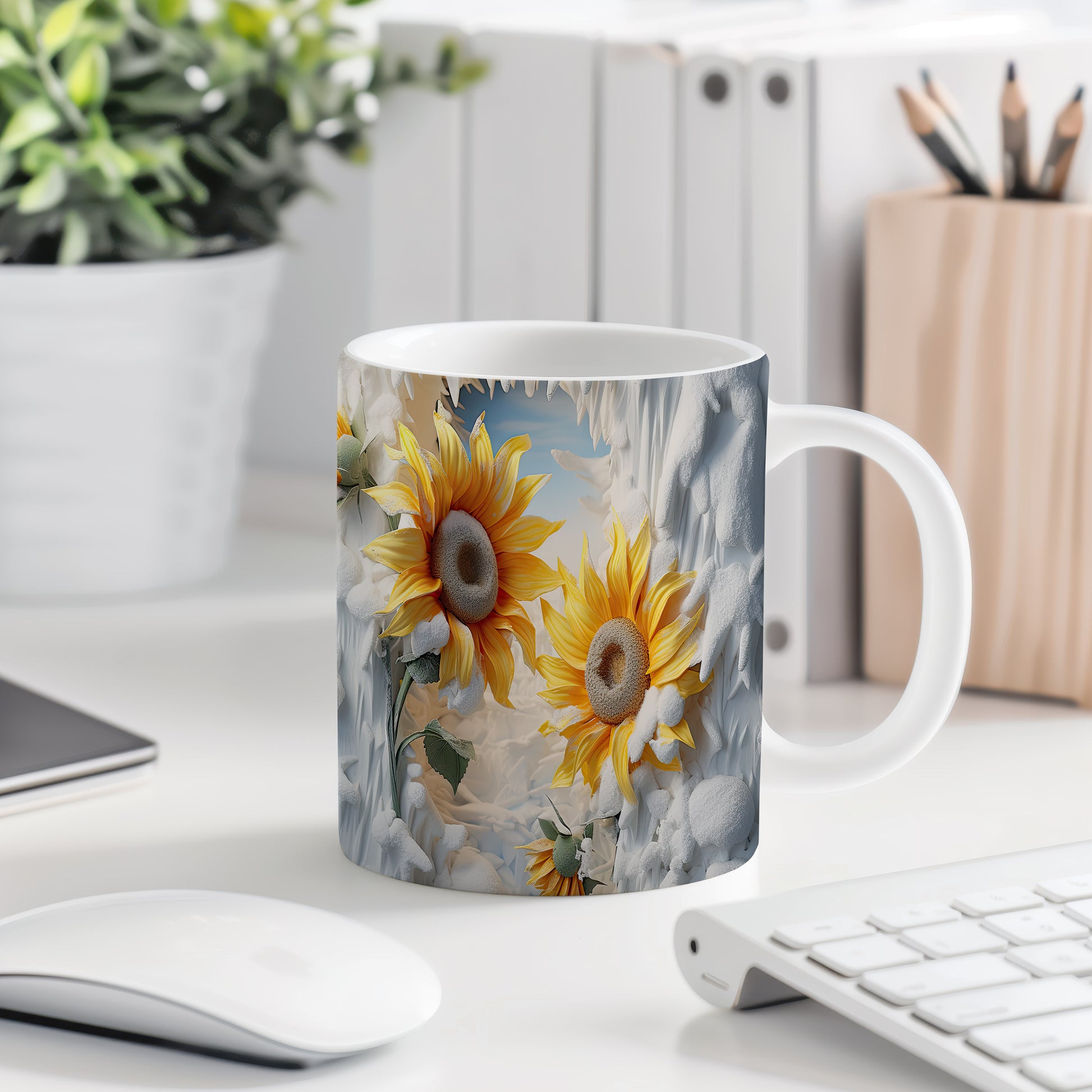 Hrnek s motivem slunečnic a zasněžené krajiny. Tento stylový kousek je skvělým dárkem pro milovníky přírody a krásných scenérií. S objemem 330 ml je ideální pro každodenní používání. Vyroben z keramiky, vhodný do myčky i mikrovlnky. Užijte si kávu nebo čaj s nádechem přírody.