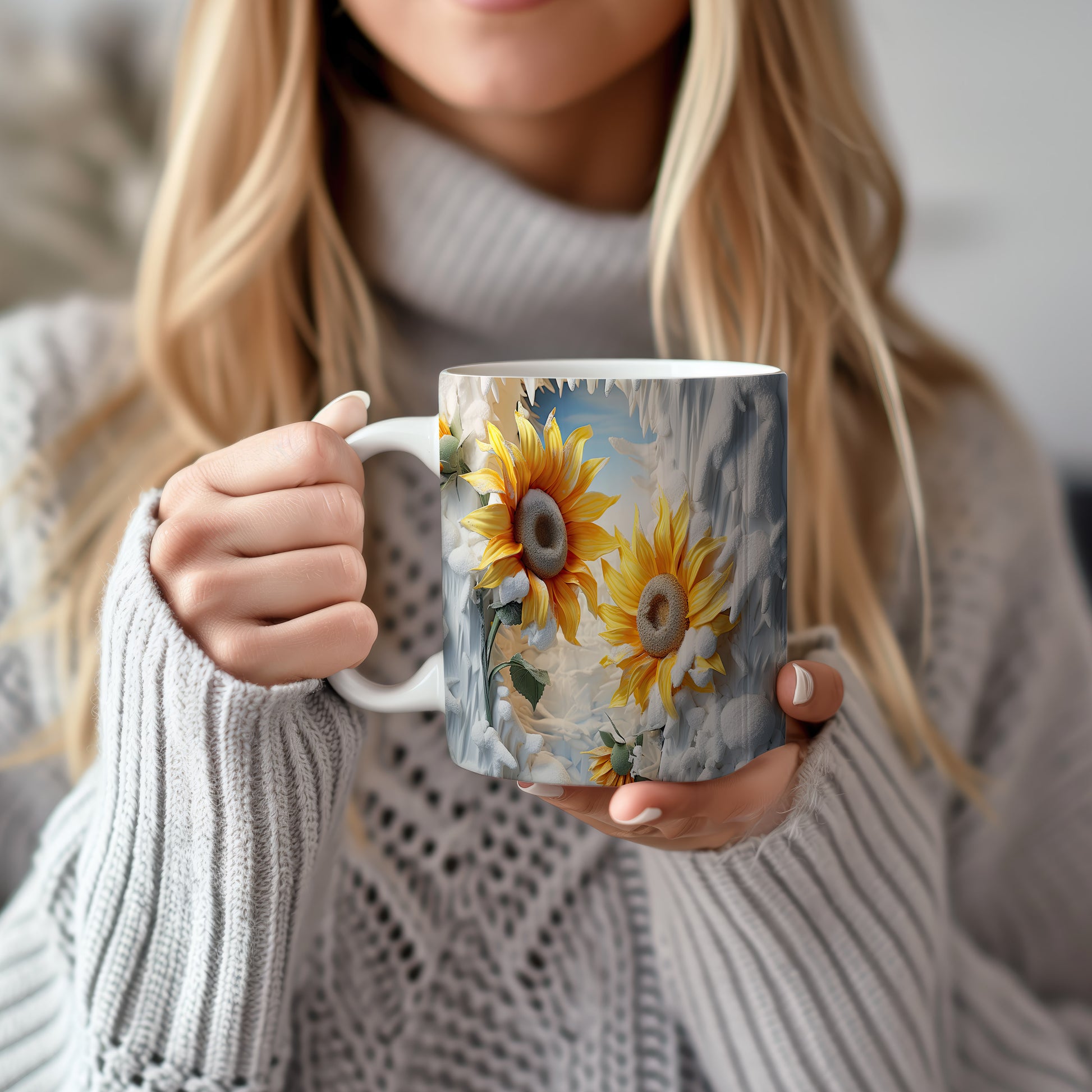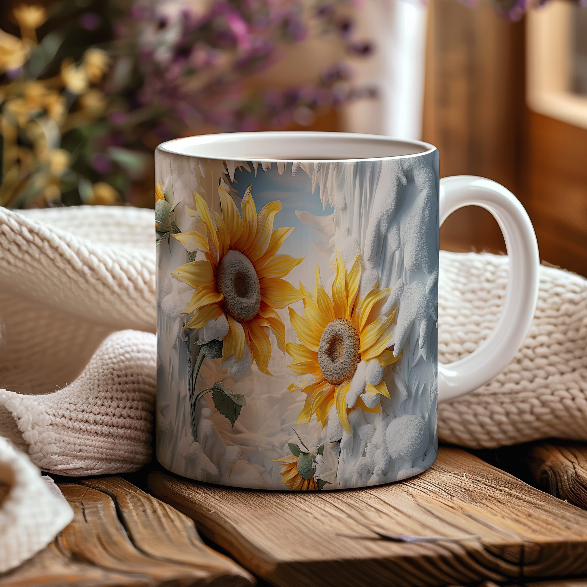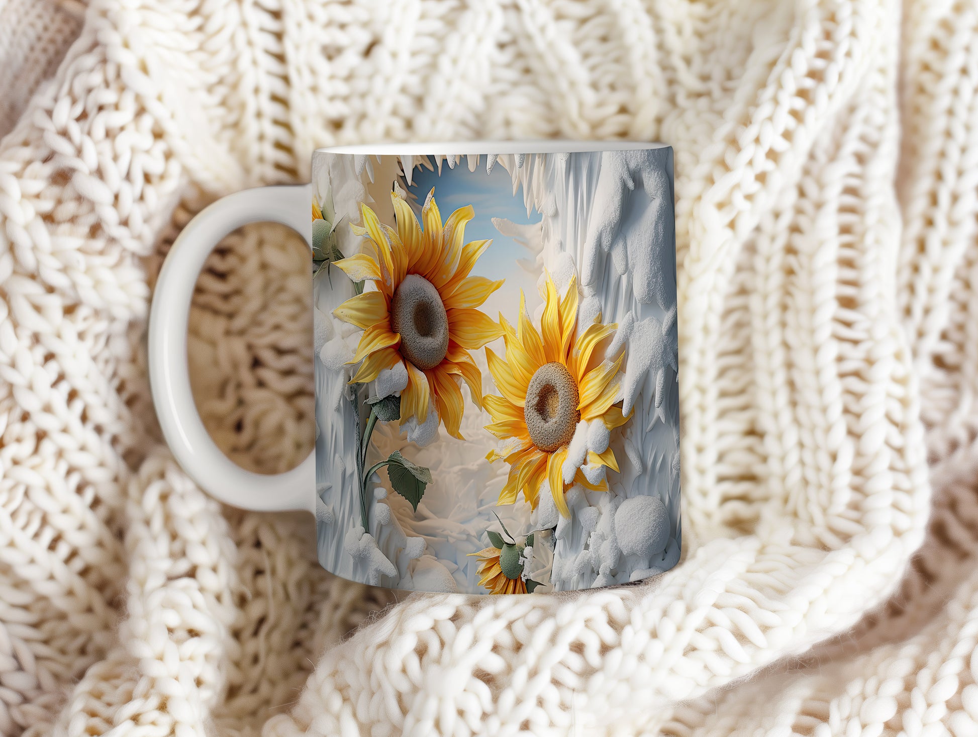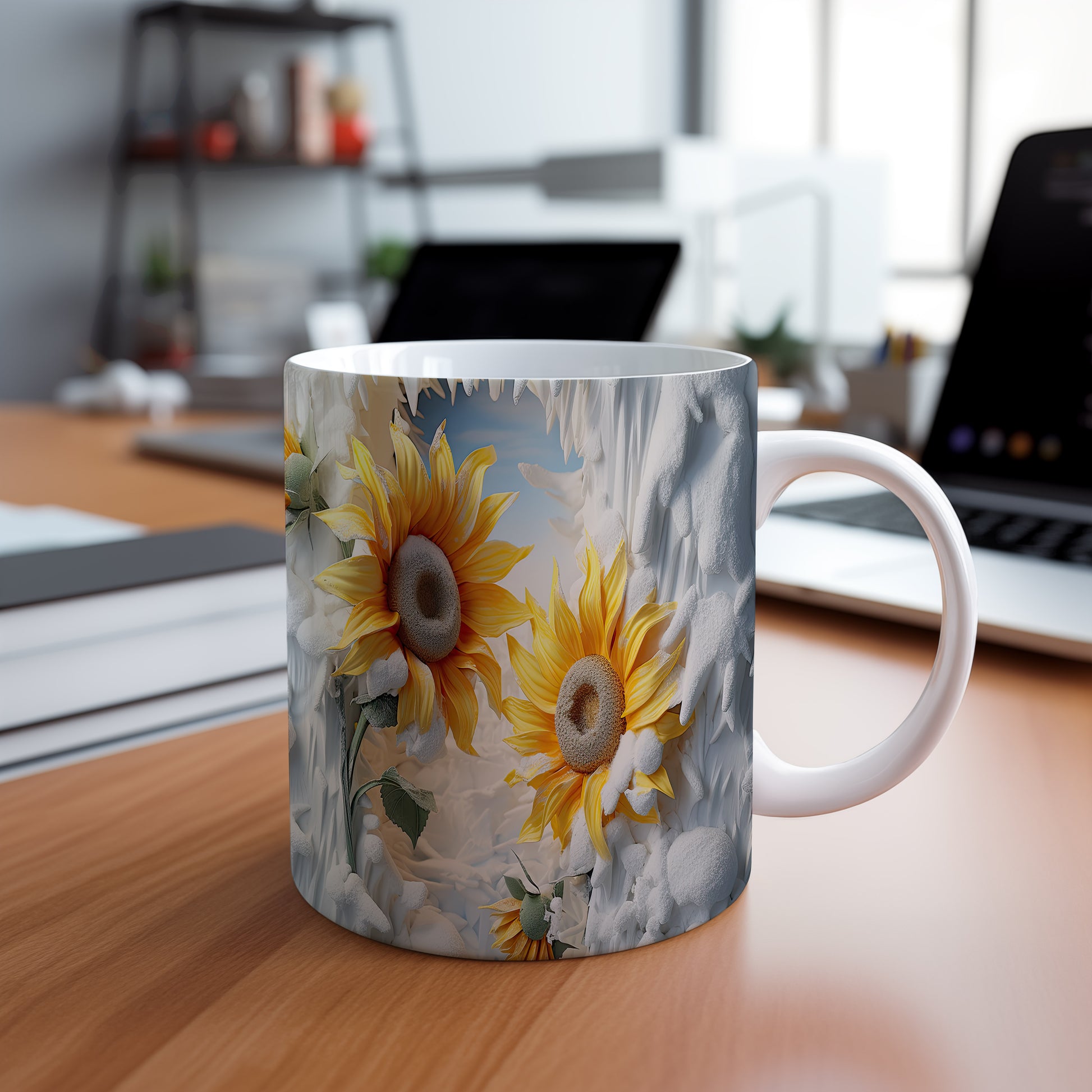 Hrnek s motivem slunečnic a zasněžené krajiny. Tento stylový kousek je skvělým dárkem pro milovníky přírody a krásných scenérií. S objemem 330 ml je ideální pro každodenní používání. Vyroben z keramiky, vhodný do myčky i mikrovlnky. Užijte si kávu nebo čaj s nádechem přírody.