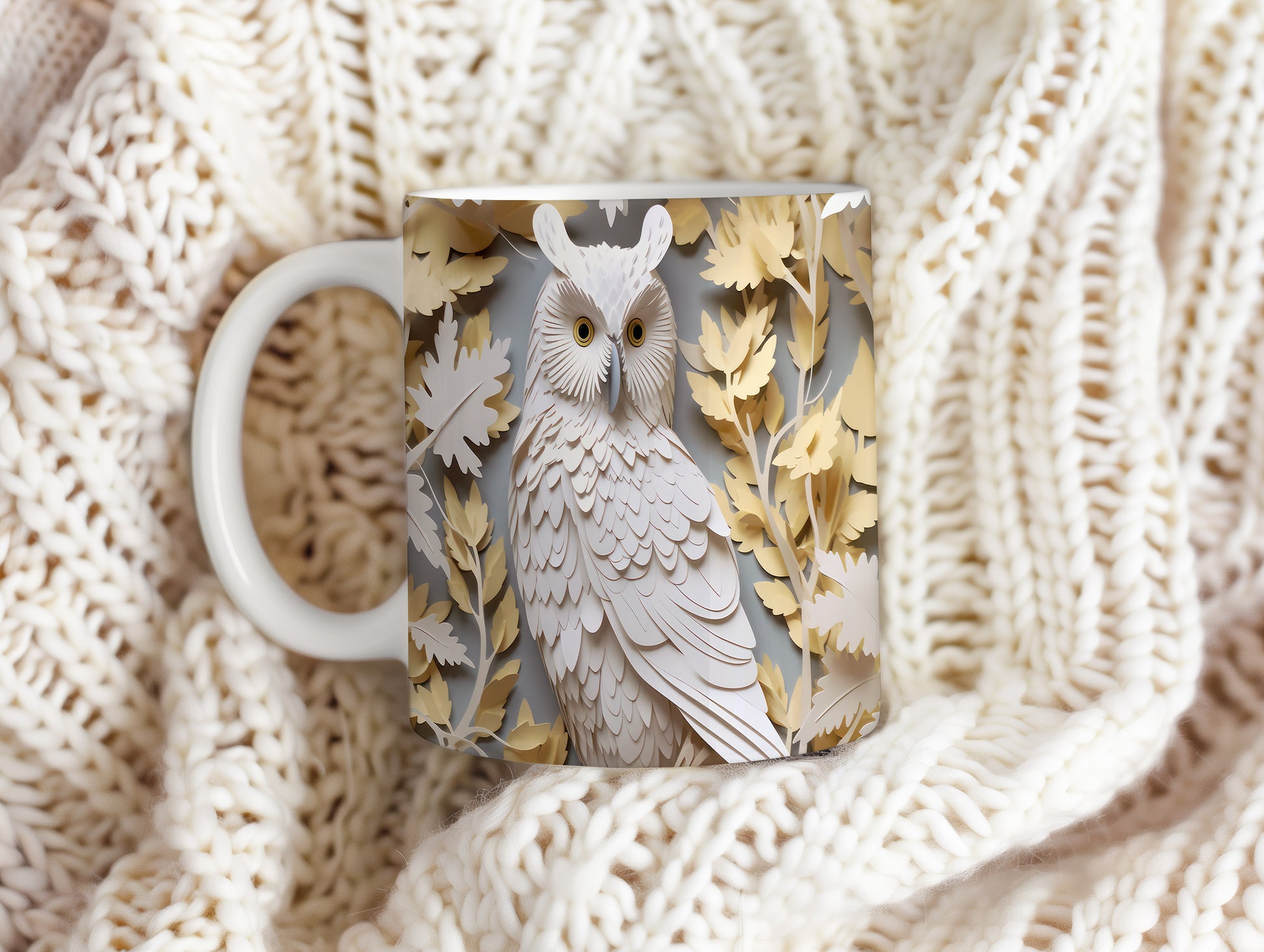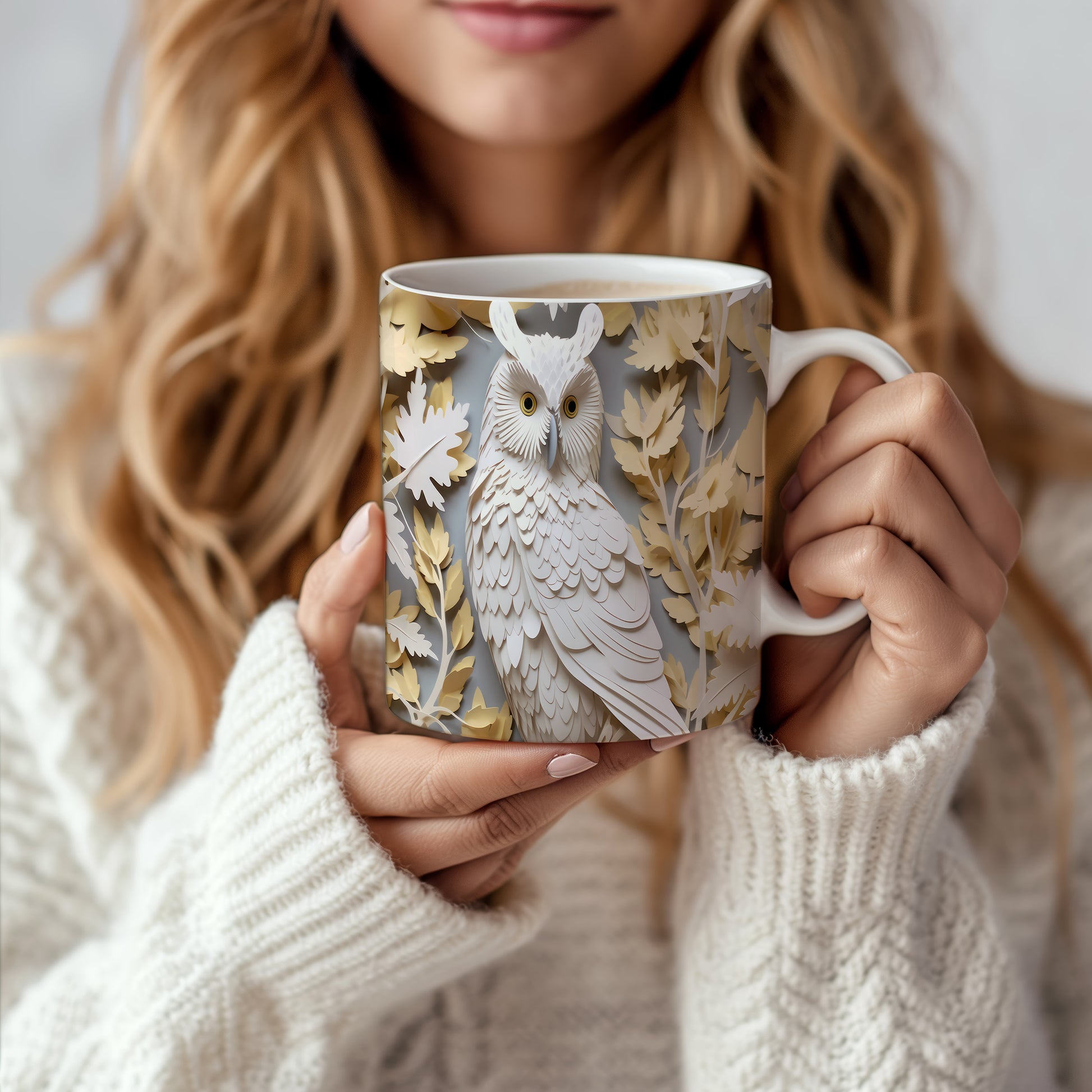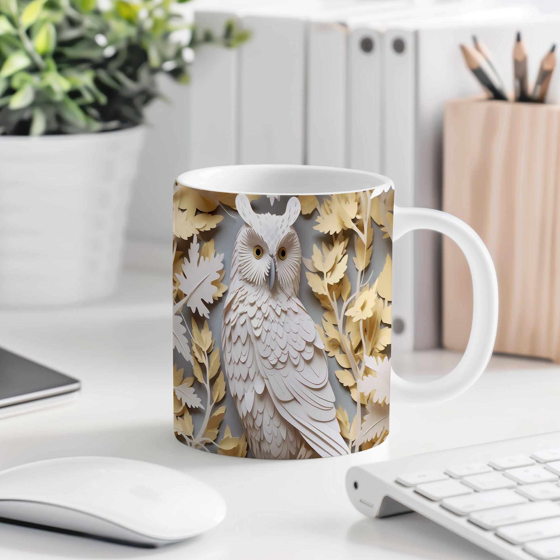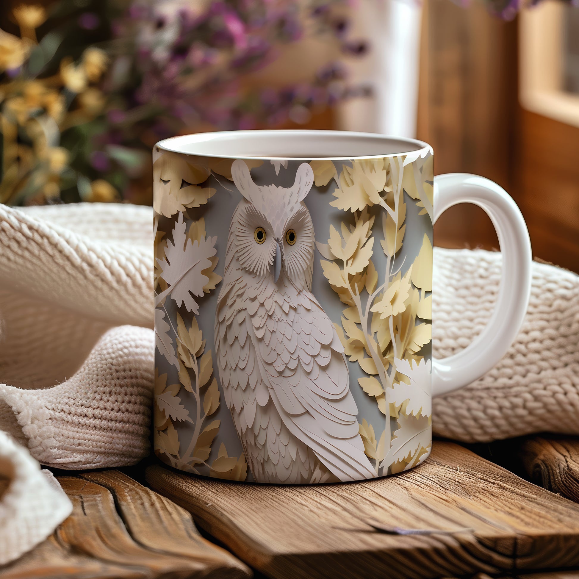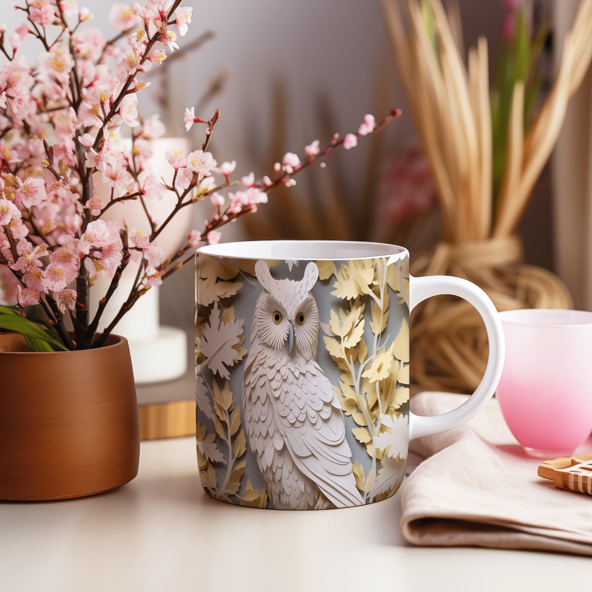 Hrnek s motivem sovy a listů