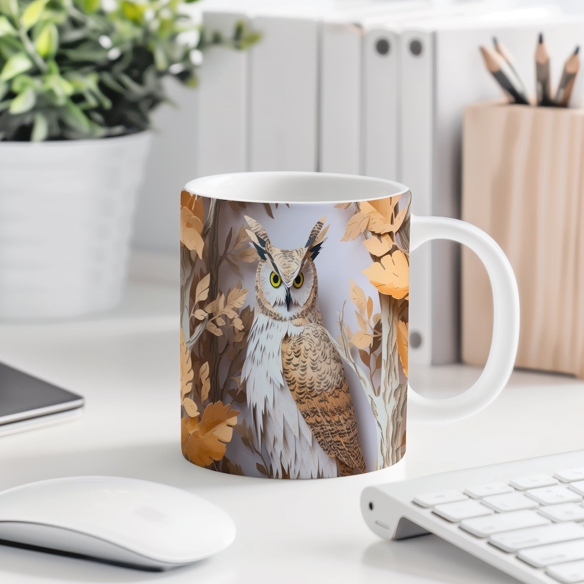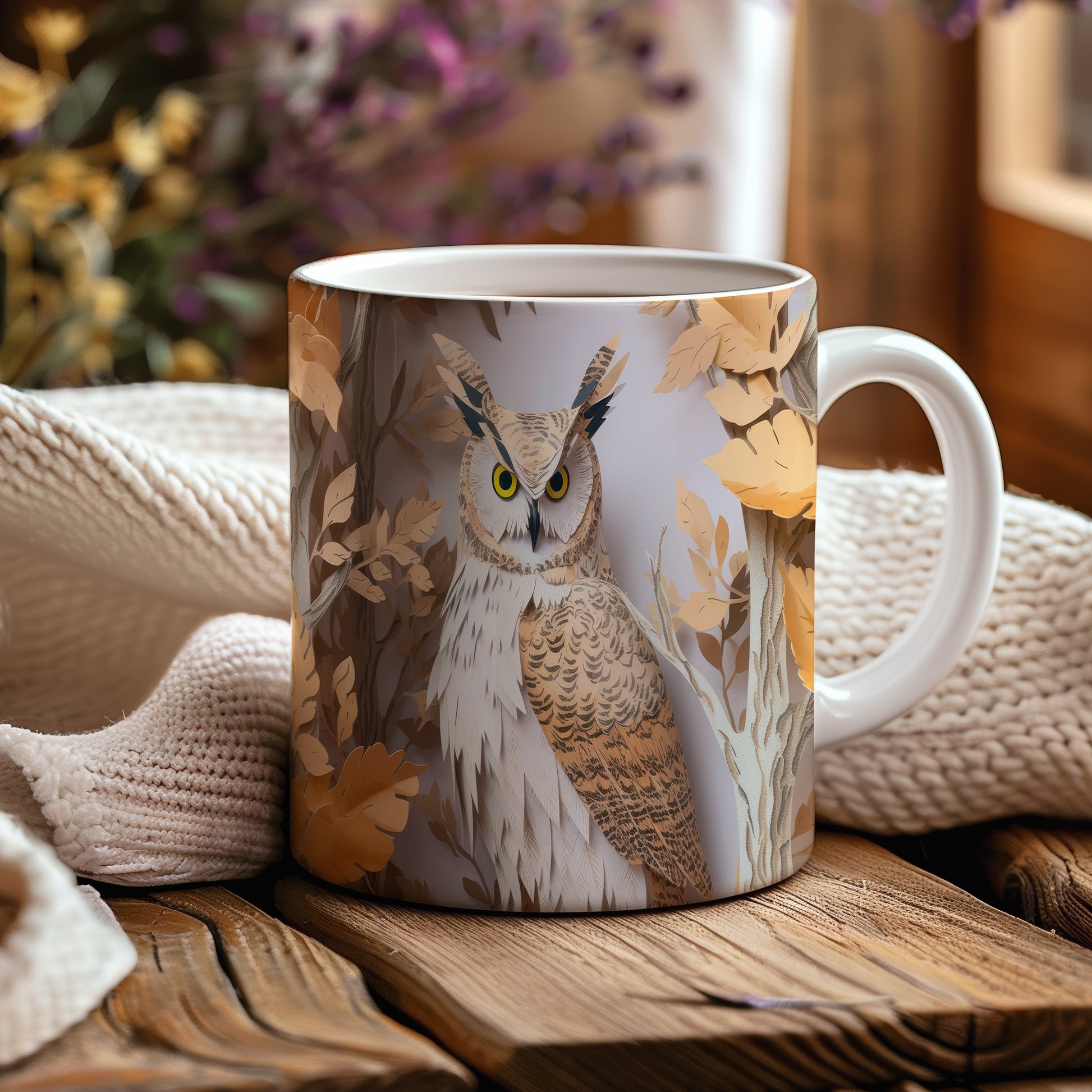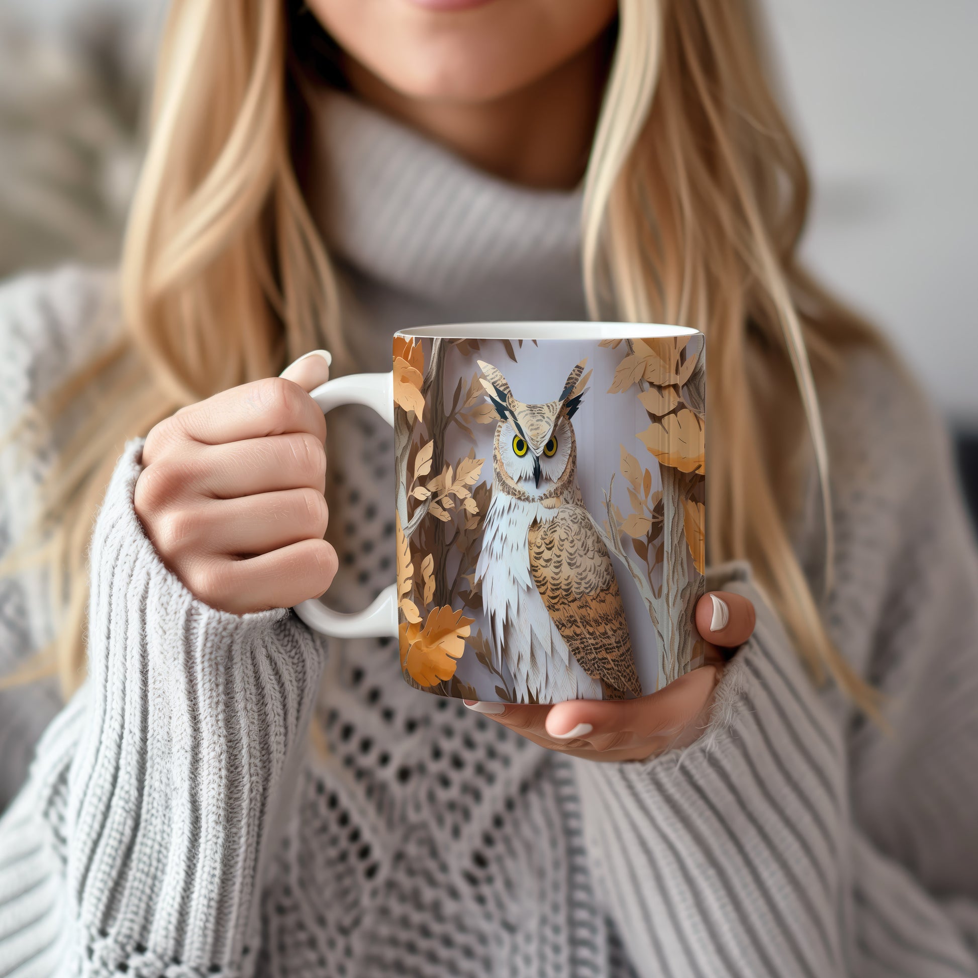 Tento keramický hrnek s motivem sovy v přírodě je skvělým kouskem pro všechny milovníky zvířat a přírody. Je ideální jako dárek pro přátele nebo rodinu, kteří ocení krásu přírody. Materiál: keramika. Objem: 330 ml. Vhodné do myčky i mikrovlnky. Díky svému designu přináší do každodenního pití špetku přírody a klidu.