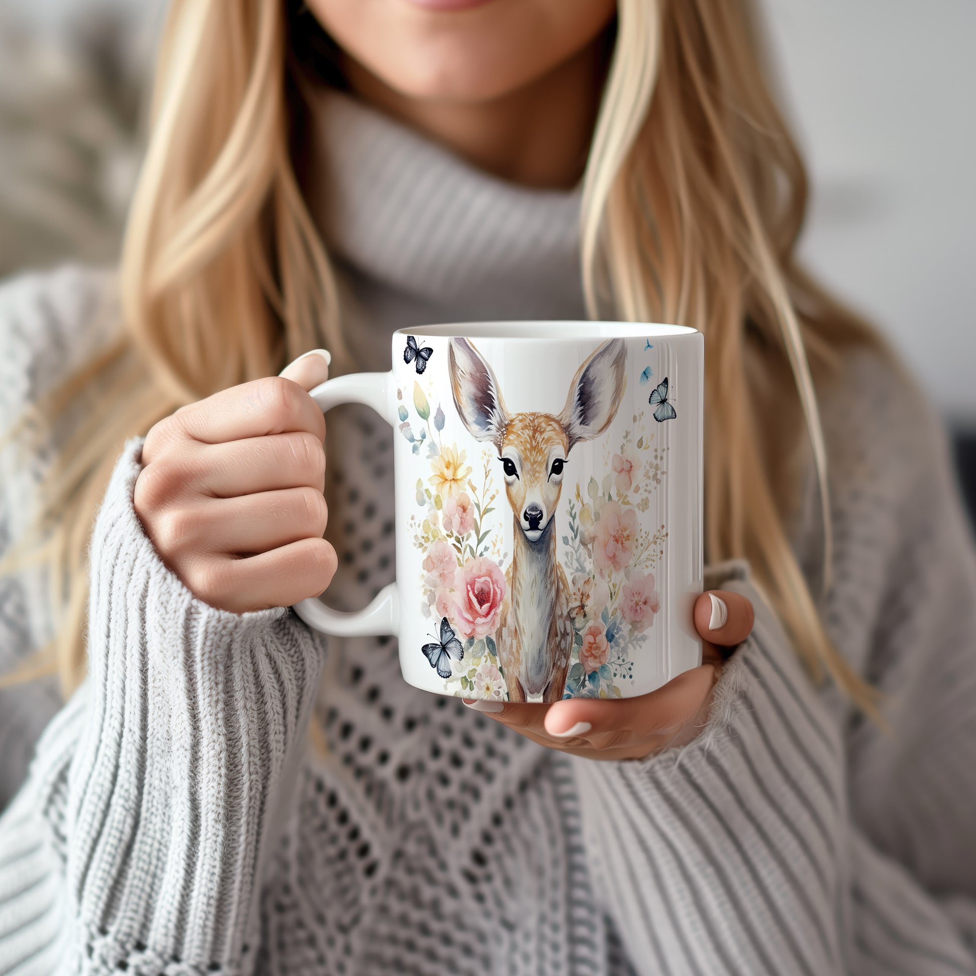 Hrnek s motivem srnce a květin je jemný a přírodní. Tento hrnek je ideální pro milovníky přírody a skvělým dárkem pro každého, kdo ocení krásu přírody. Materiál: keramika. Objem: 330 ml. Vhodné do myčky i mikrovlnky. Používání tohoto hrnku přináší radost z každého doušku.