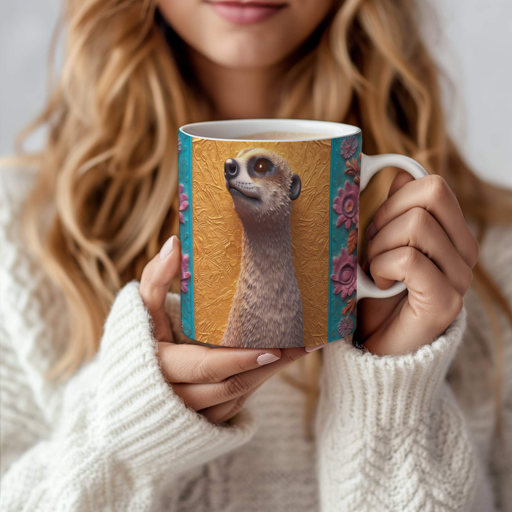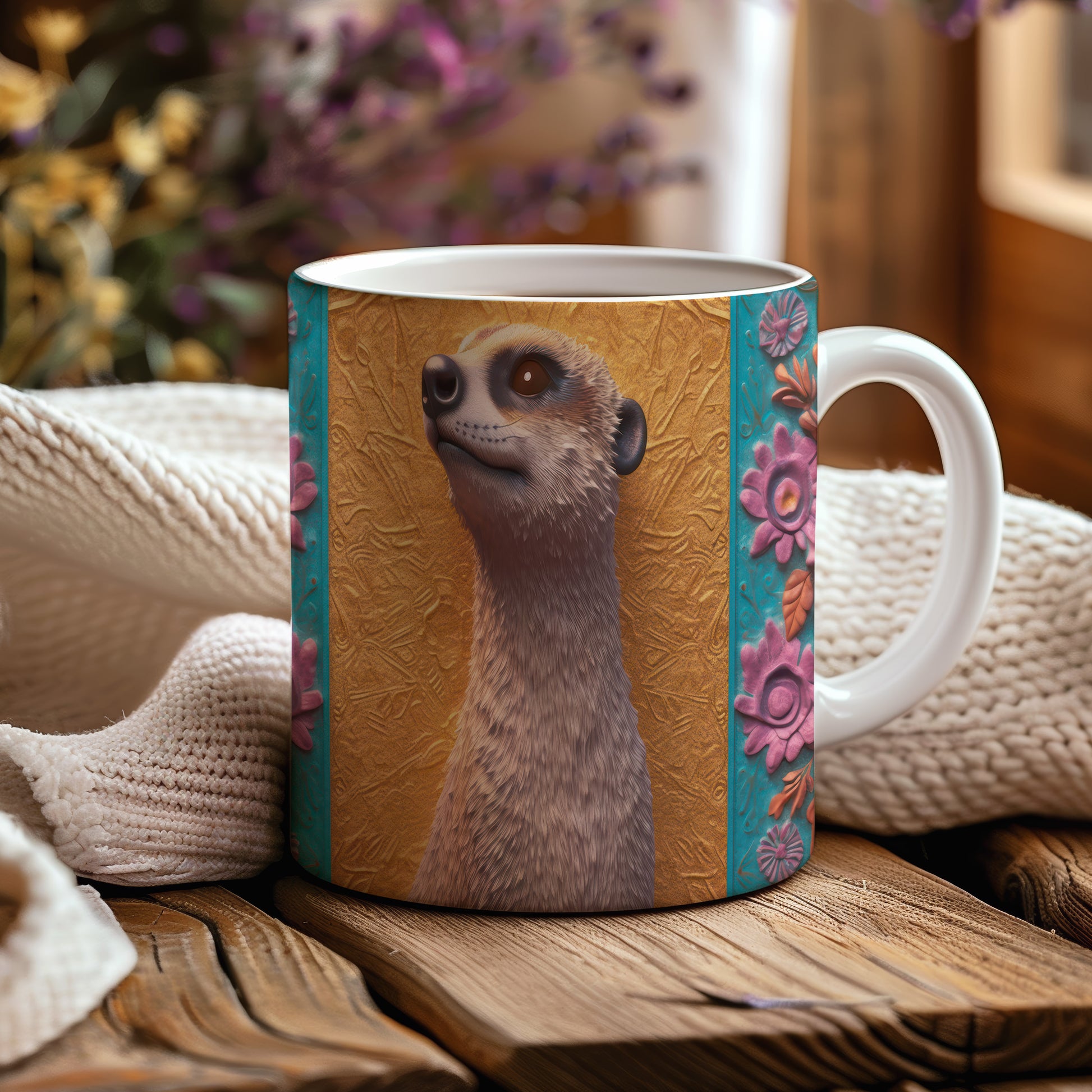 Hrnek s realistickým motivem surikaty a barevným květinovým vzorem je skvělou volbou pro milovníky přírody. Tento stylový hrnek potěší každého, kdo hledá originální dárek pro své blízké. Materiál: keramika. Objem: 330 ml. Vhodné do myčky i mikrovlnky. Užijte si svůj oblíbený nápoj v tomto jedinečném hrnku, který přináší radost do každého dne.