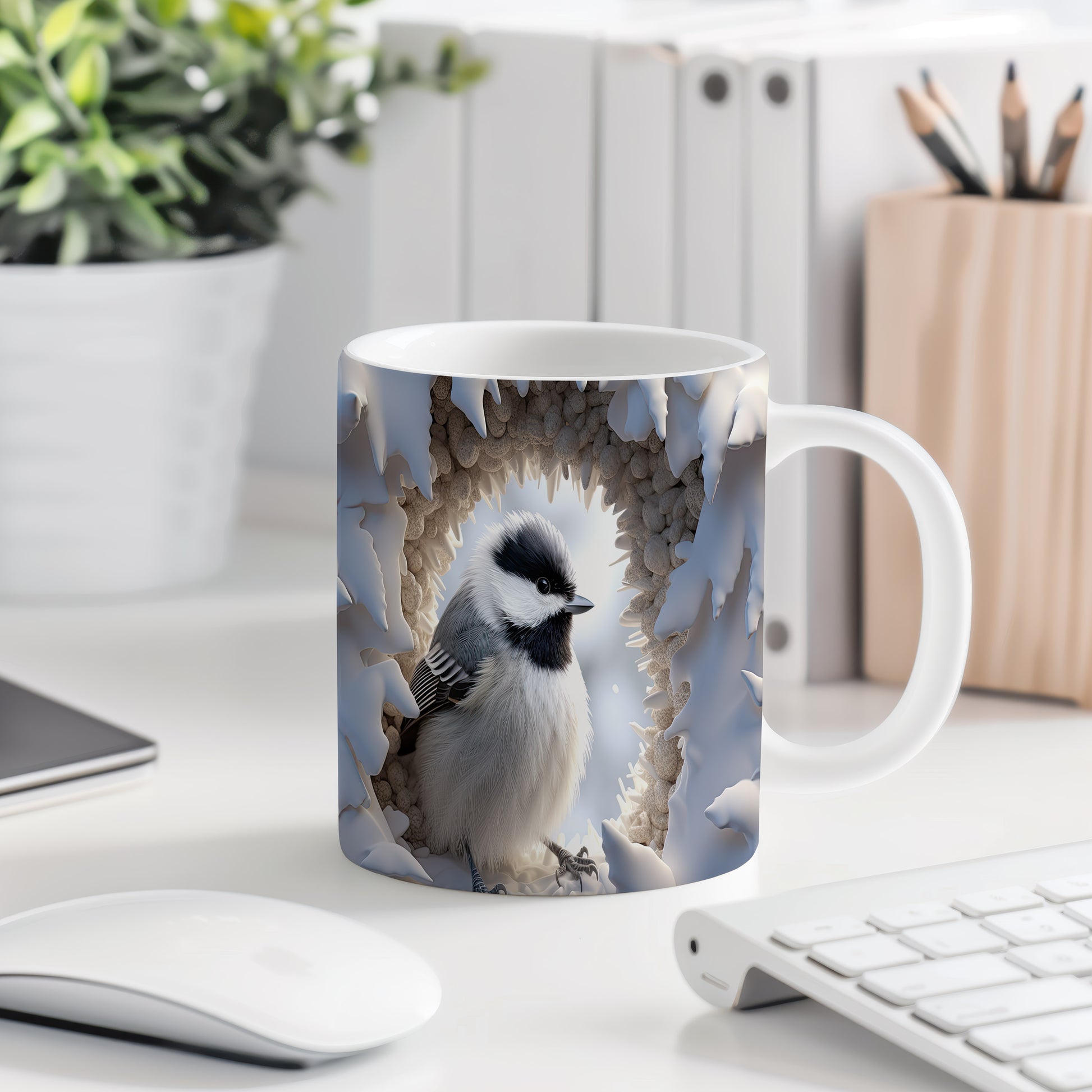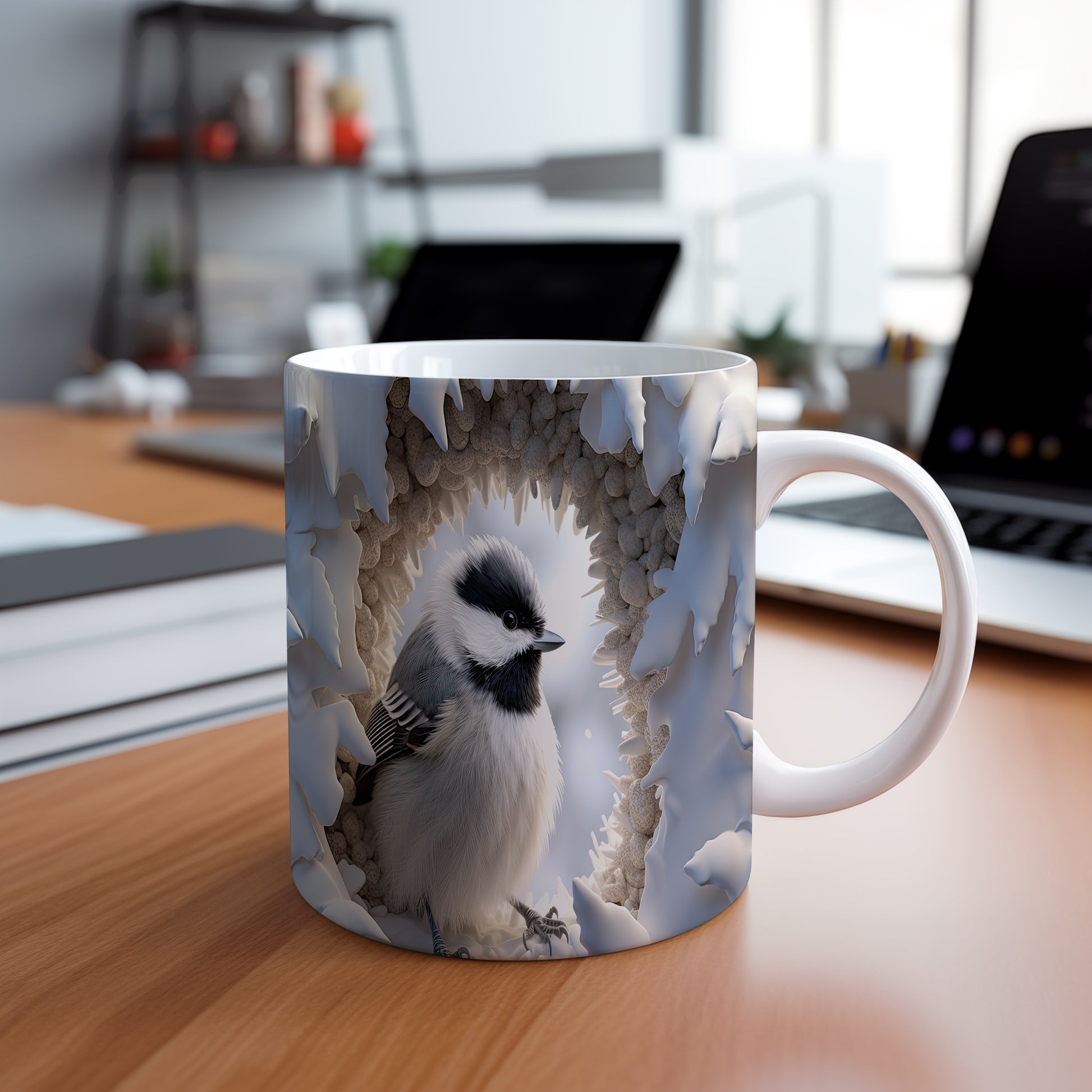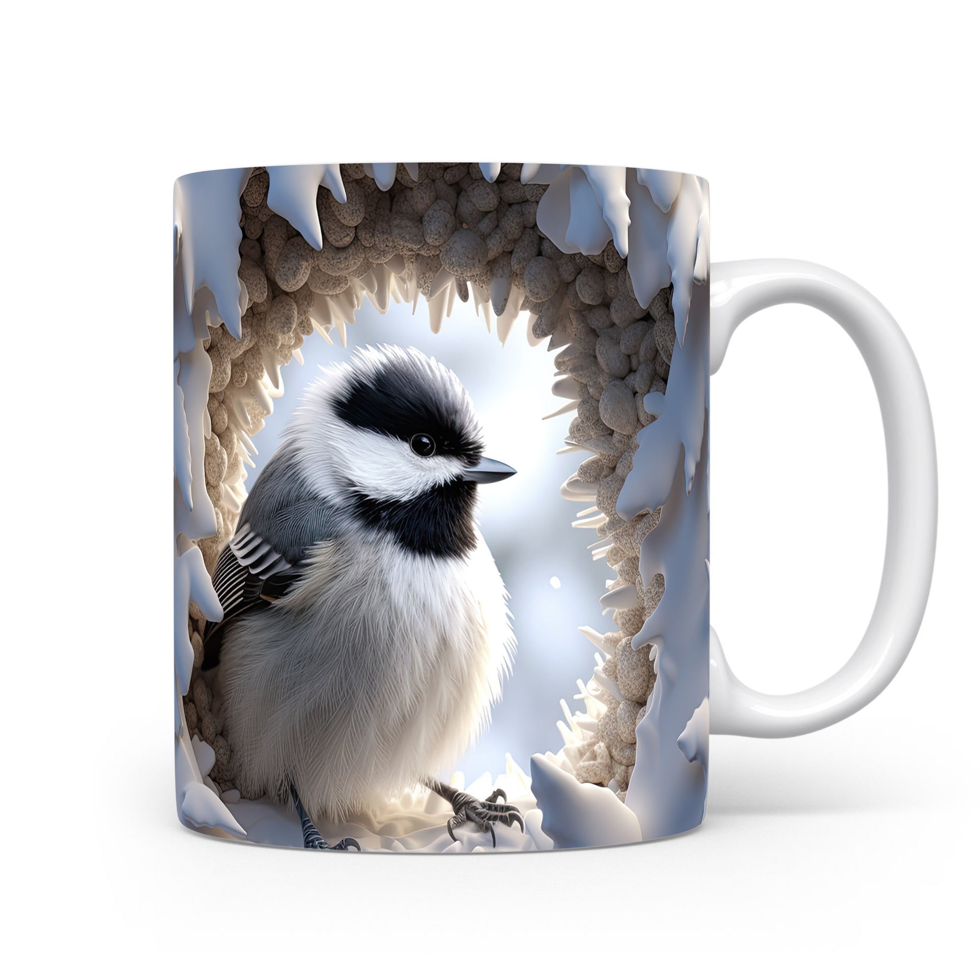 Hrnek s realistickým zobrazením sýkorky v zimním prostředí je stylovým kouskem pro milovníky přírody. Tento hrnek je ideální jako dárek pro přátele nebo rodinu, kteří ocení krásu zimní krajiny. Materiál: keramika. Objem: 330 ml. Vhodné do myčky i mikrovlnky. Používání tohoto hrnku přináší radost z každého doušku teplého nápoje.