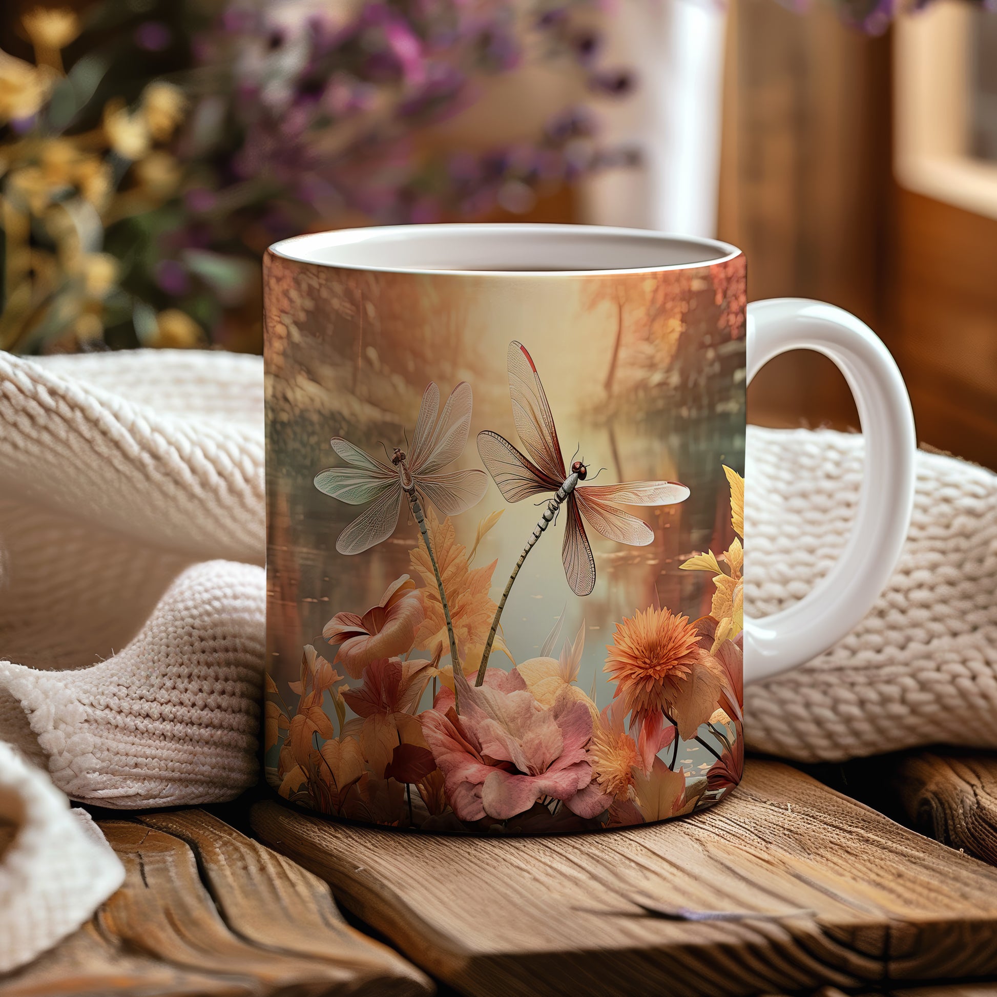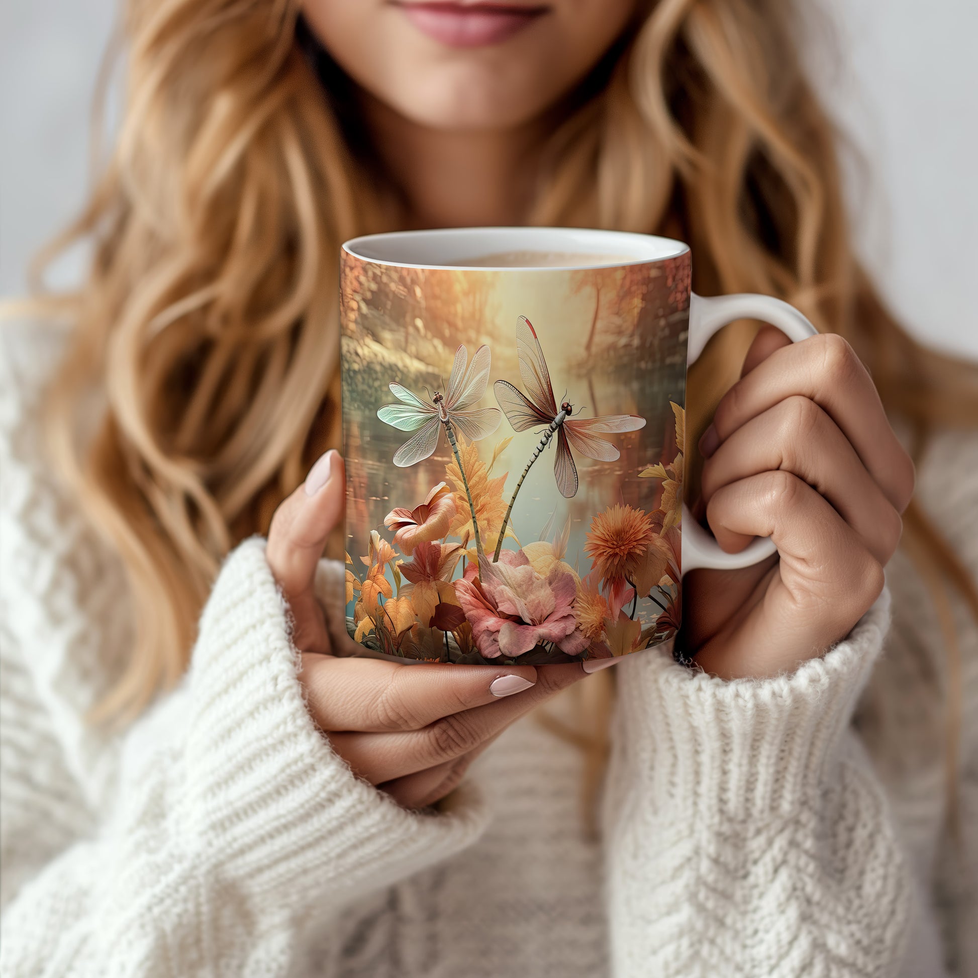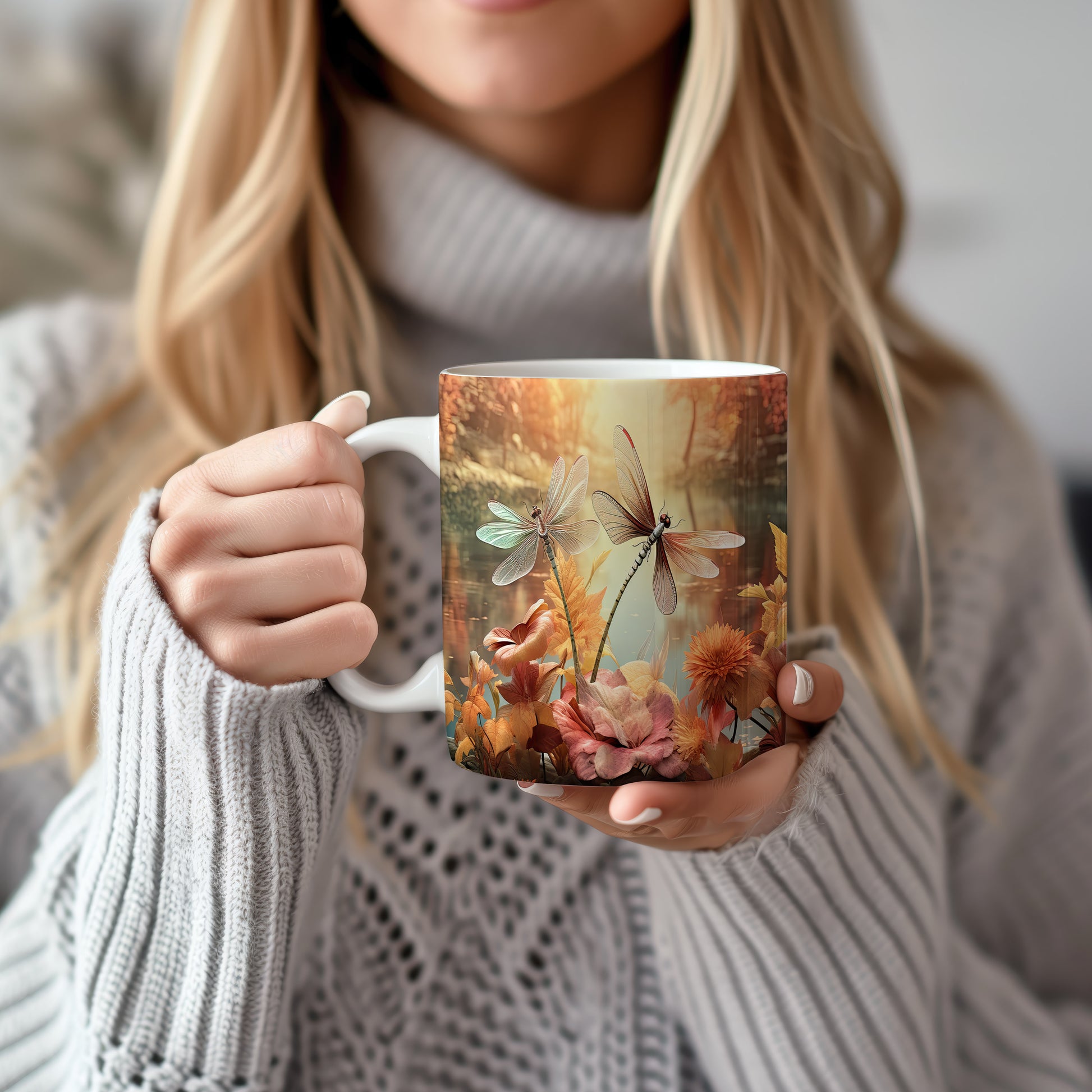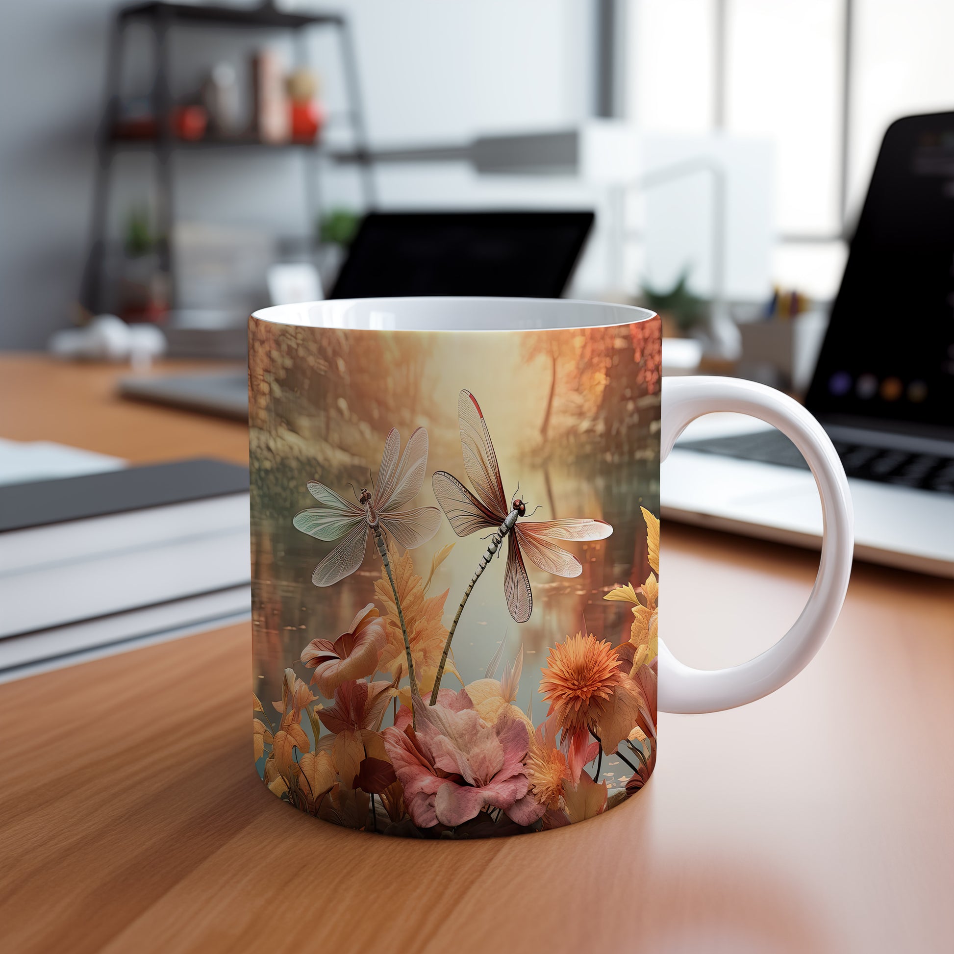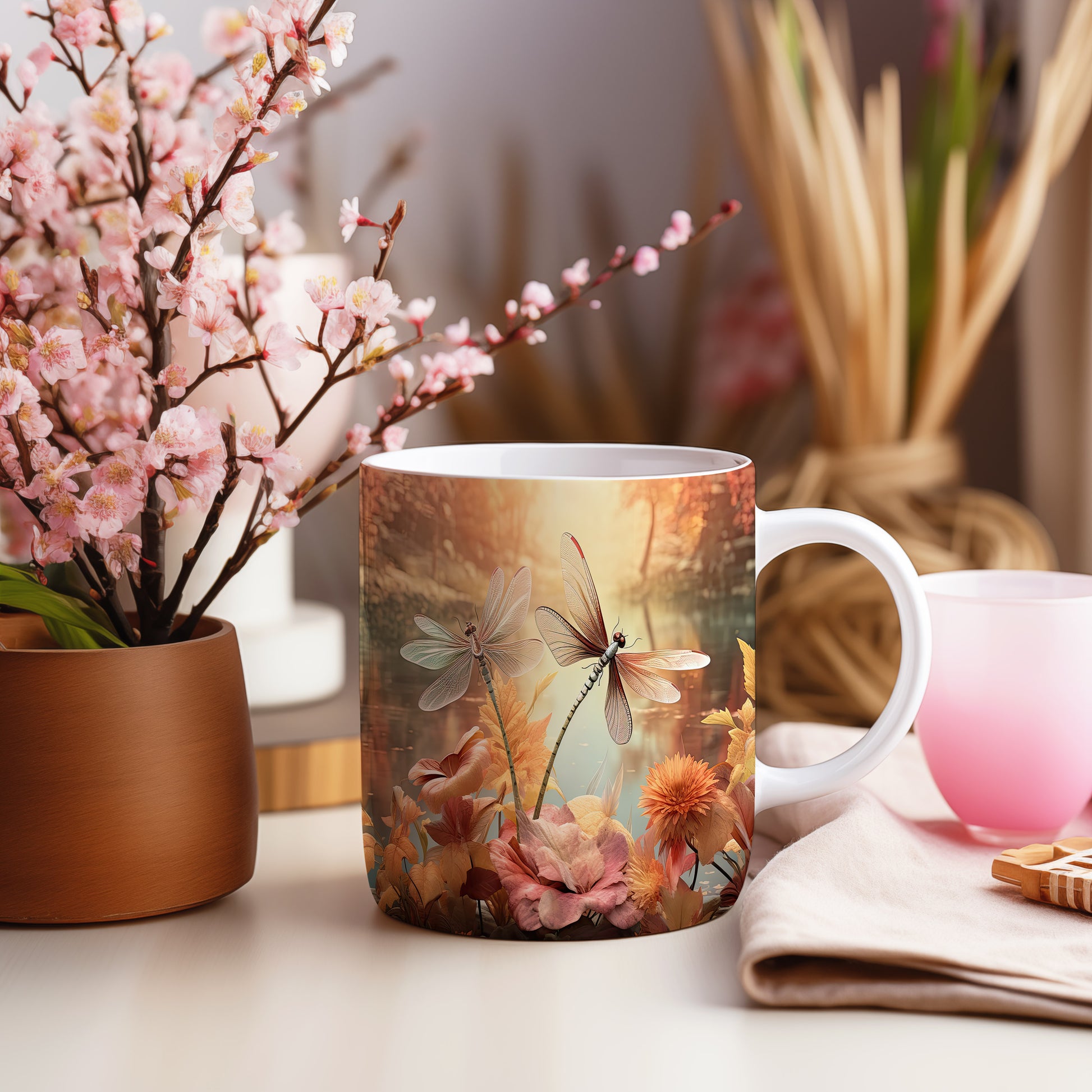 Hrnek s motivem vážek a květin je elegantní a jemný kousek, který potěší každého milovníka přírody. Tento hrnek je skvělým dárkem pro přátele nebo rodinu, kteří ocení krásu a originalitu. Materiál: keramika. Objem: 330 ml. Vhodné do myčky i mikrovlnky. Díky svému designu přináší radost při každém doušku vašeho oblíbeného nápoje.