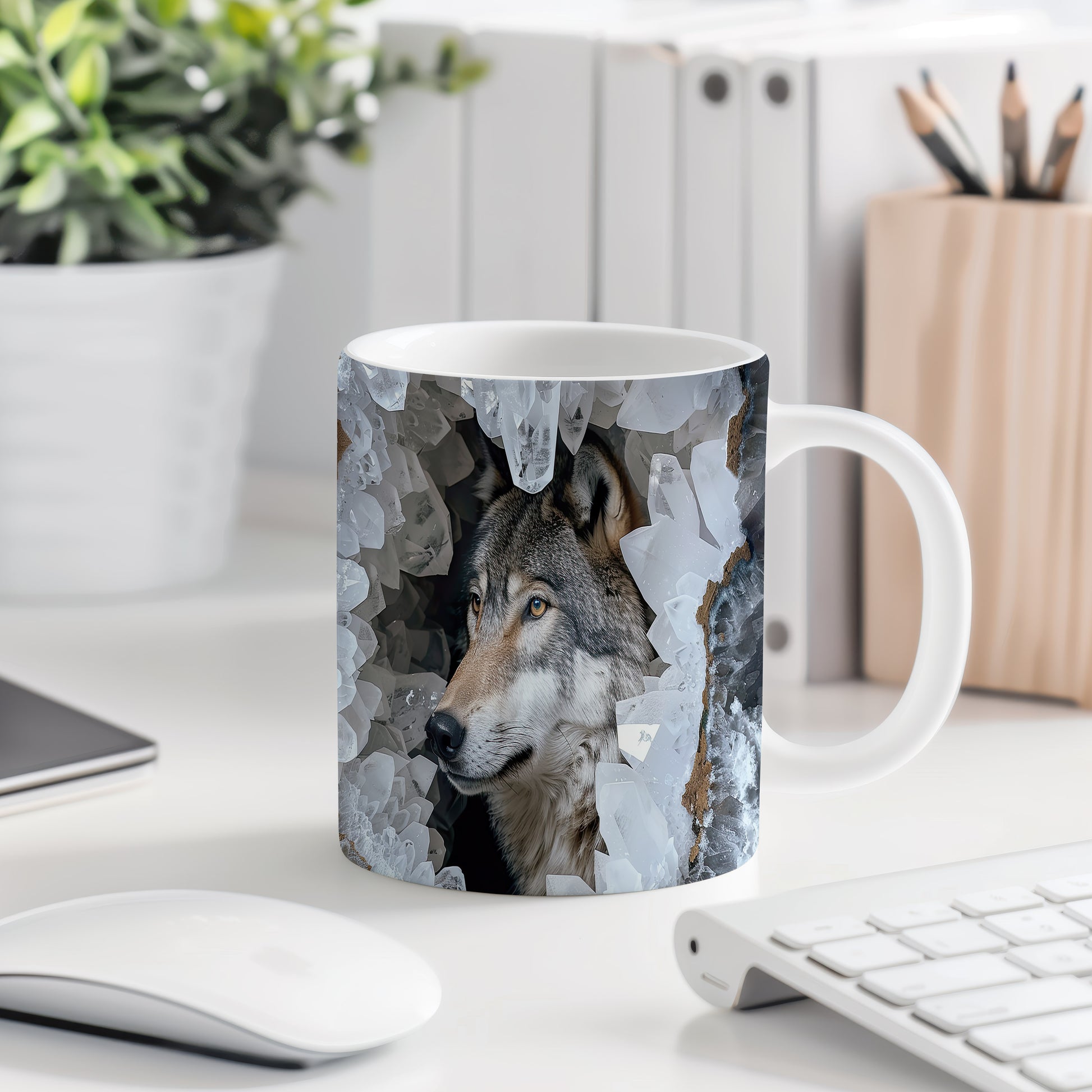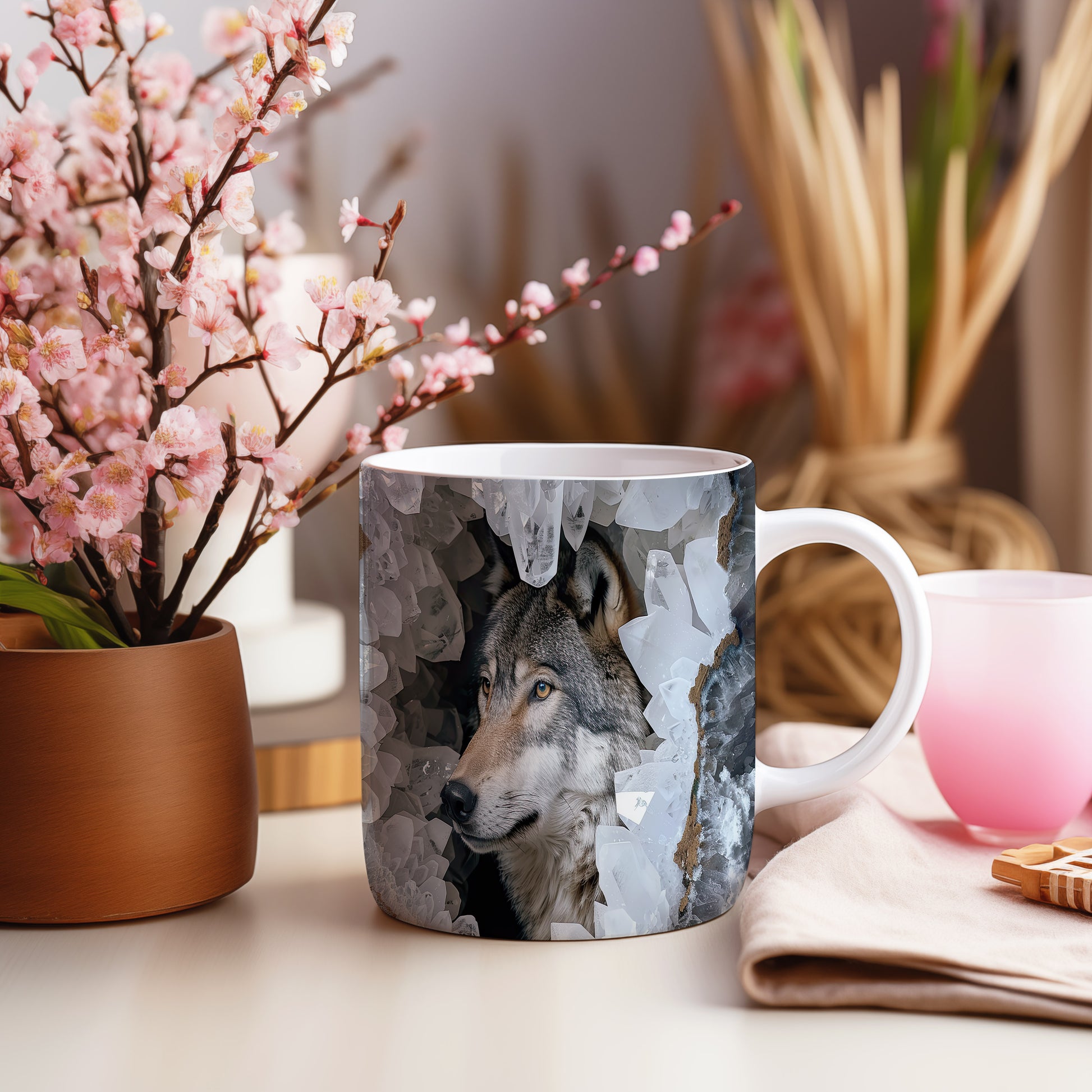 Keramický hrnek s realistickým motivem vlka obklopeného krystaly. Tento hrnek je ideální pro milovníky přírody a skvělý dárek pro každého, kdo ocení jedinečný design. Materiál: keramika. Objem: 330 ml. Vhodné do myčky i mikrovlnky. Používání tohoto hrnku přináší radost z pití oblíbeného nápoje.