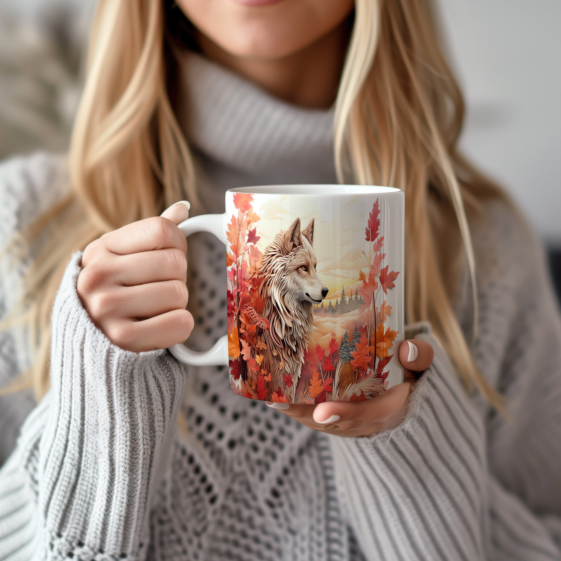 Tento keramický hrnek s realistickým motivem vlka v podzimní krajině je ideální pro milovníky přírody a zvířat. Skvělý tip na dárek pro přátele nebo rodinu, kteří ocení krásu podzimního období. Materiál: keramika. Objem: 330 ml. Vhodné do myčky i mikrovlnky. Používání tohoto hrnku přináší radost z každého doušku a zútulní váš domov.