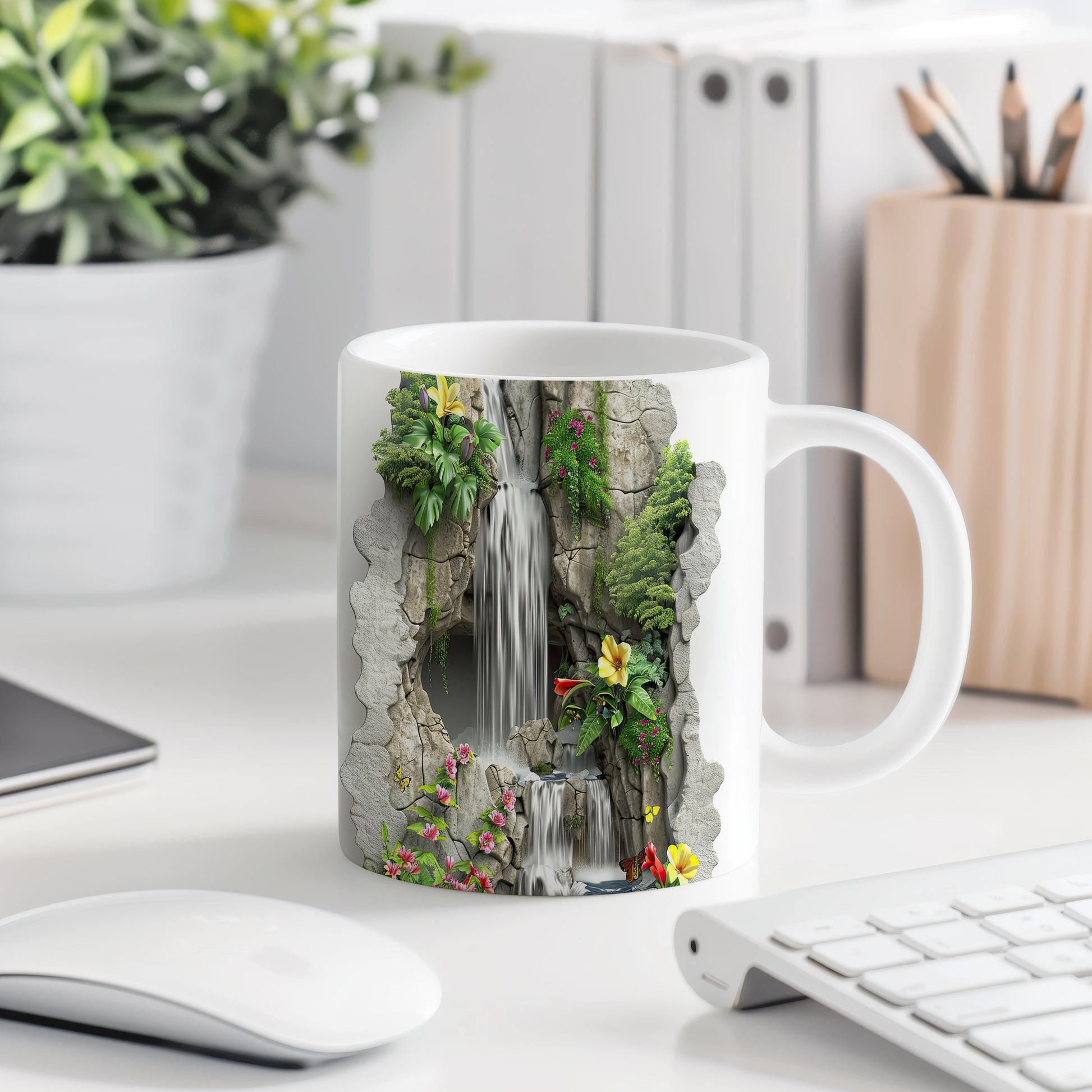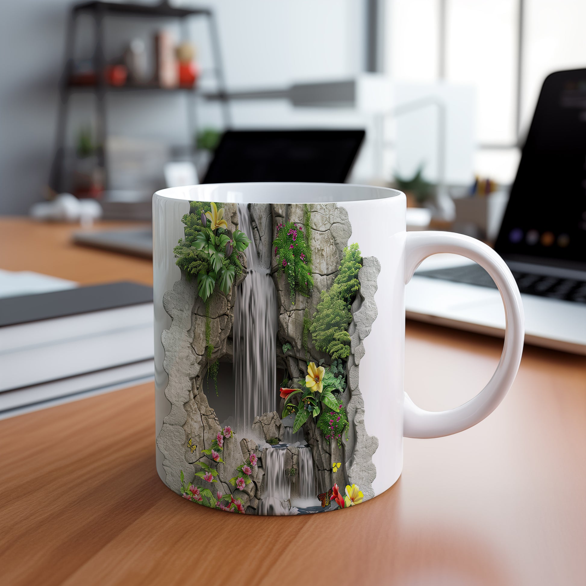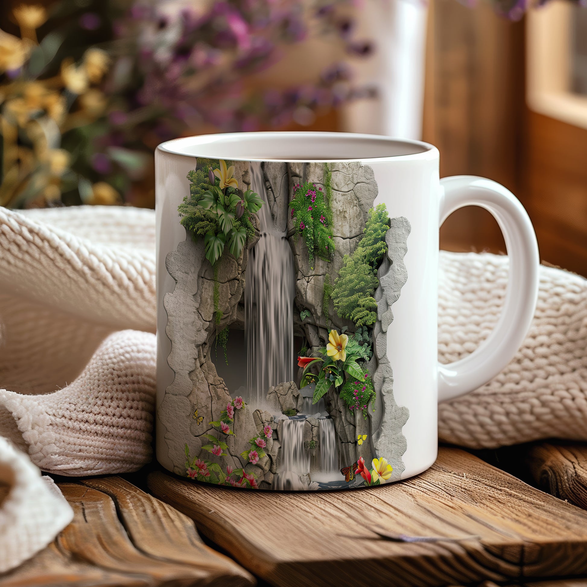 Keramický hrnek s krásným motivem vodopádu a barevných květin. Tento hrnek je ideální pro všechny, kteří si chtějí užít chvíle klidu s oblíbeným nápojem, a skvělým dárkem pro milovníky přírody. Materiál: keramika. Objem: 330 ml. Vhodné do myčky i mikrovlnky. Díky svému designu přináší do každodenního pití radost a pohodu.