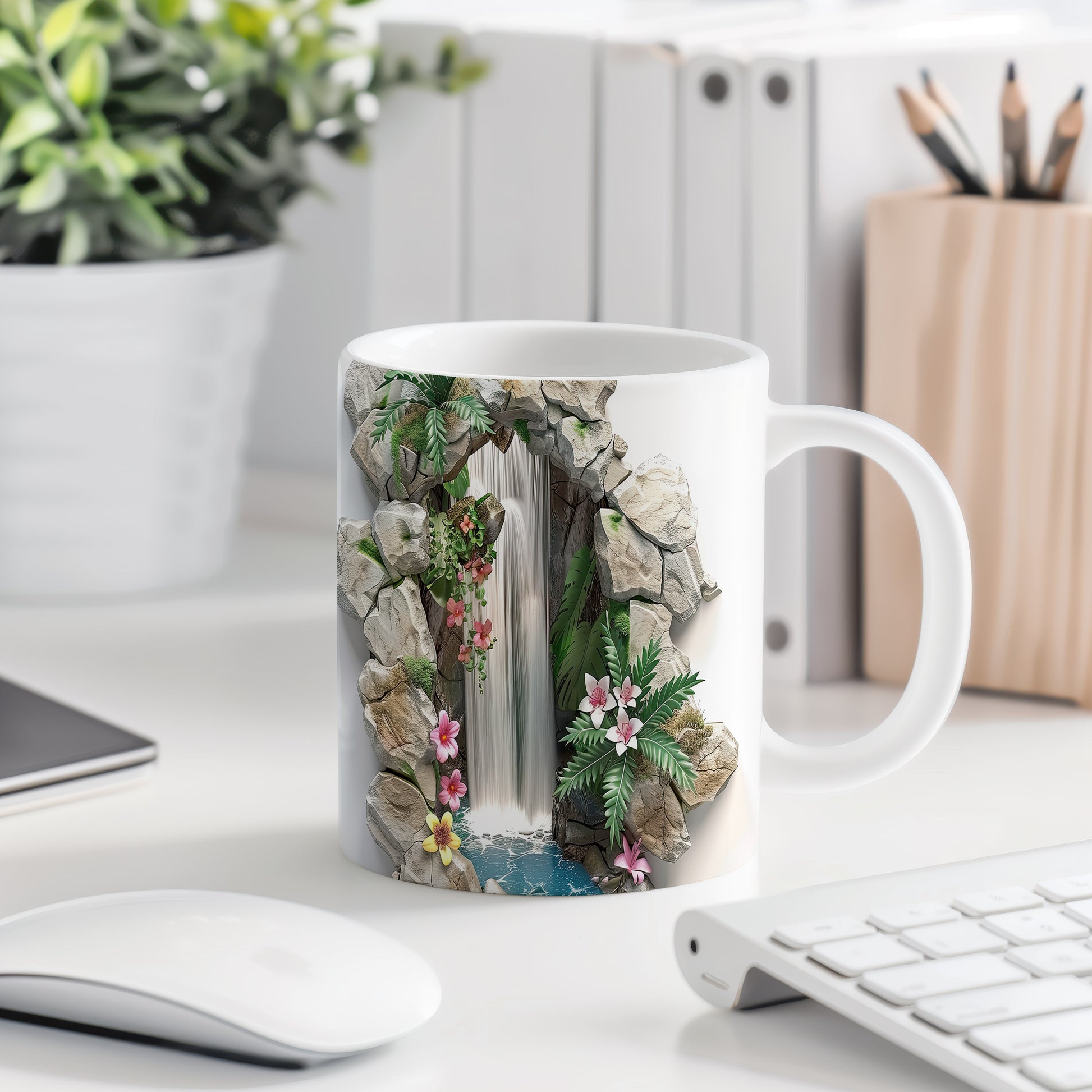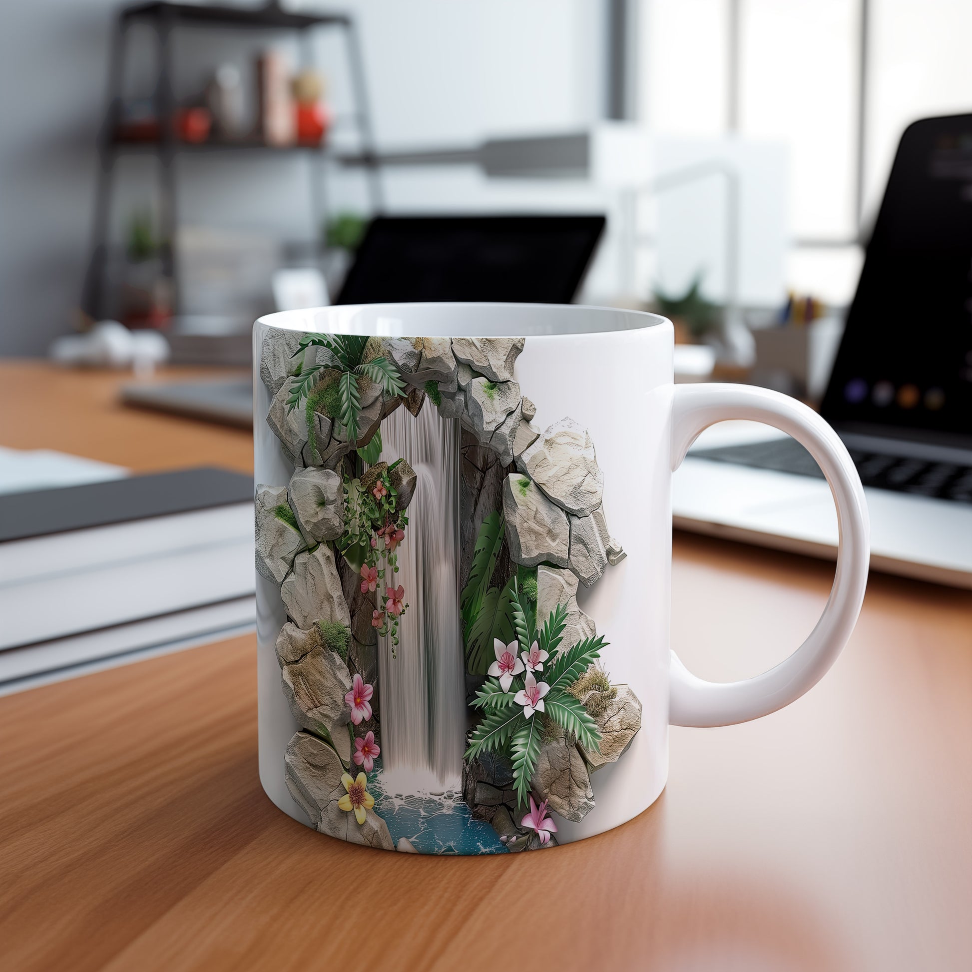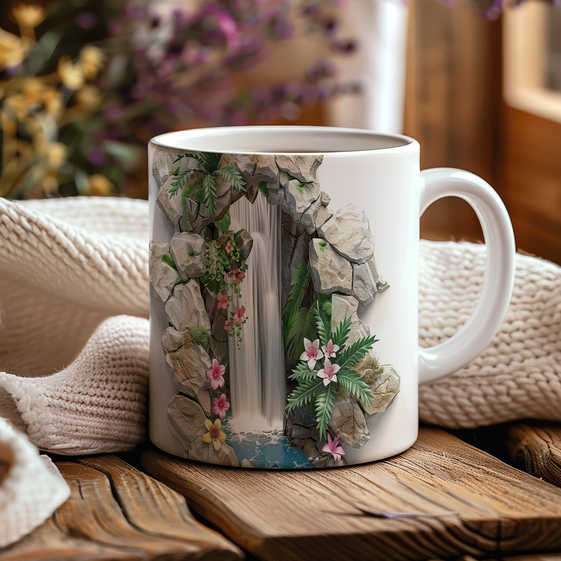 Tento keramický hrnek s motivem vodopádu a květin přináší klidné a přírodní pocity. Je ideální pro milovníky přírody a skvělým dárkem pro každého, kdo ocení krásu přírody. Materiál: keramika. Objem: 330 ml. Vhodné do myčky i mikrovlnky. Užívejte si své oblíbené nápoje v harmonickém stylu.