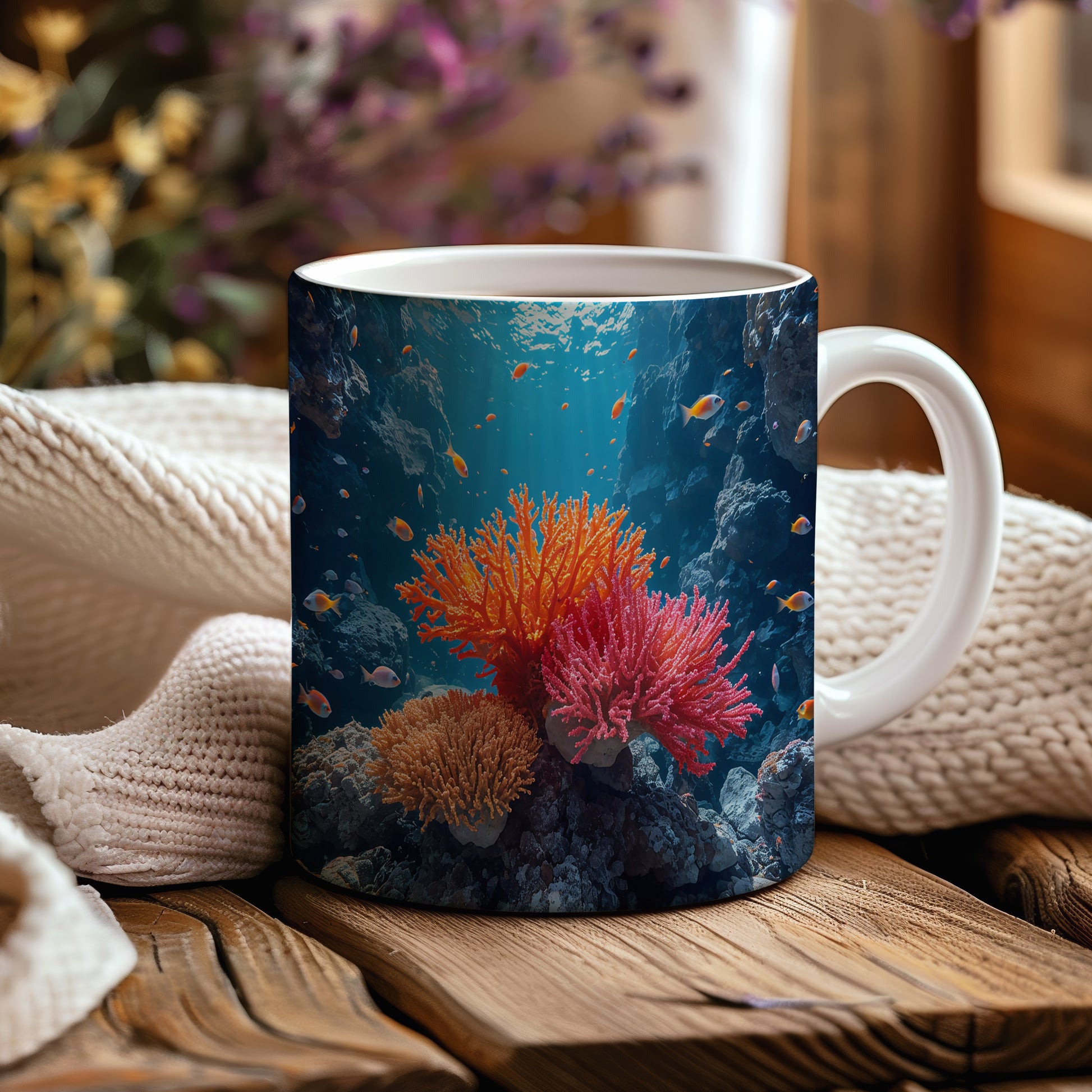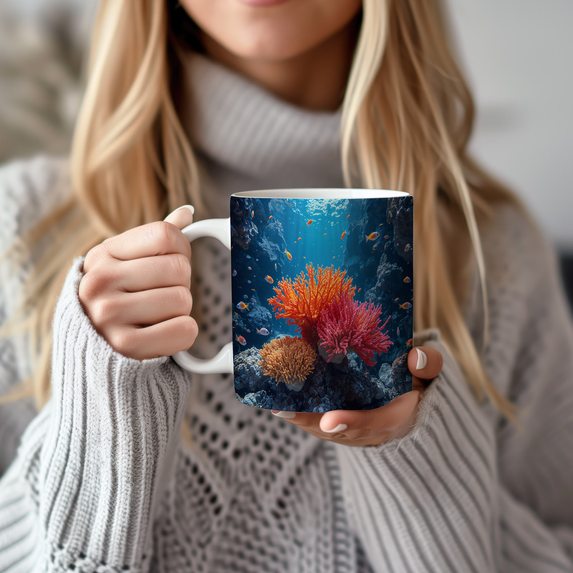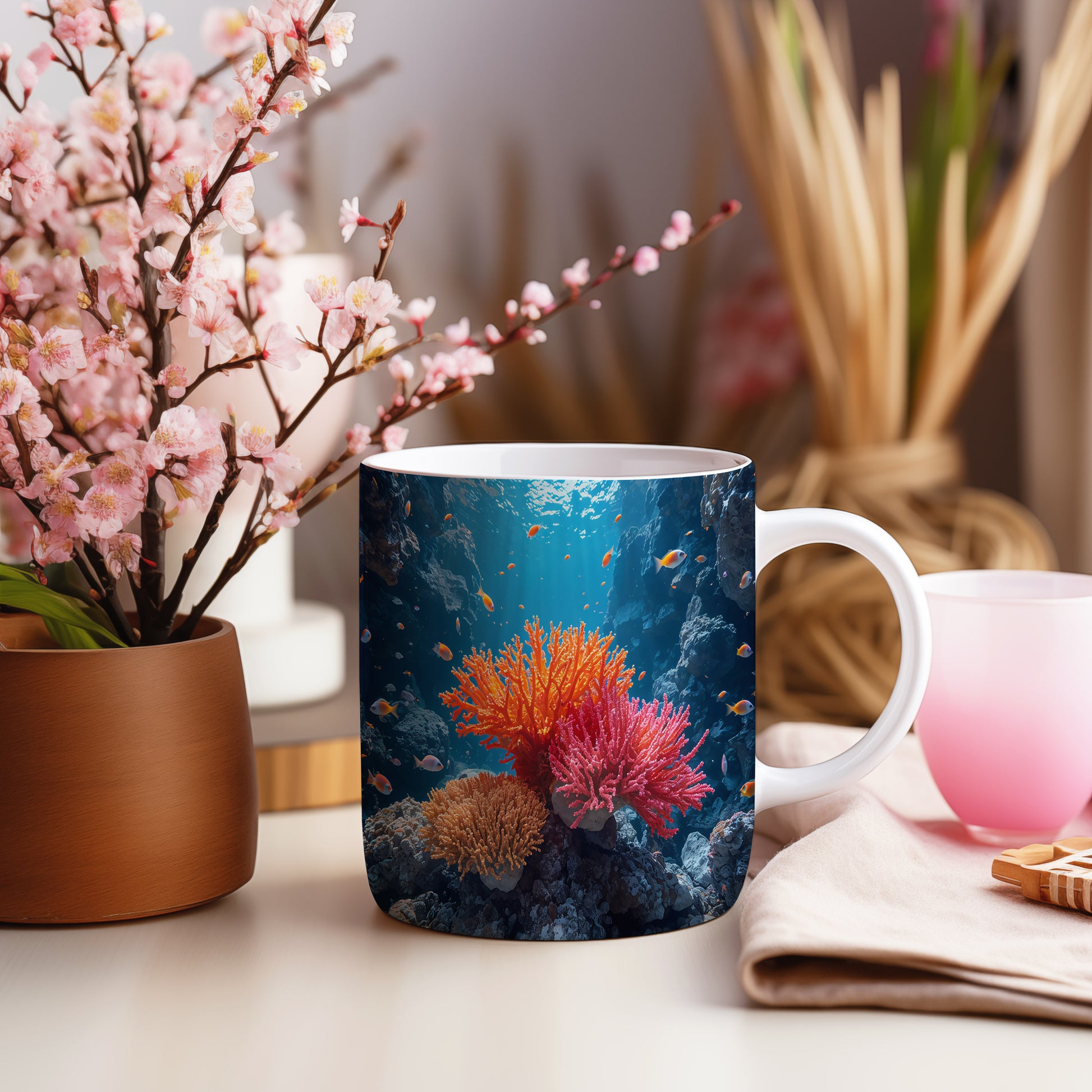 V hlubinách oceánu se rozprostírají živé korály, jejichž barvy tančí v paprscích slunce. Ryby se proplétají mezi útesy, kde vládne tichá harmonie. Hrnek 330ml – vhodný do myčky i mikrovlnky.