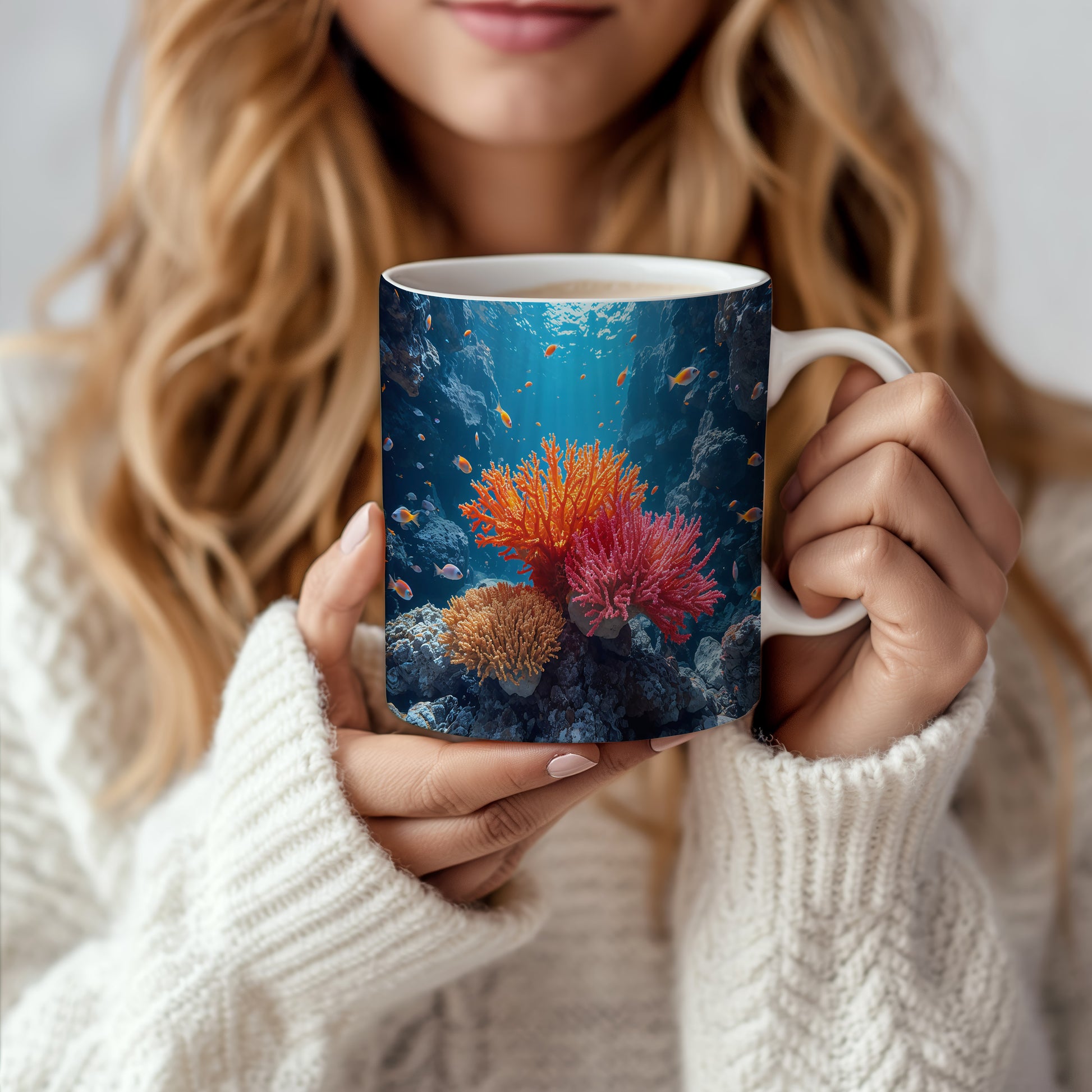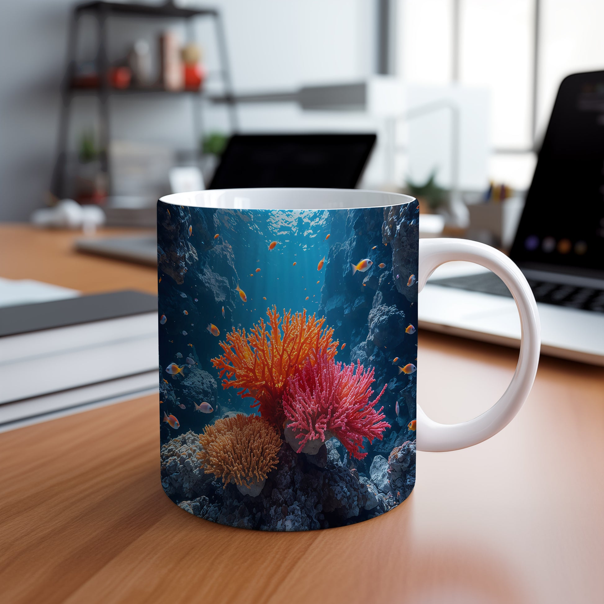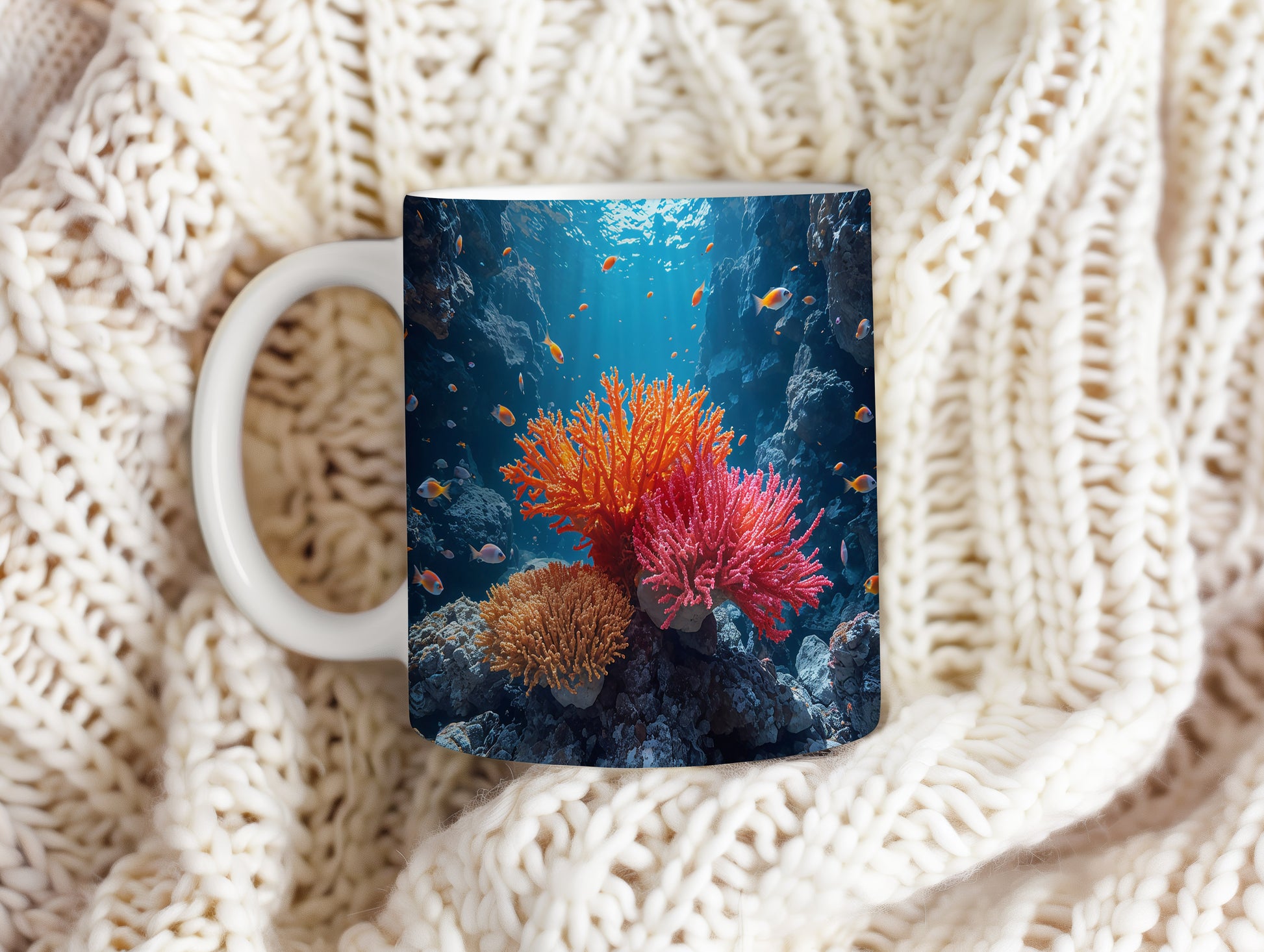 V hlubinách oceánu se rozprostírají živé korály, jejichž barvy tančí v paprscích slunce. Ryby se proplétají mezi útesy, kde vládne tichá harmonie. Hrnek 330ml – vhodný do myčky i mikrovlnky.