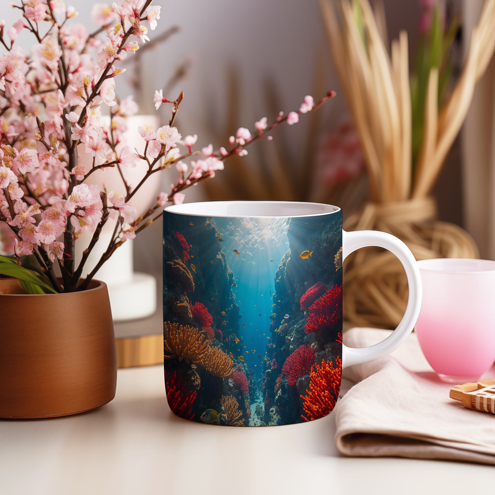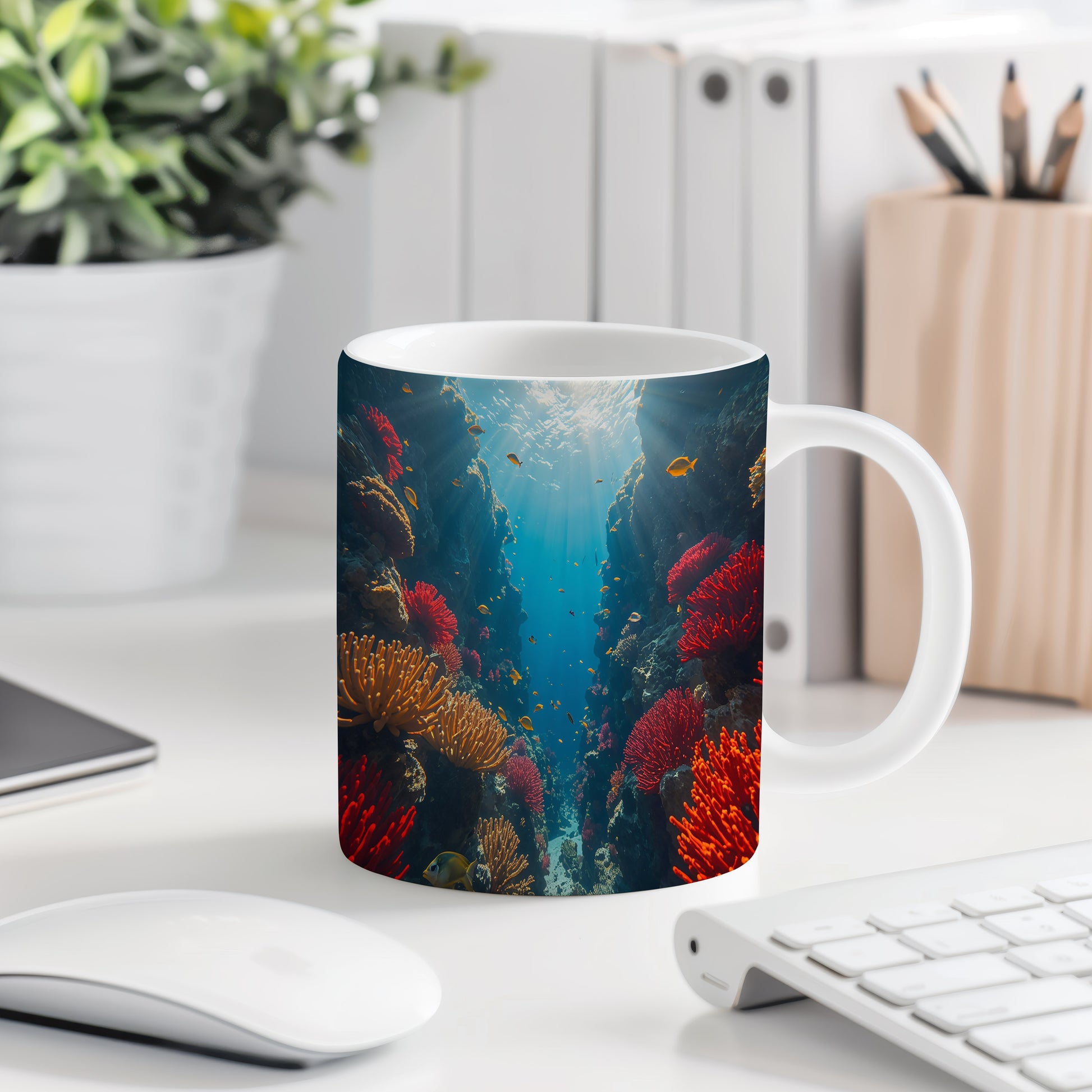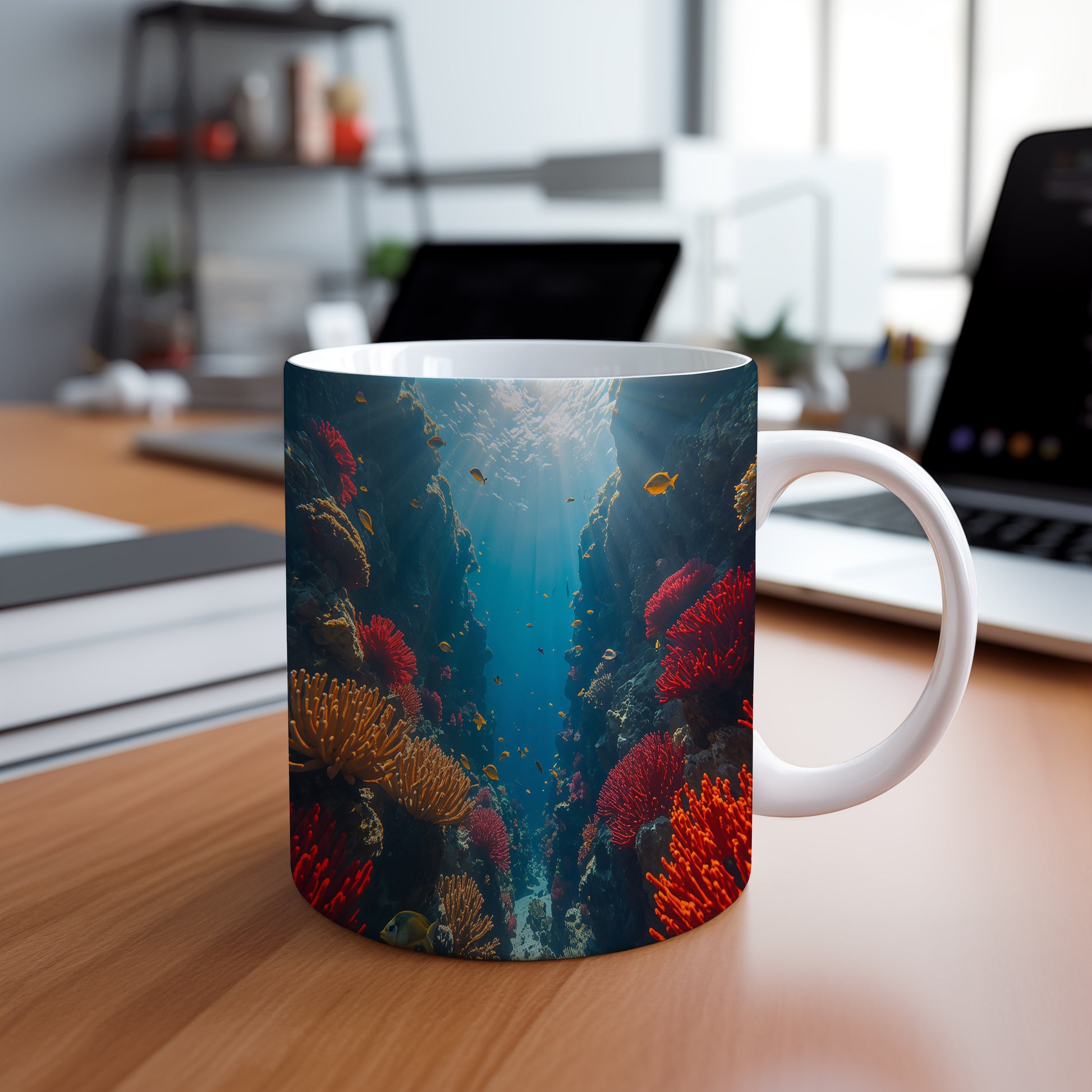 Objevte kouzlo podmořského světa, kde korály září jako drahokamy. Hrnek 330ml – vhodný do myčky i mikrovlnky.