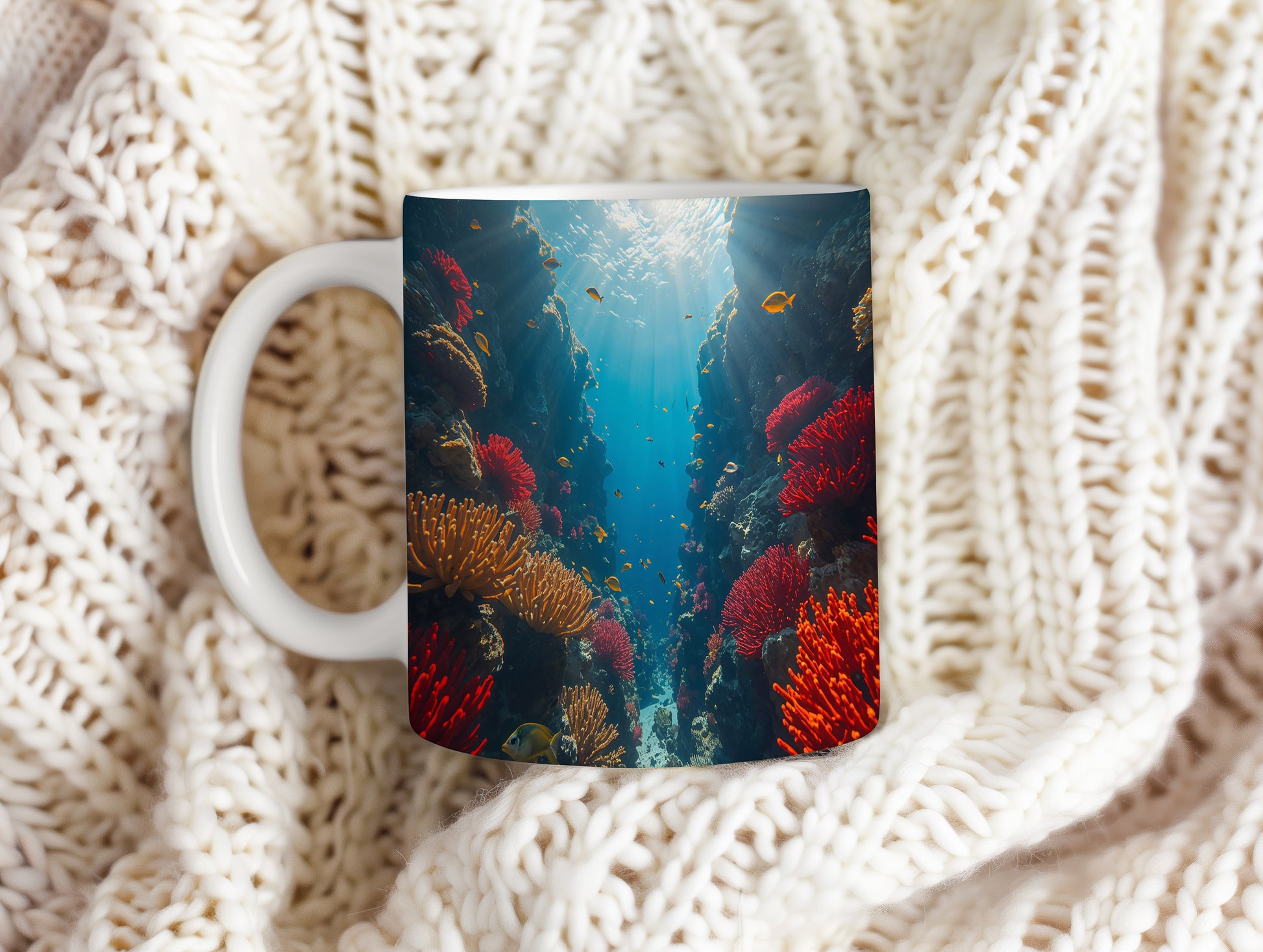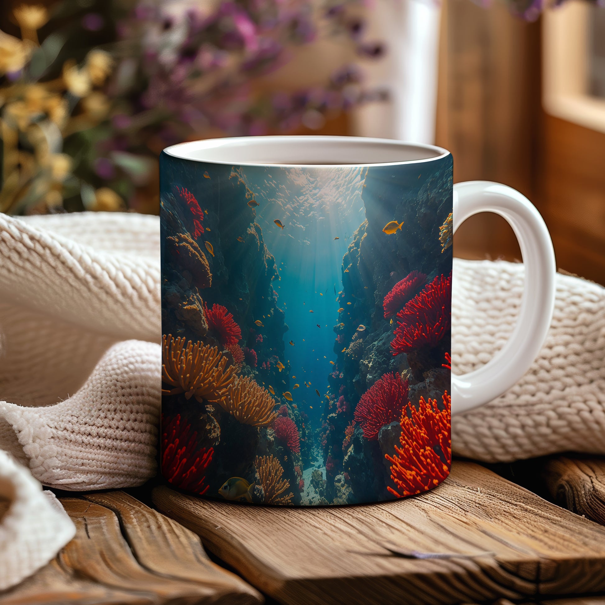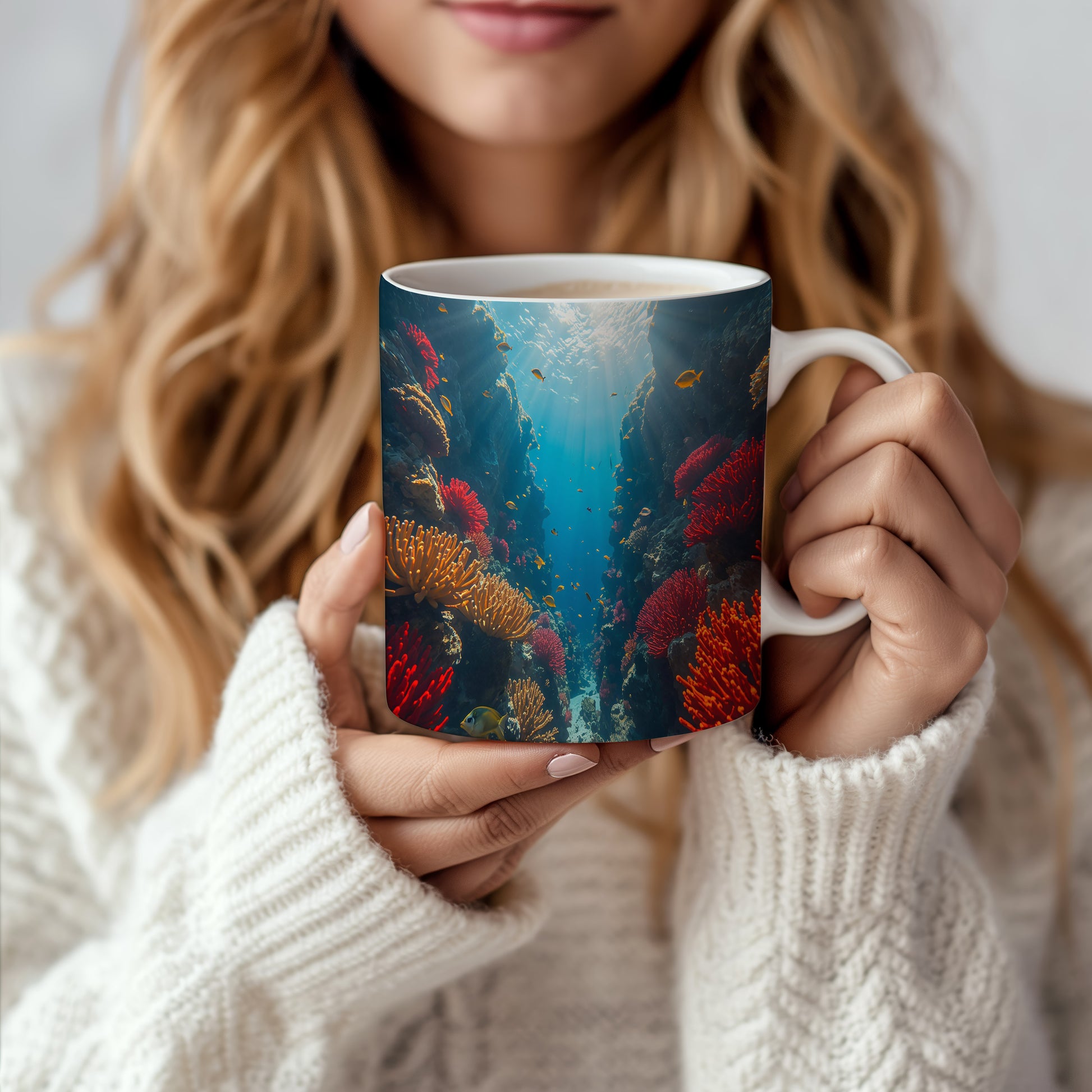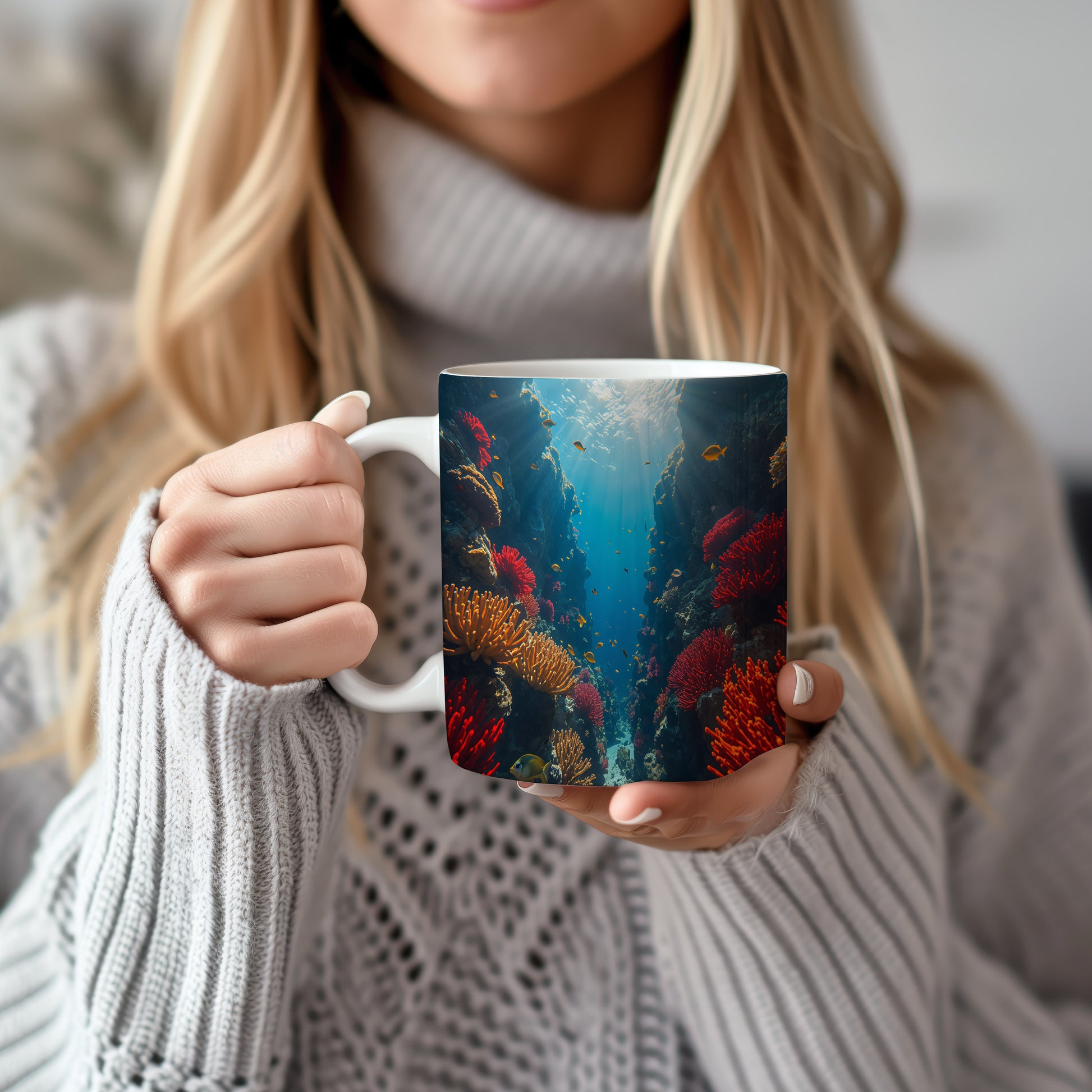 Objevte kouzlo podmořského světa, kde korály září jako drahokamy. Hrnek 330ml – vhodný do myčky i mikrovlnky.