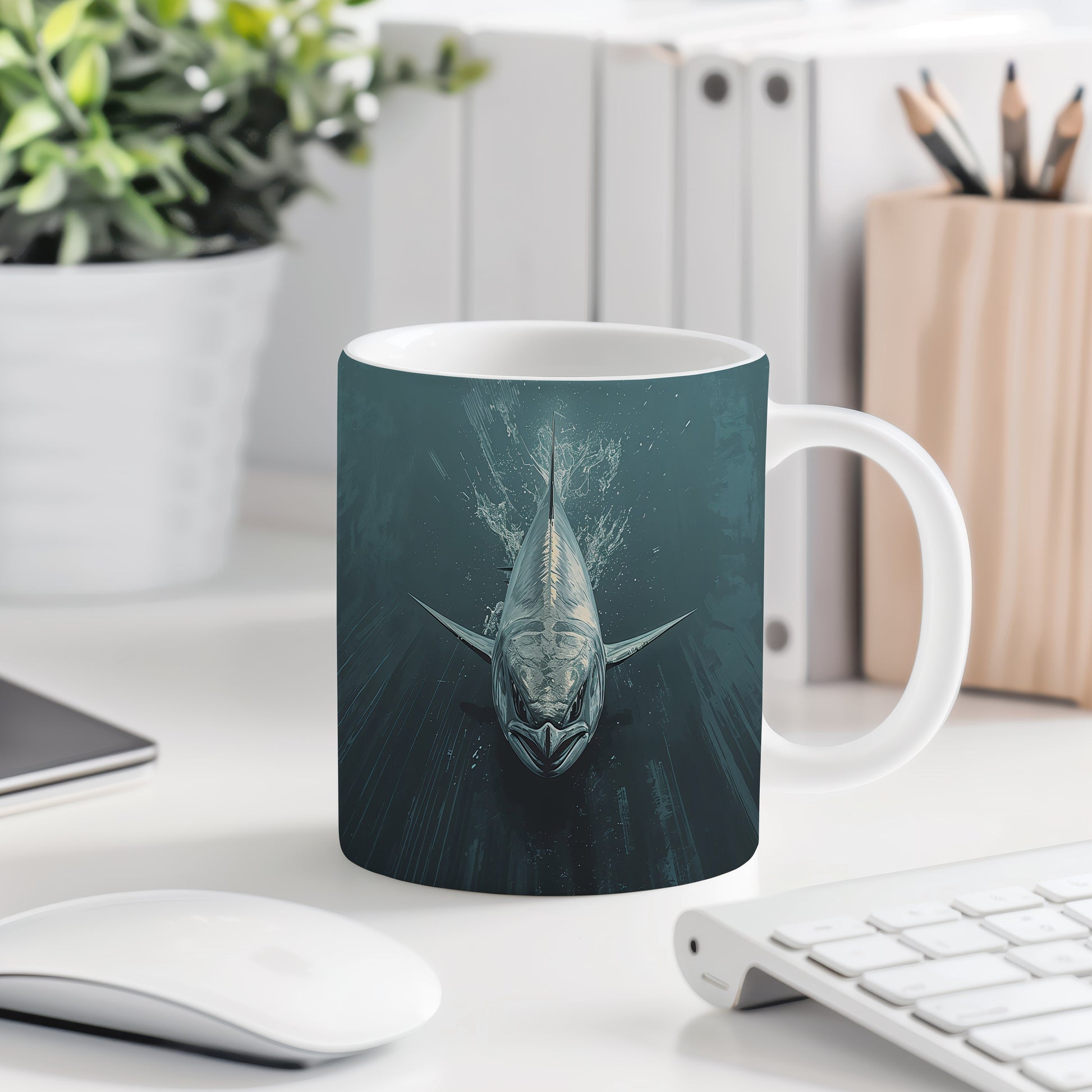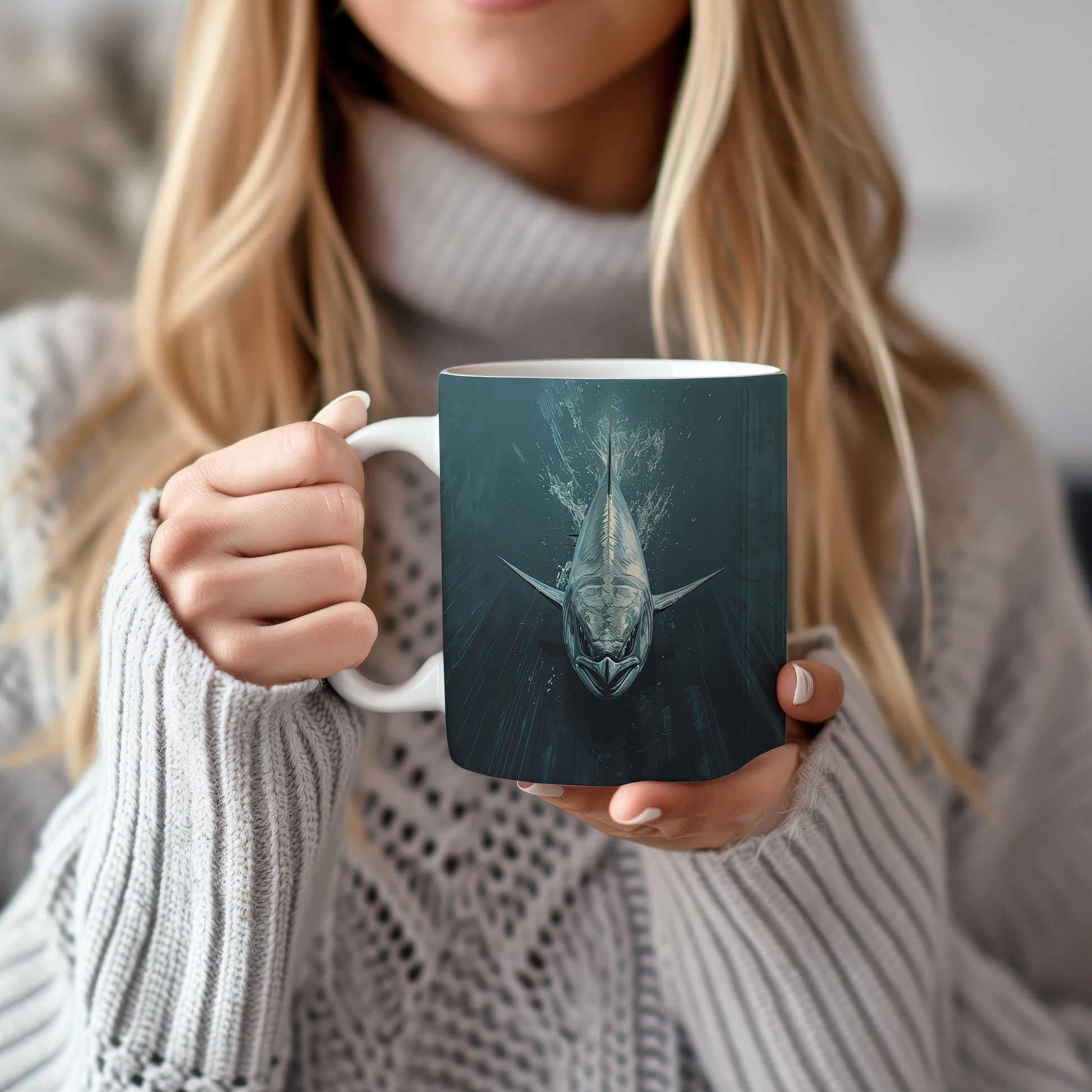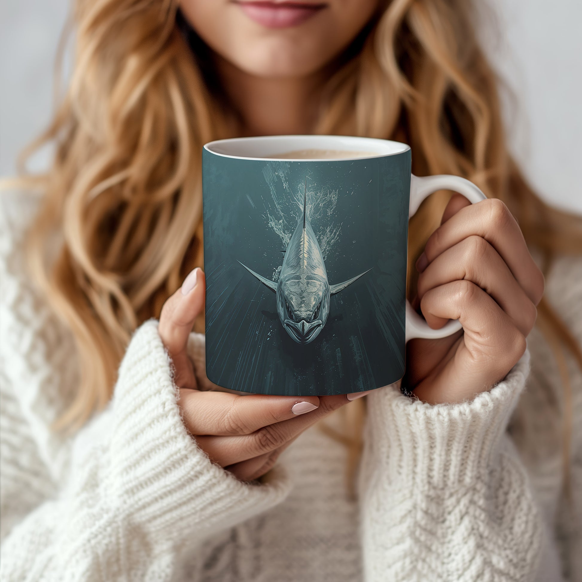 Tento hrnek zachycuje žraloka v plné síle, jak se řítí skrze temné vody oceánu. Stříbrné odlesky na jeho těle kontrastují s hlubokou modří moře. Hrnek 330ml – vhodný do myčky i mikrovlnky.