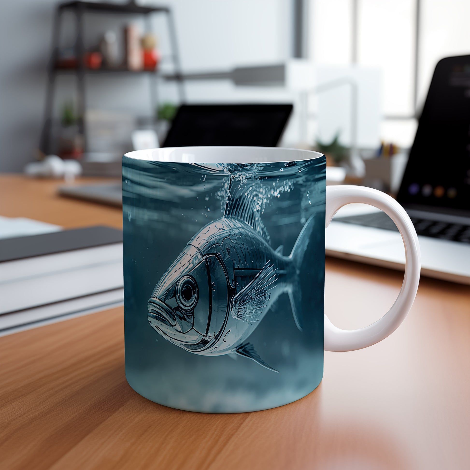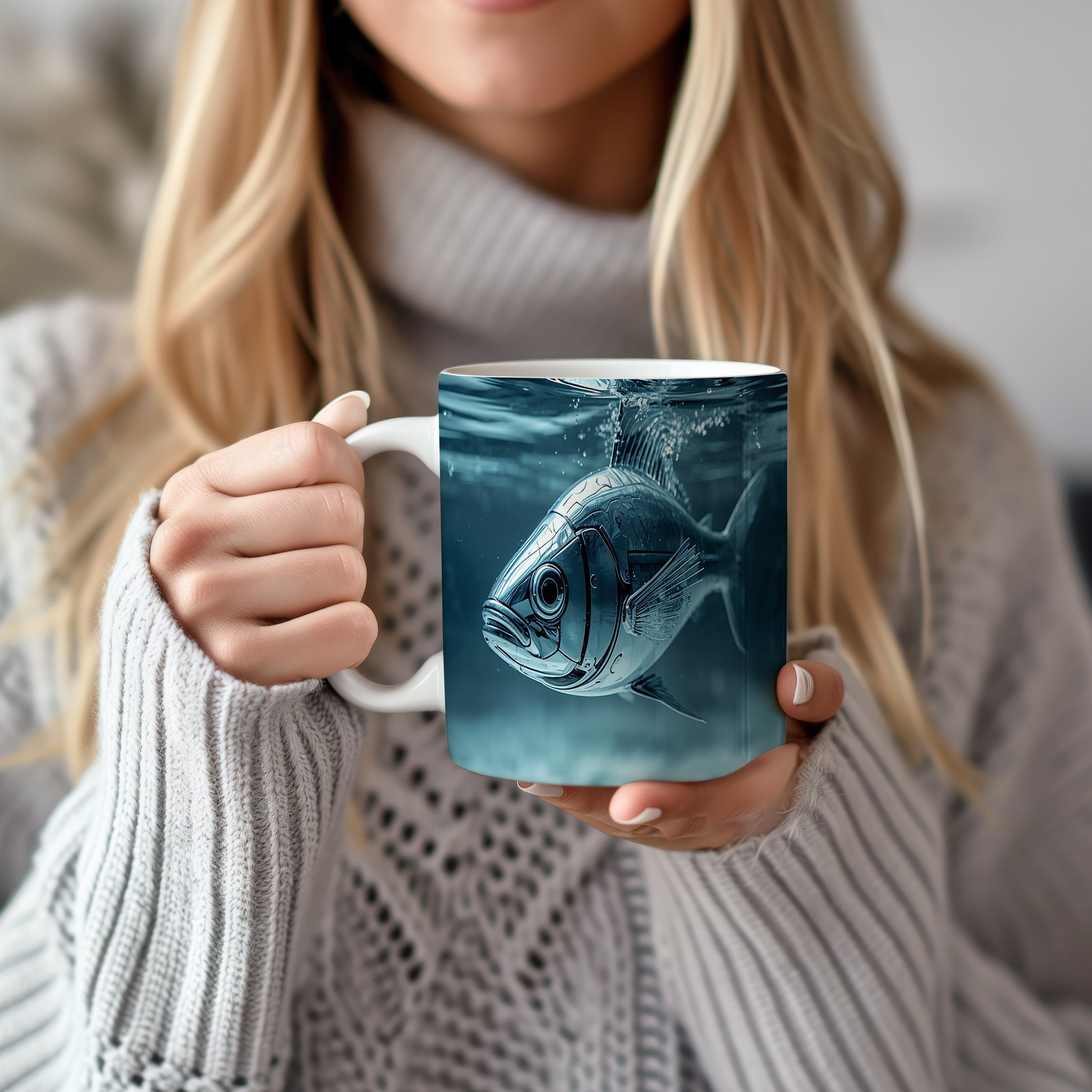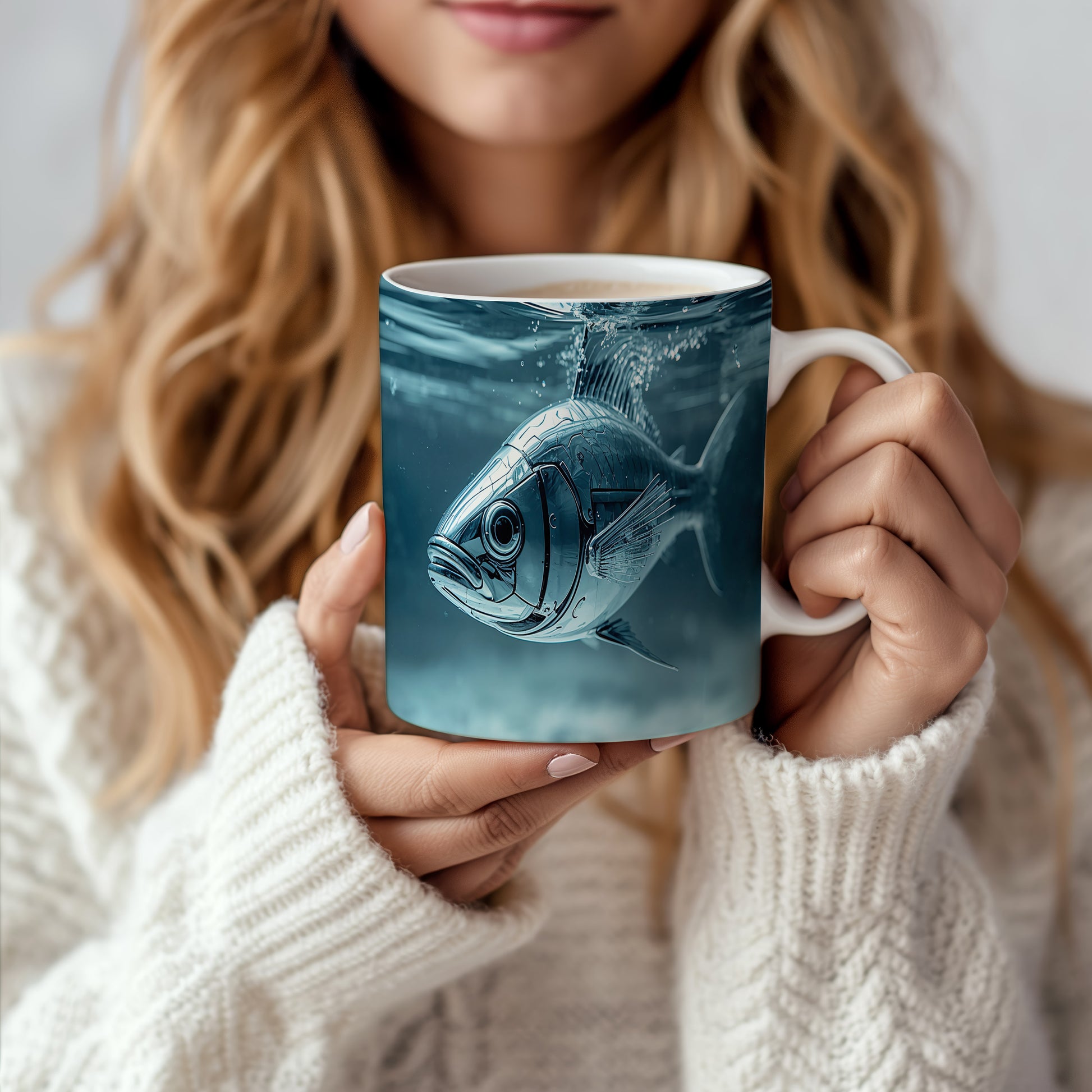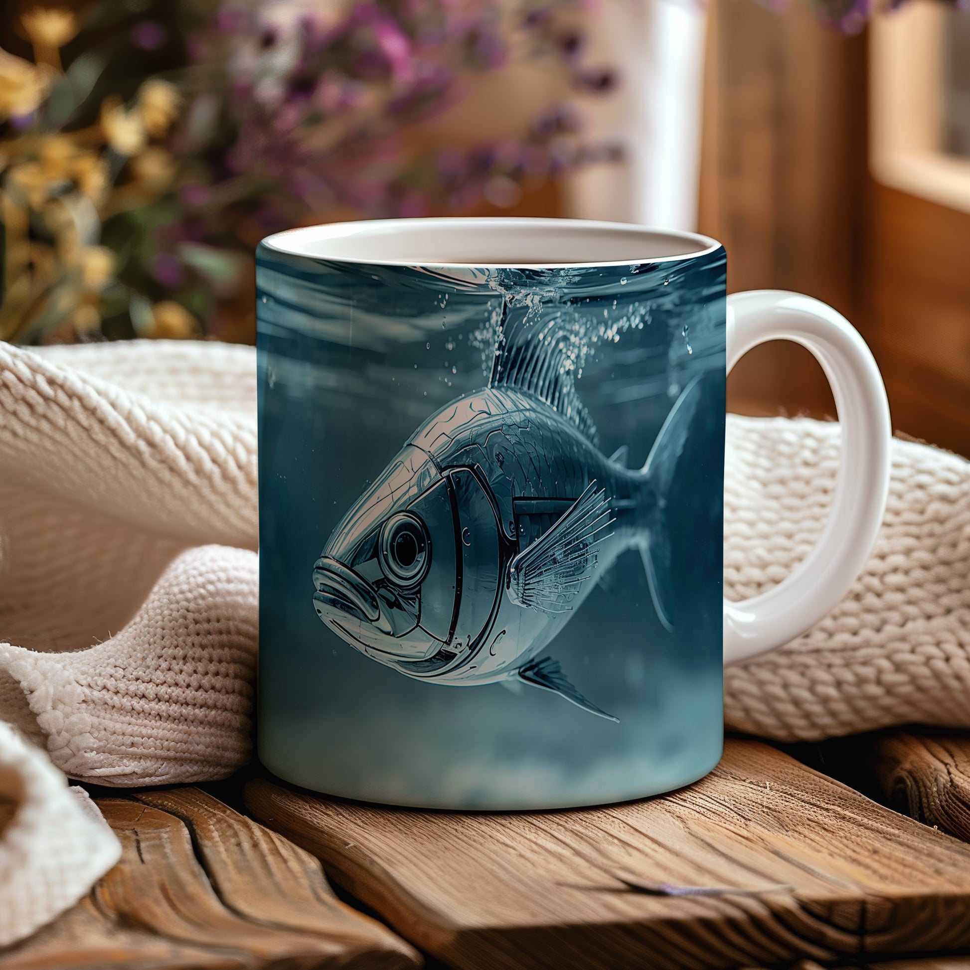 Elegantní ryba ve stříbrném hávu se vznáší ve vodním světě, kde světlo tančí na povrchu oceánu. Tento hrnek přináší pocit tajemné hloubky a klidu. Hrnek 330ml – vhodný do myčky i mikrovlnky.