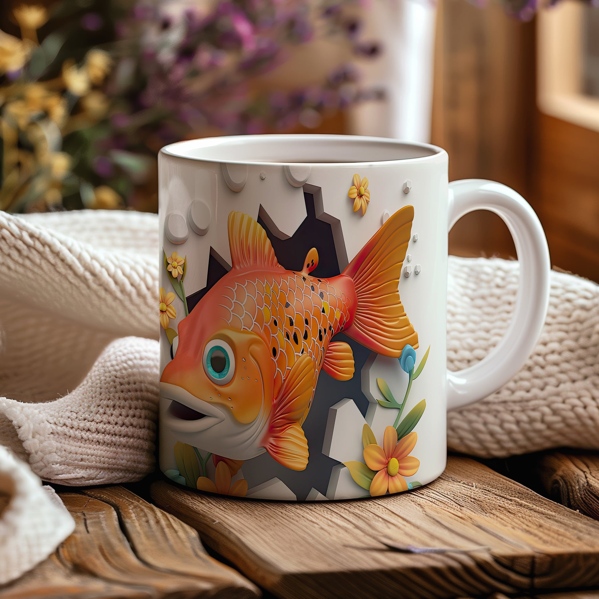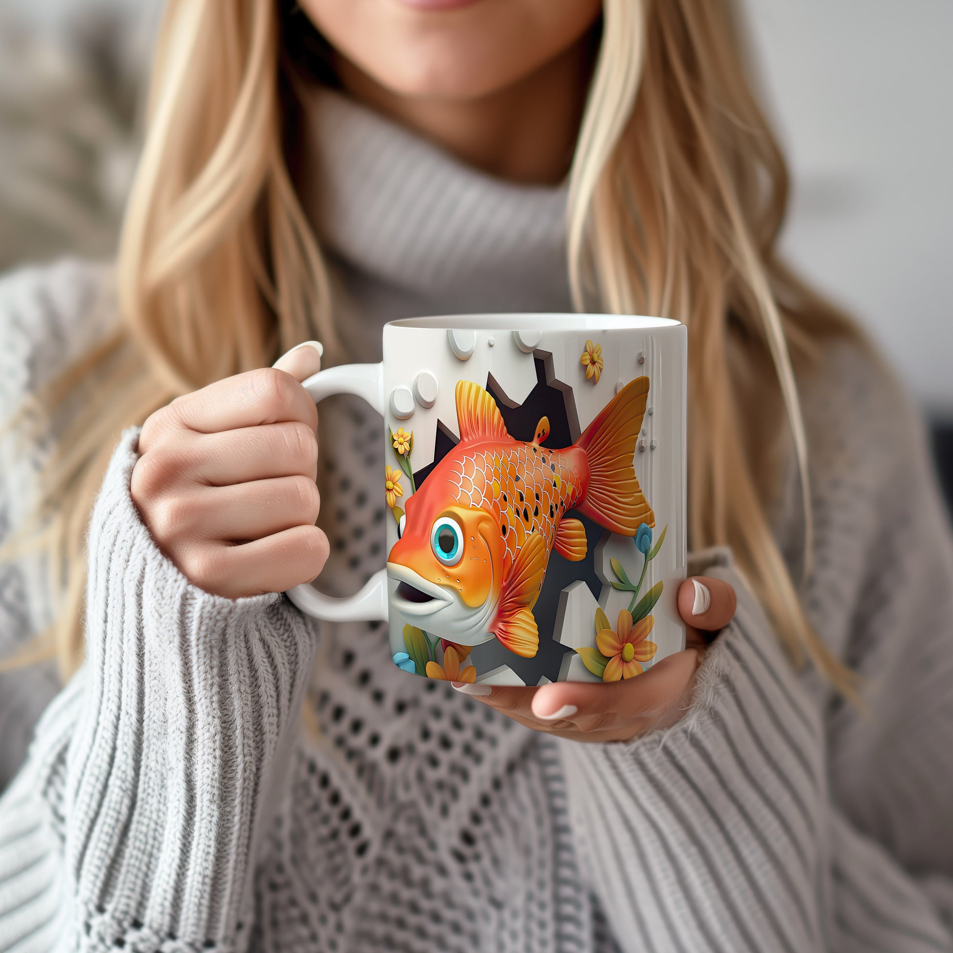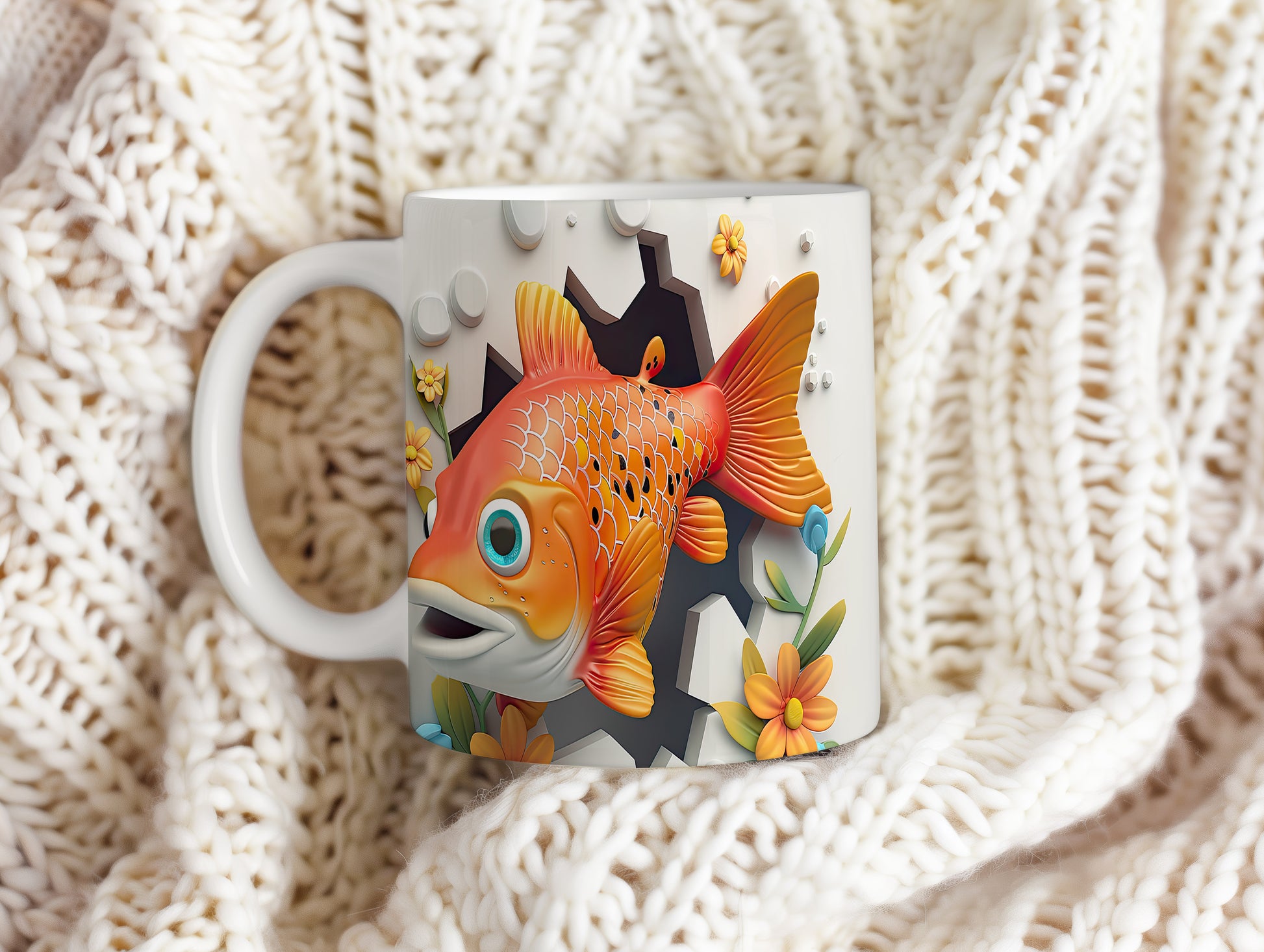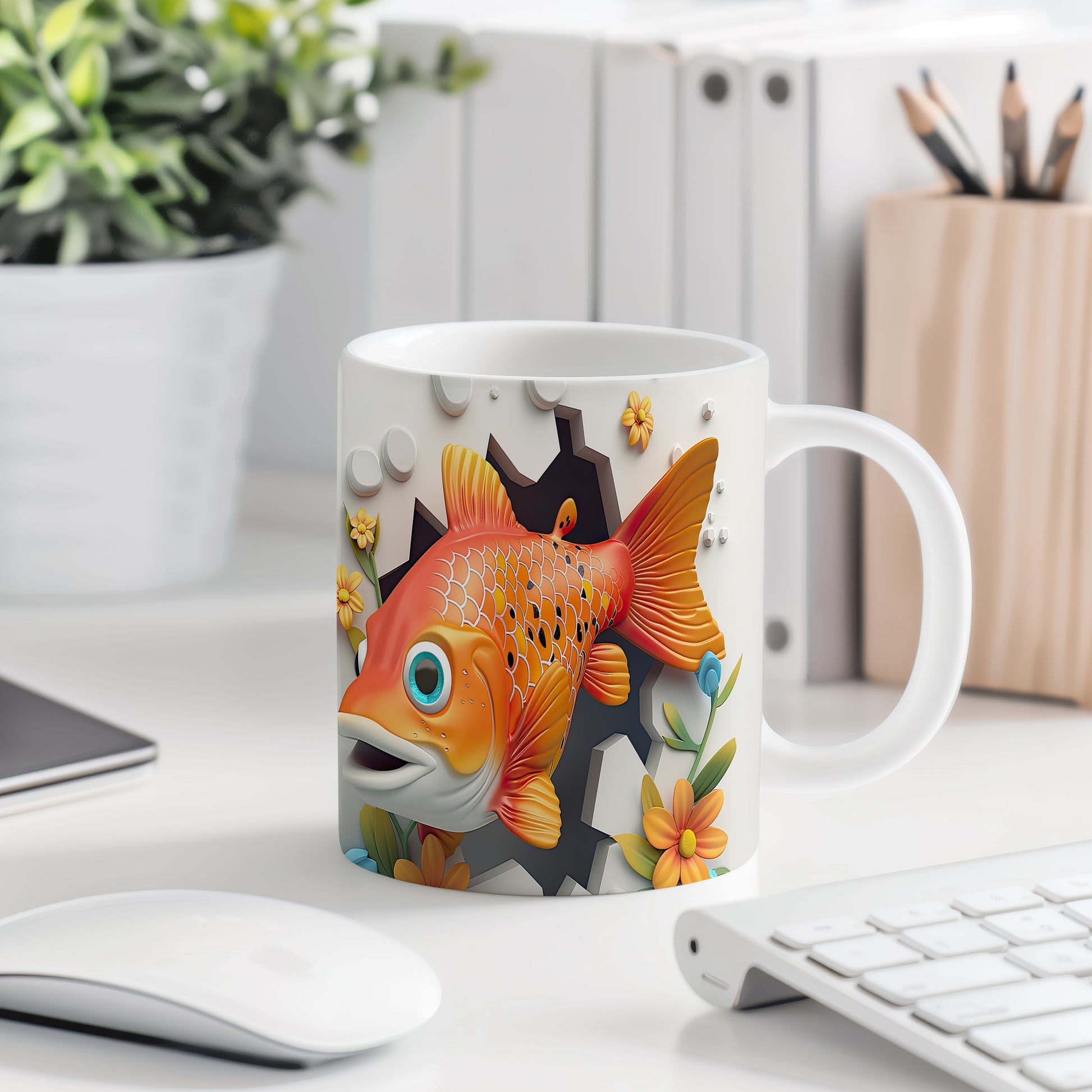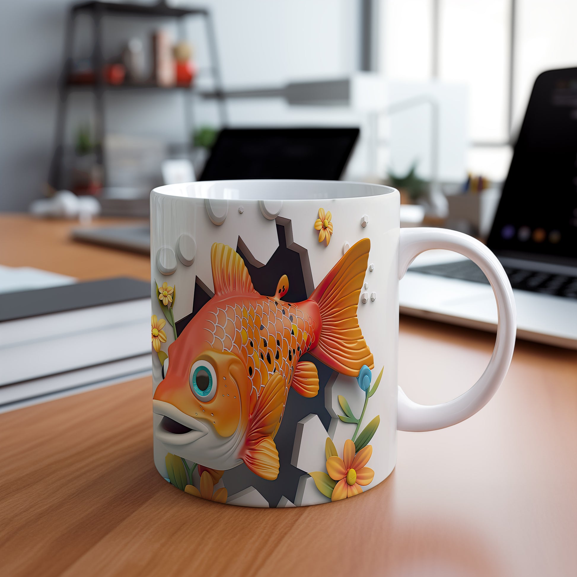 Keramický hrnek s 3D efektem zlaté rybky, která vypadá jako by vylézala z vody. Tento hrnek je ideální pro milovníky akvaristiky a přírody, skvělý tip na dárek pro každého, kdo má rád vodní svět. Materiál: keramika. Objem: 330 ml. Vhodné do myčky i mikrovlnky. Používáním tohoto hrnku si užijete nejen krásný design, ale i praktické vlastnosti.
