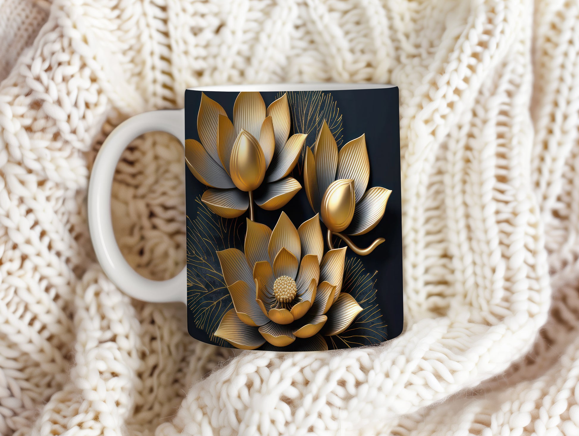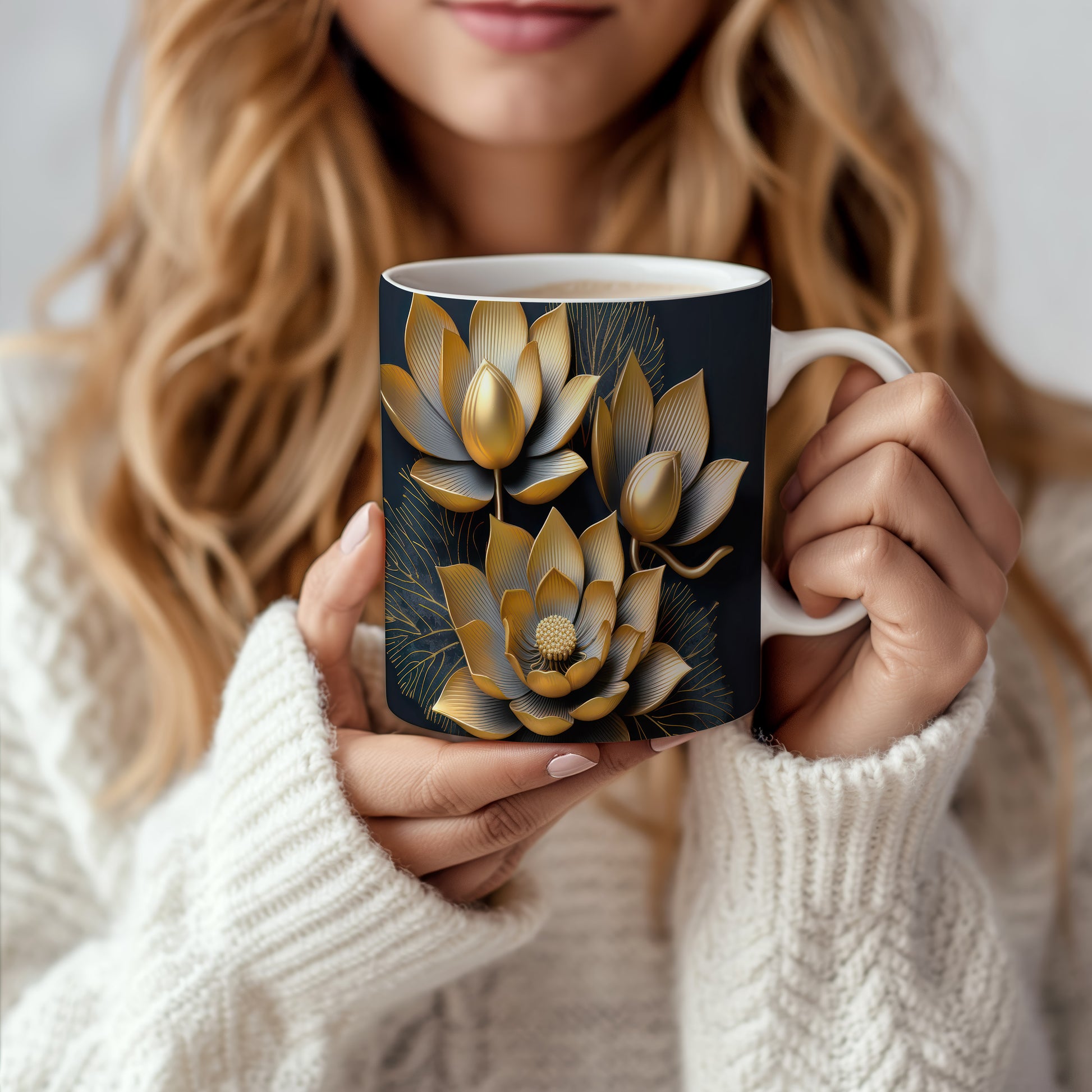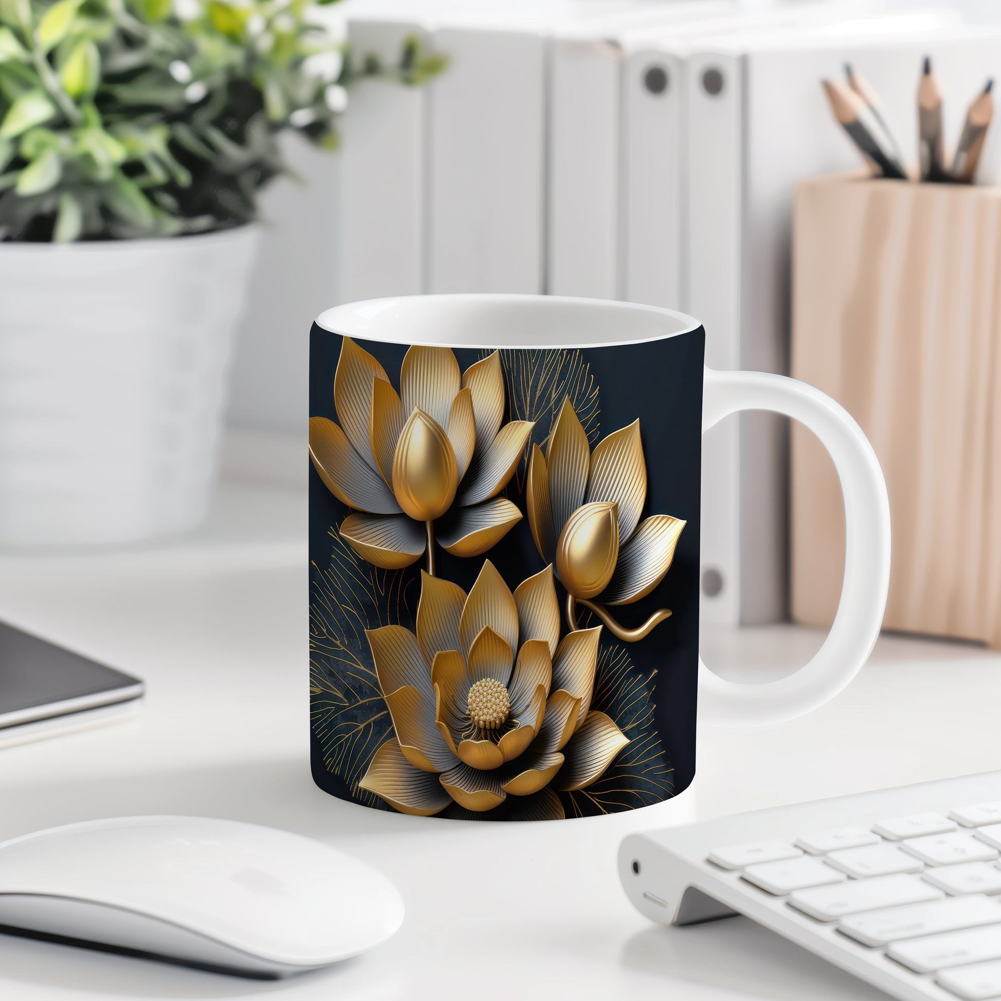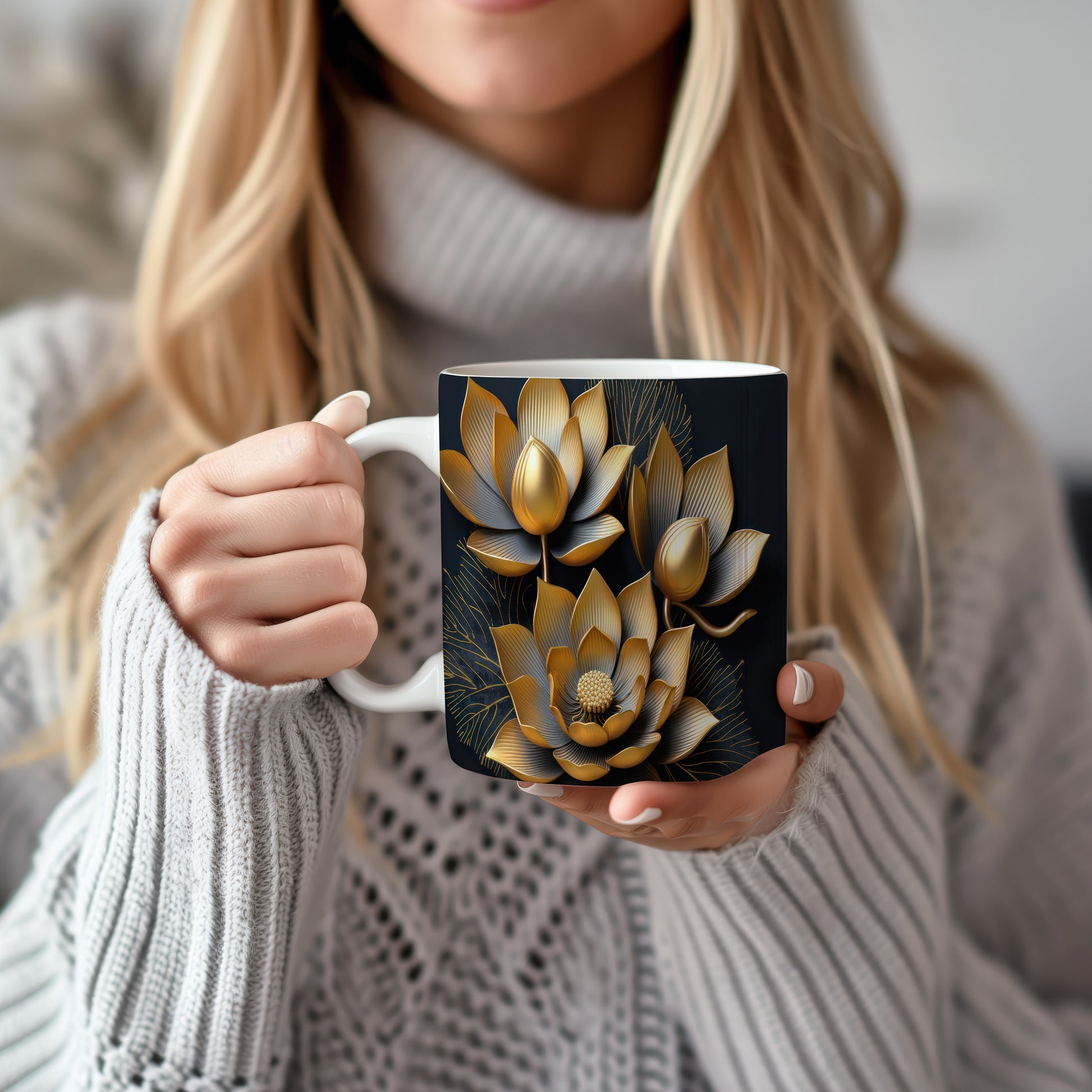 Elegantní hrnek s designem zlatého lotusu, ideální pro milovníky stylových doplňků. Skvělý tip na dárek pro přátele nebo rodinu, kteří ocení krásu a jedinečnost. Materiál: keramika. Objem: 330 ml. Vhodné do myčky i mikrovlnky. Tento hrnek přináší do každodenního pití špetku elegance a radosti.