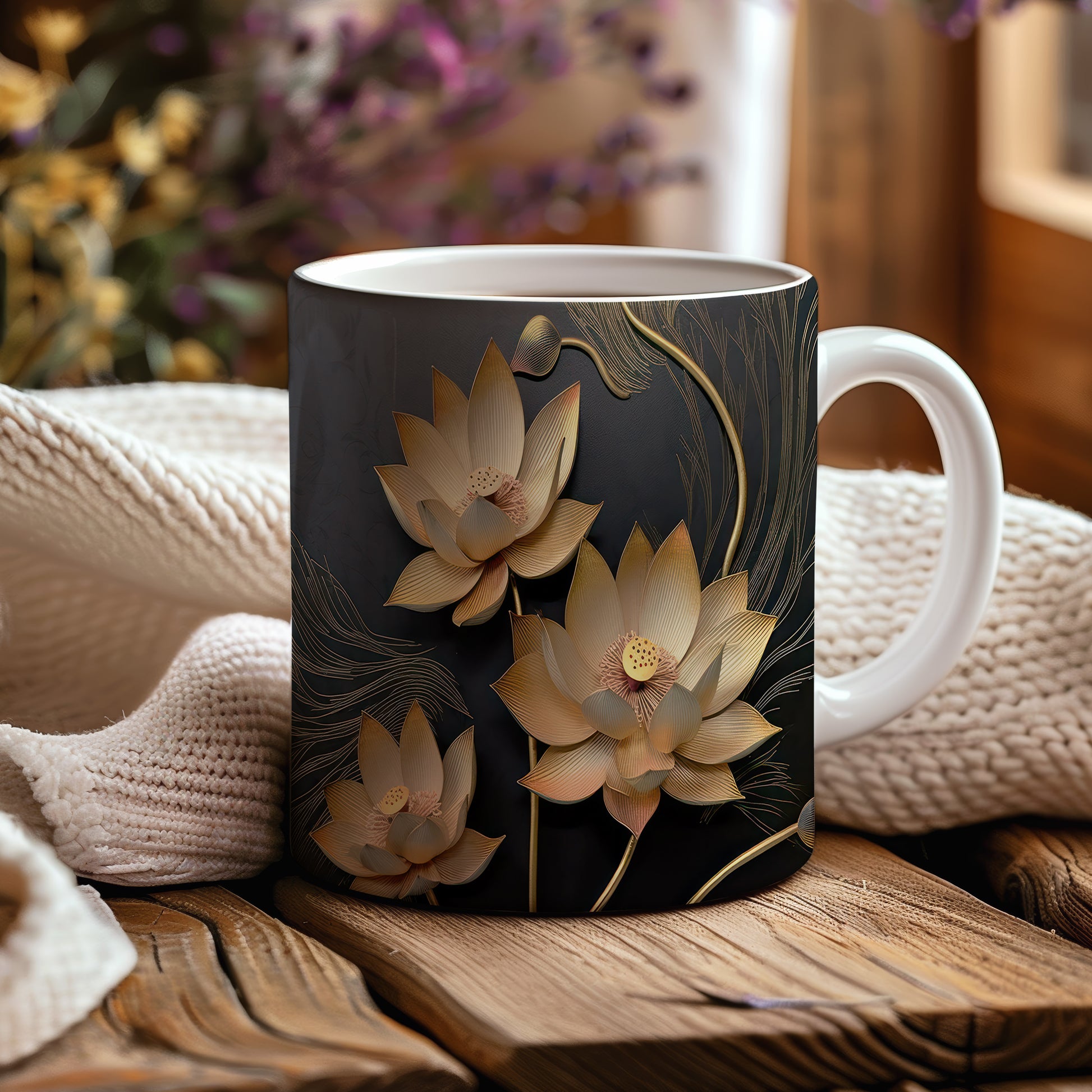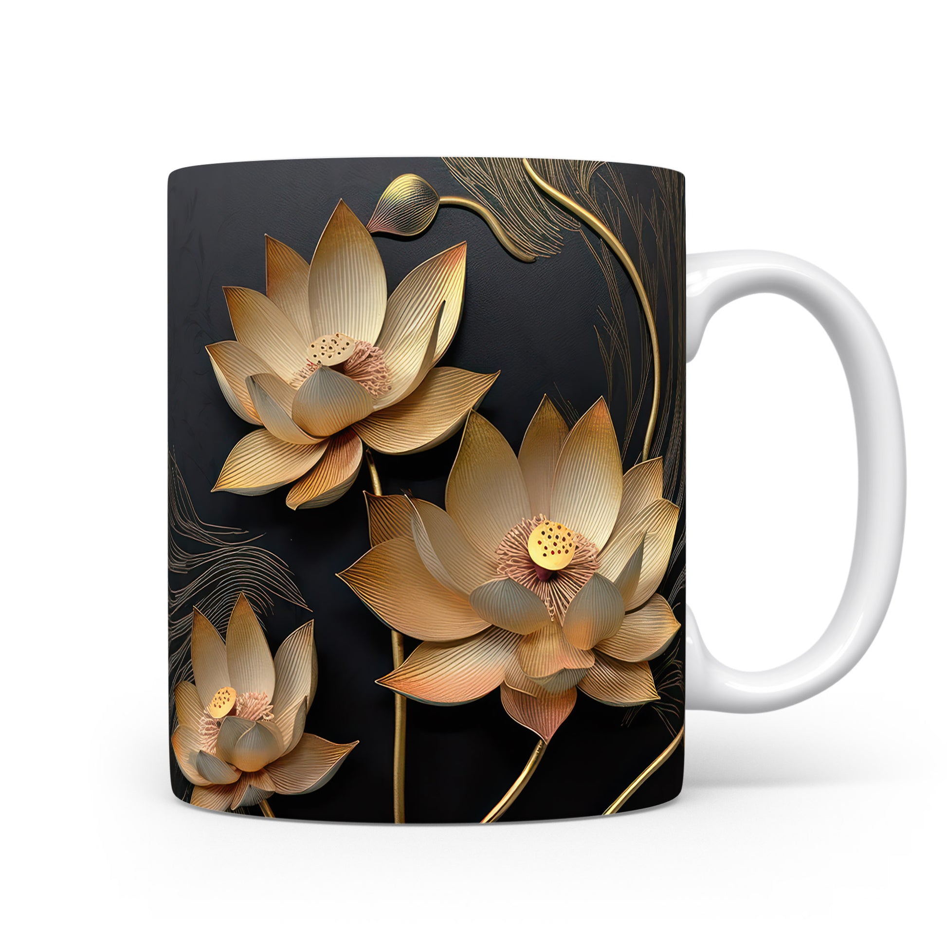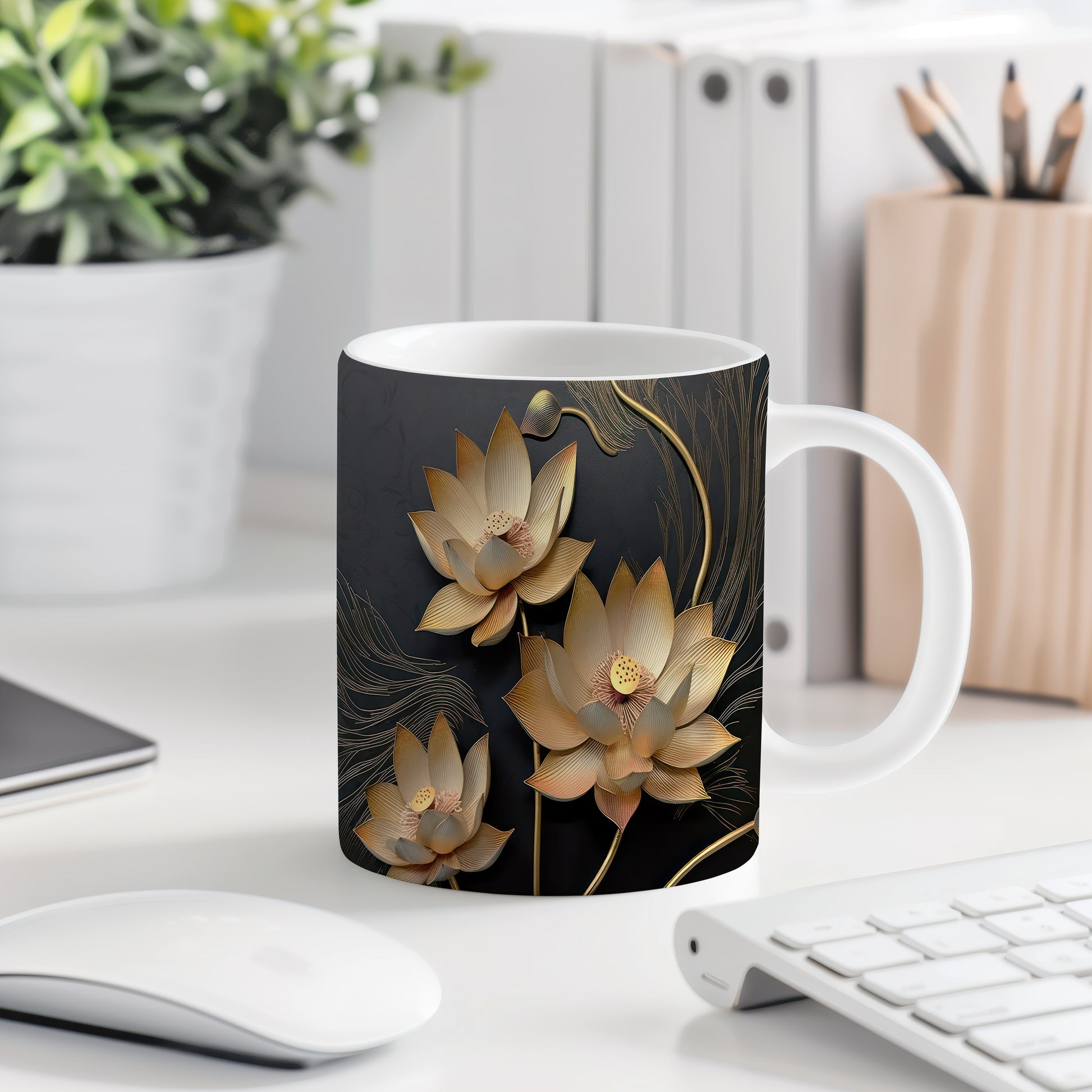 Stylový keramický hrnek s elegantními zlatými lotosovými květy. Tento hrnek je ideální pro milovníky čaje a kávy, skvěle se hodí jako dárek pro přátele nebo rodinu. Materiál: keramika. Objem: 330 ml. Vhodné do myčky i mikrovlnky. Užijte si každé sousto s tímto krásným hrnkem, který přidá šmrnc vaší domácnosti.