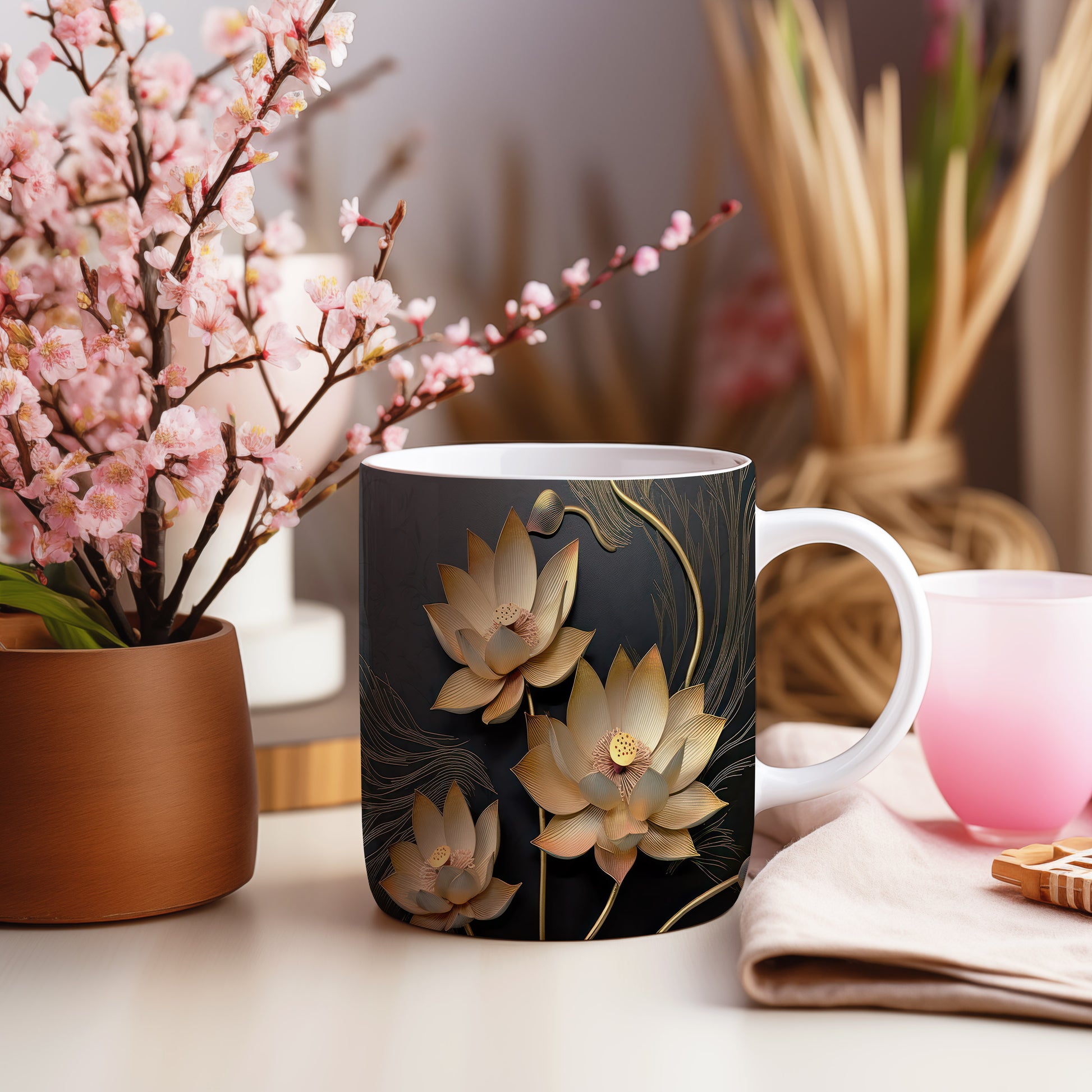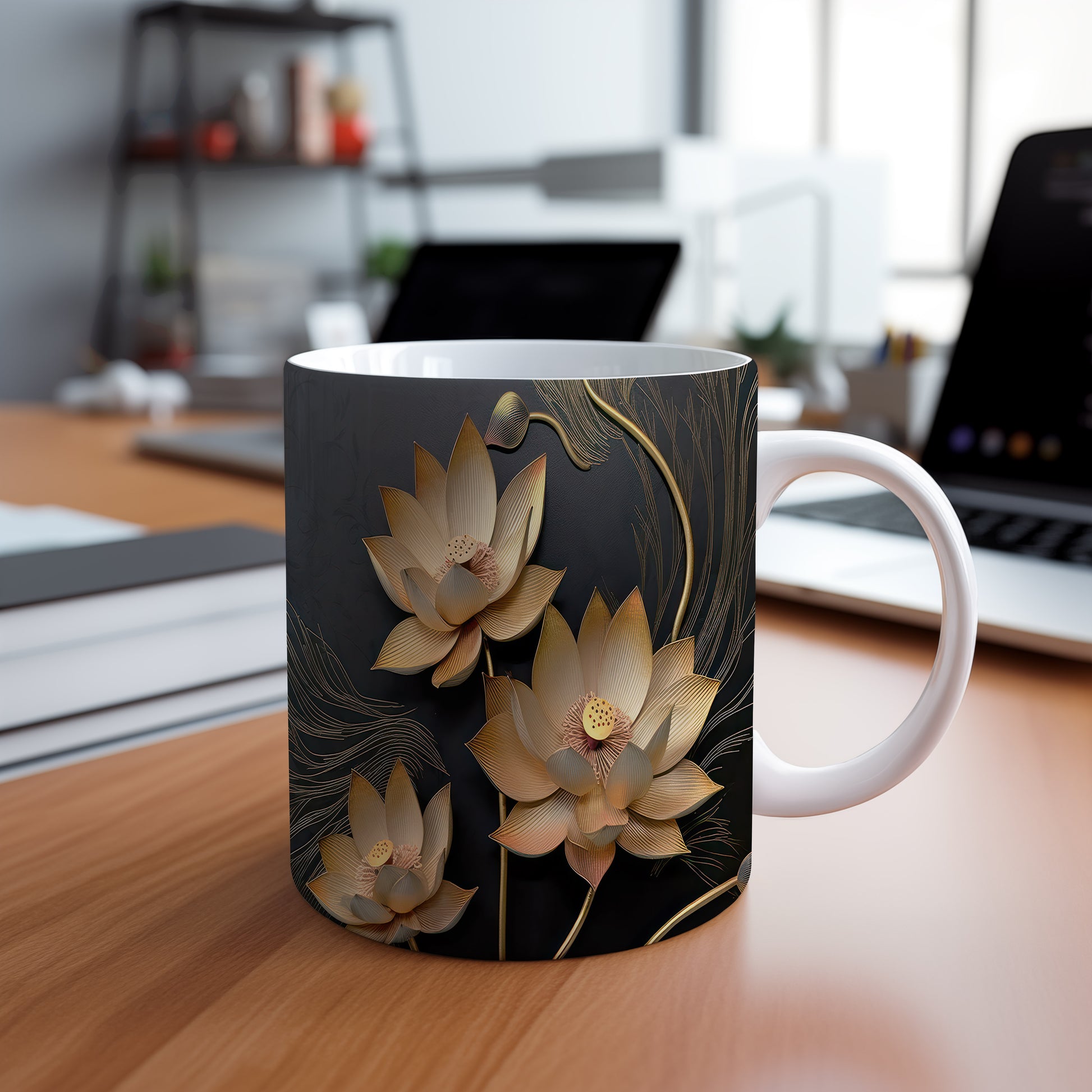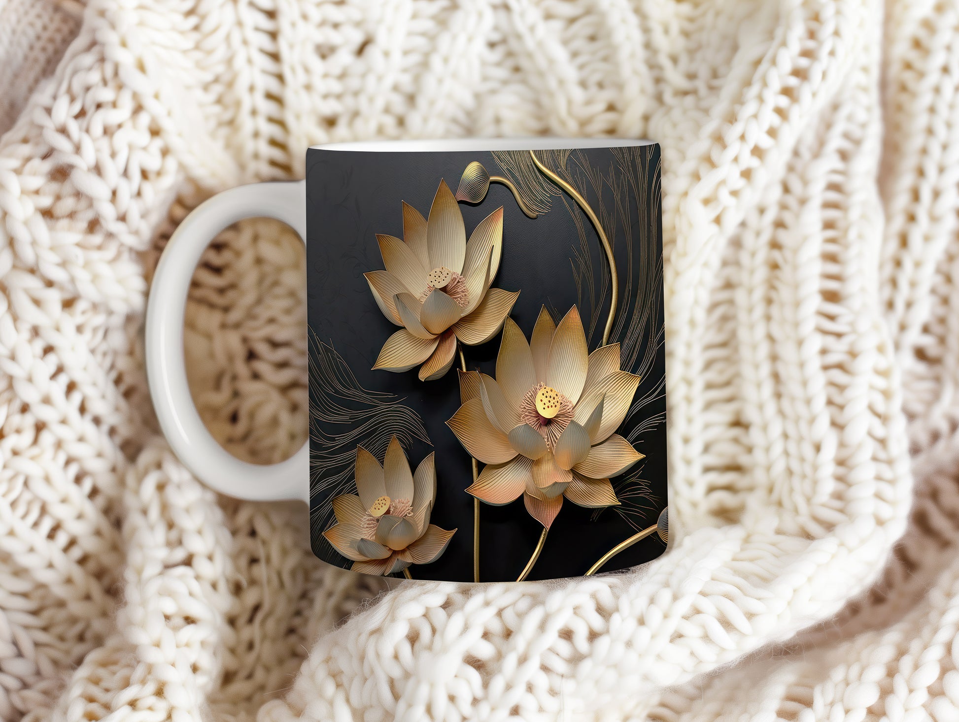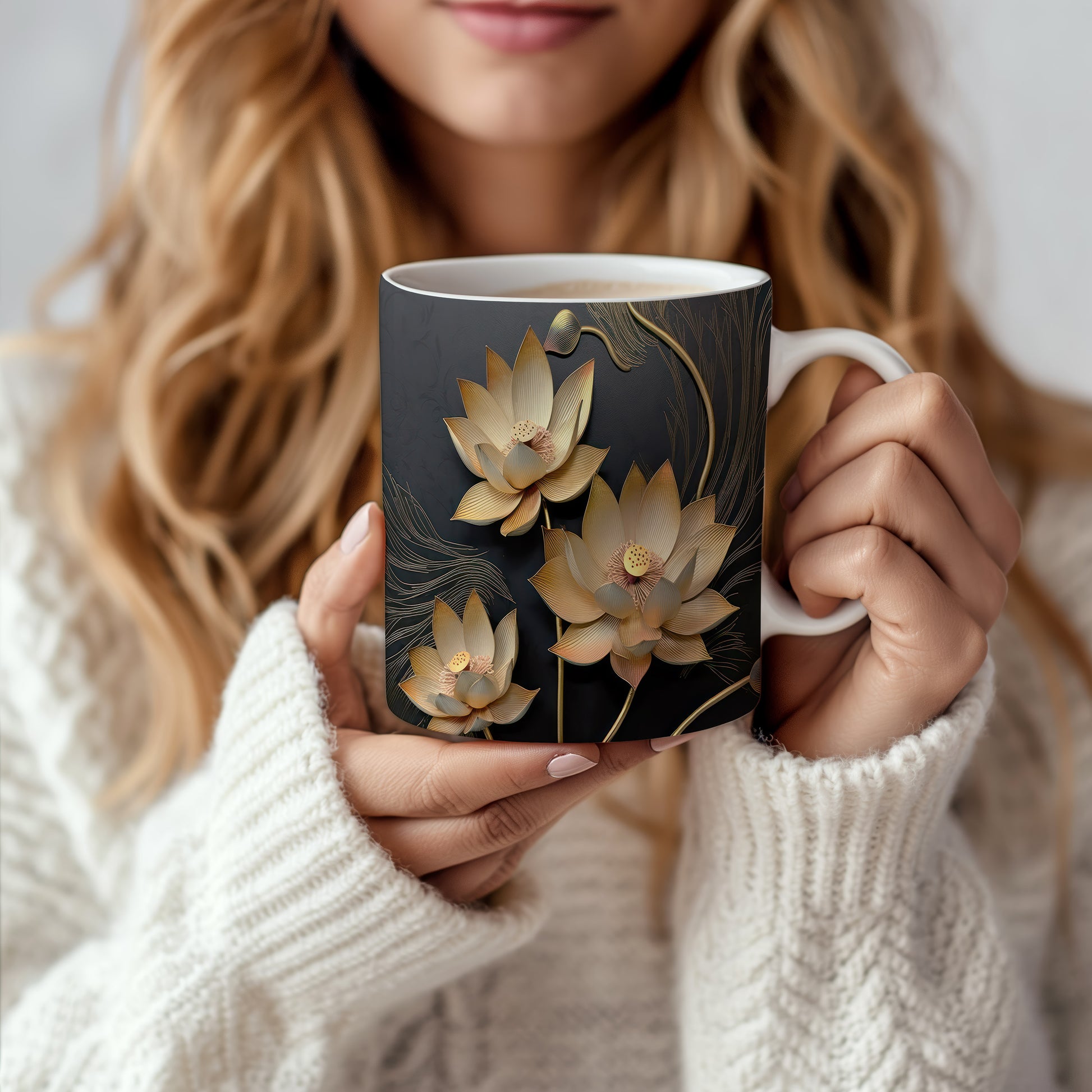 Stylový keramický hrnek s elegantními zlatými lotosovými květy. Tento hrnek je ideální pro milovníky čaje a kávy, skvěle se hodí jako dárek pro přátele nebo rodinu. Materiál: keramika. Objem: 330 ml. Vhodné do myčky i mikrovlnky. Užijte si každé sousto s tímto krásným hrnkem, který přidá šmrnc vaší domácnosti.