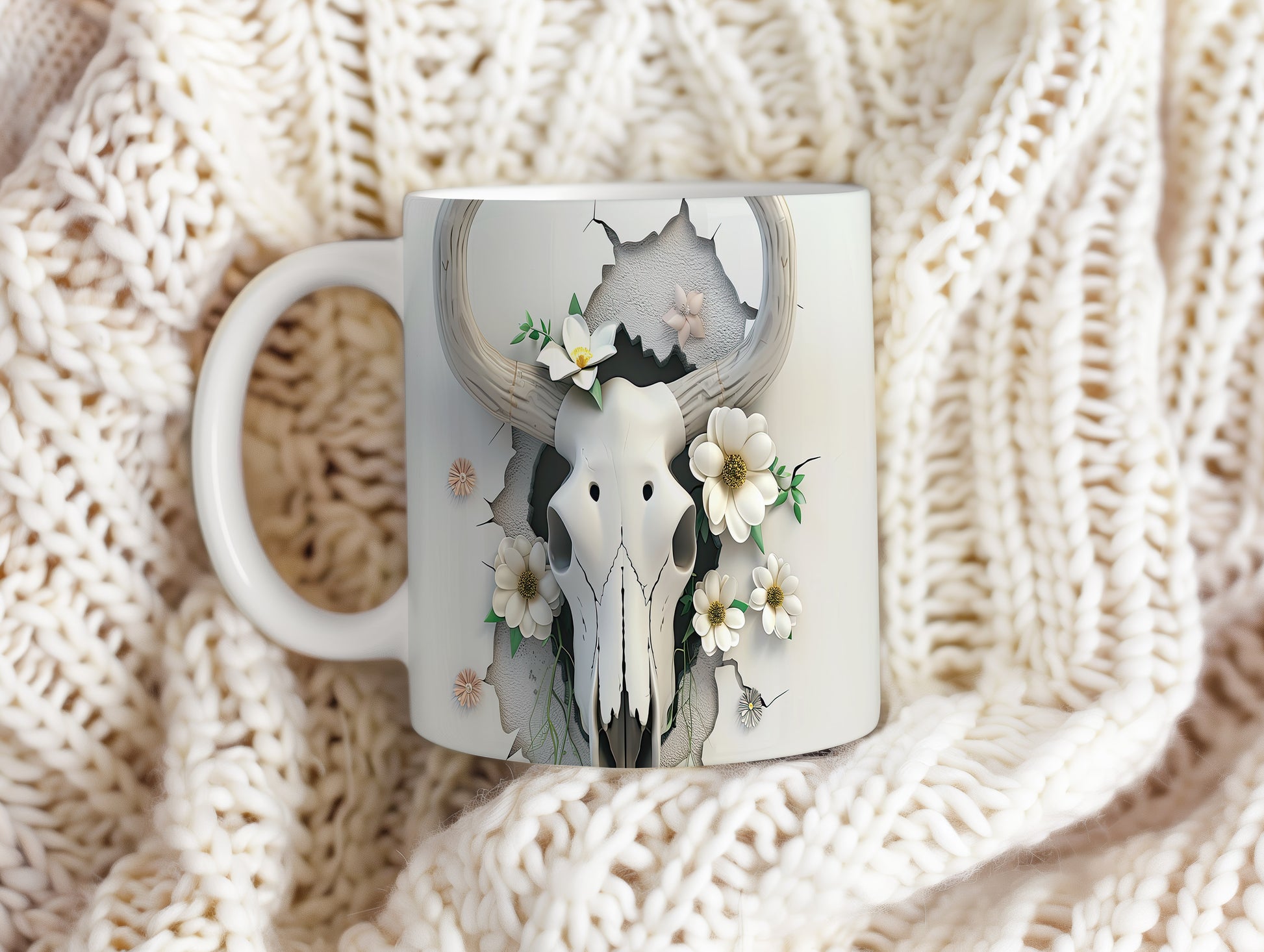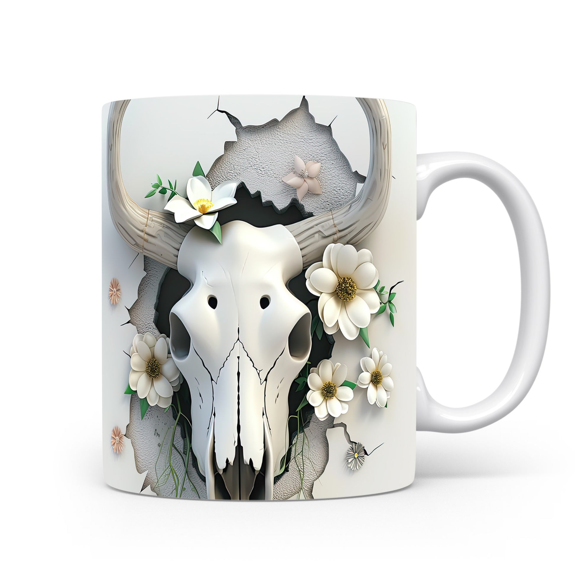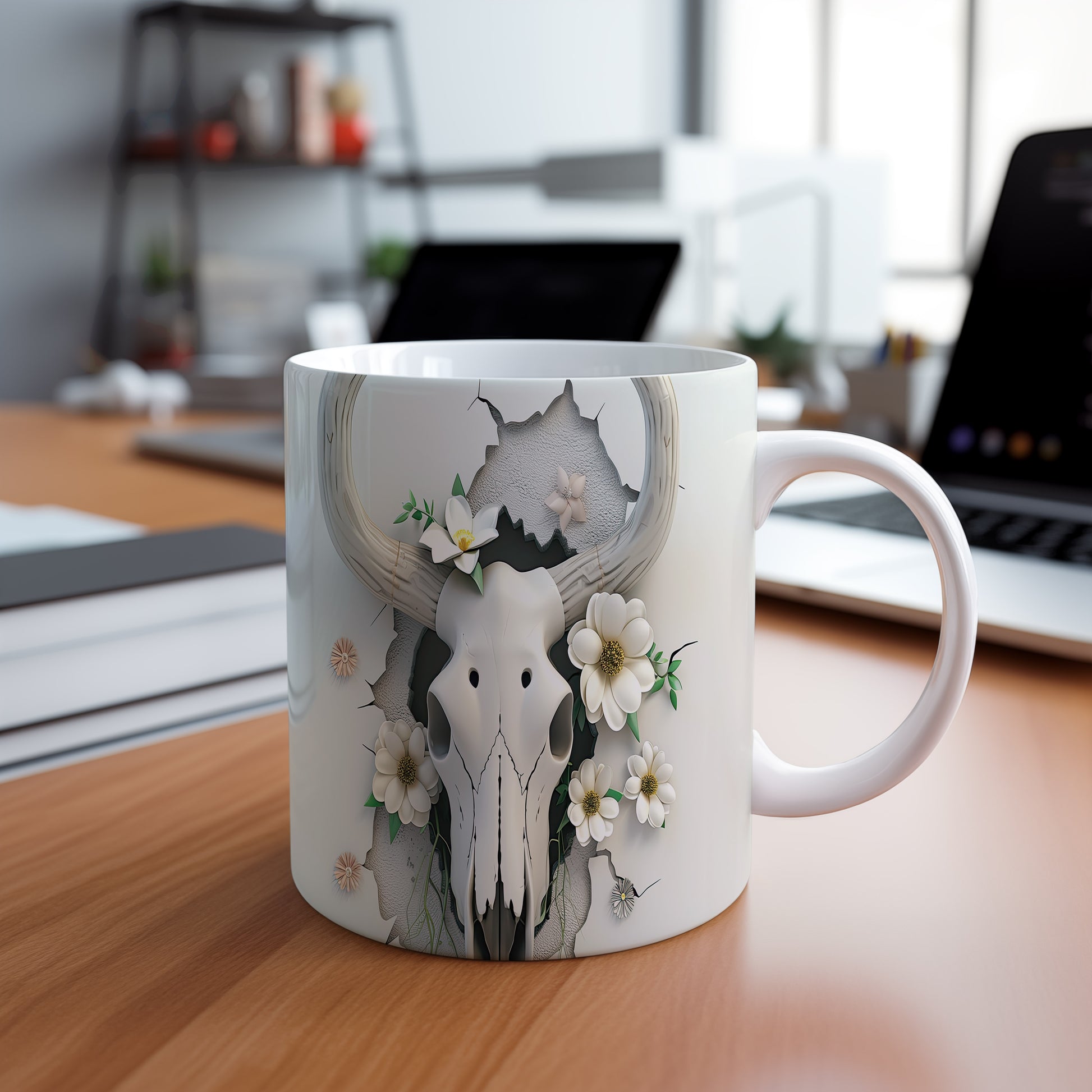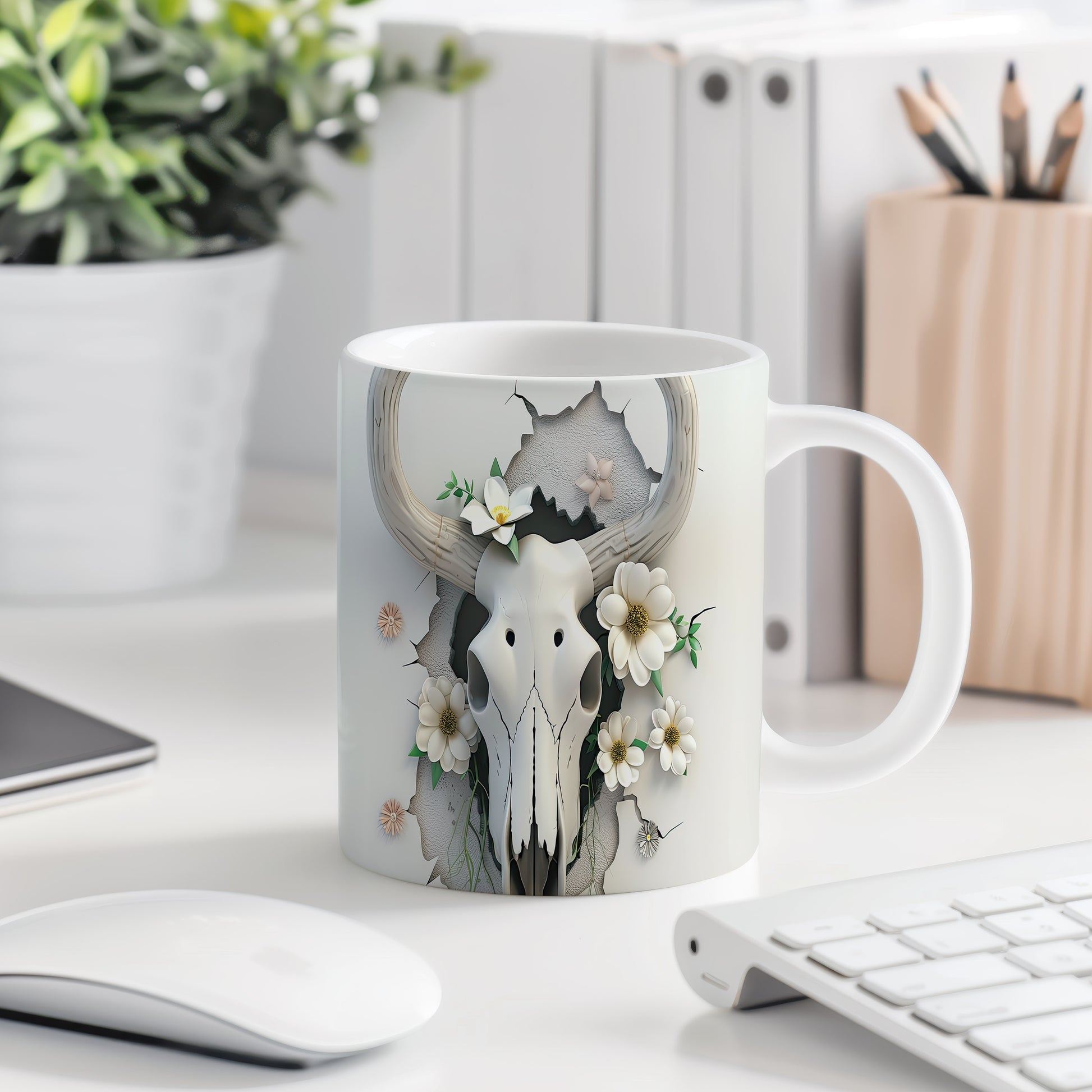 Hrnek s motivem zvířecí lebky a květin je originální designový kousek, který potěší milovníky přírody a jedinečných předmětů. Tento hrnek je ideálním dárkem pro přátele nebo rodinu, kteří ocení netradiční styl. Materiál: keramika. Objem: 330 ml. Vhodné do myčky i mikrovlnky. Používání tohoto hrnku dodá vašim nápojům osobitý šarm.