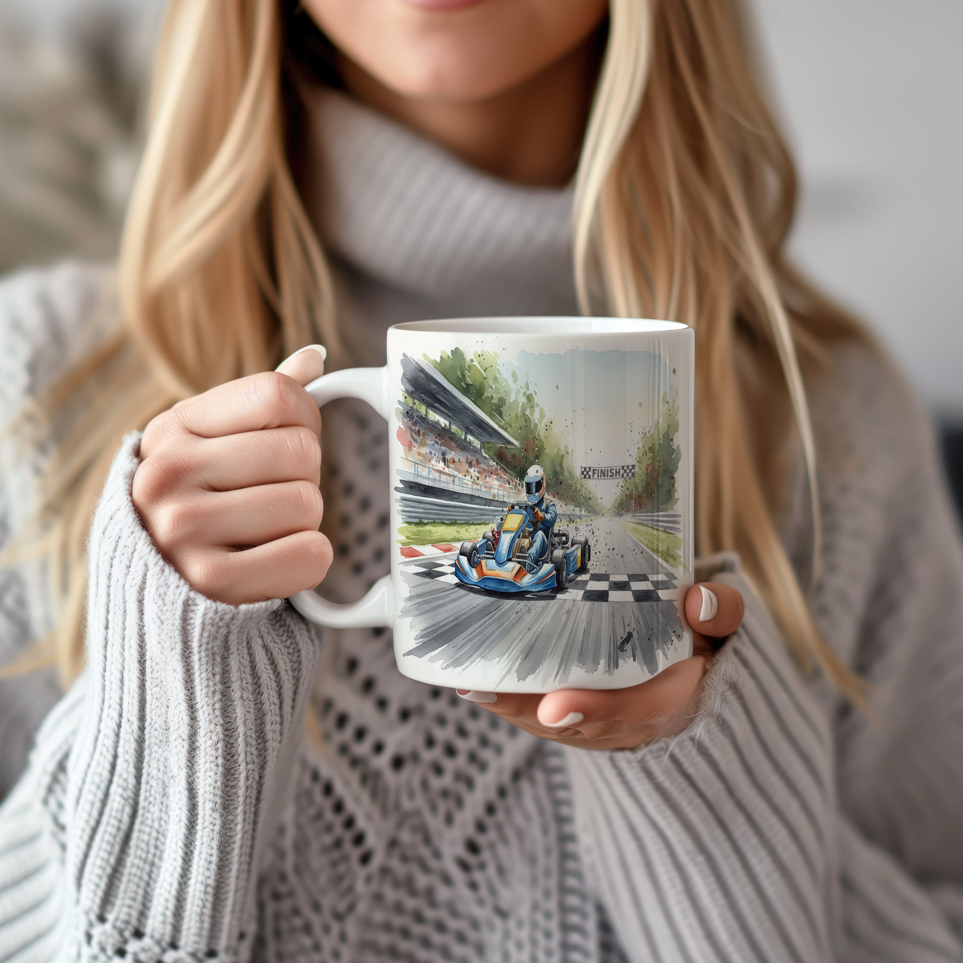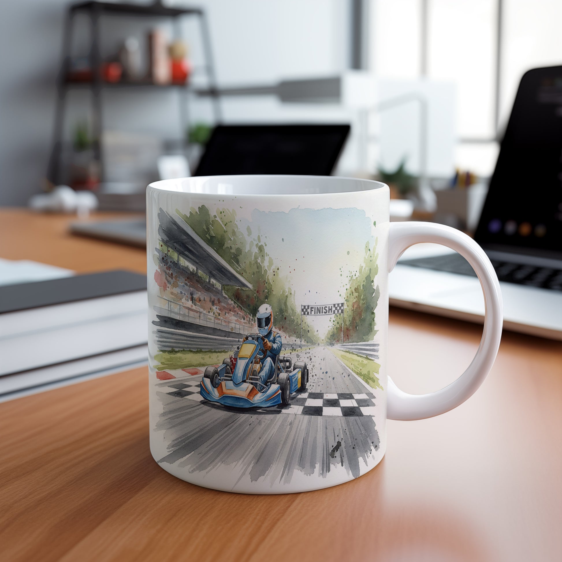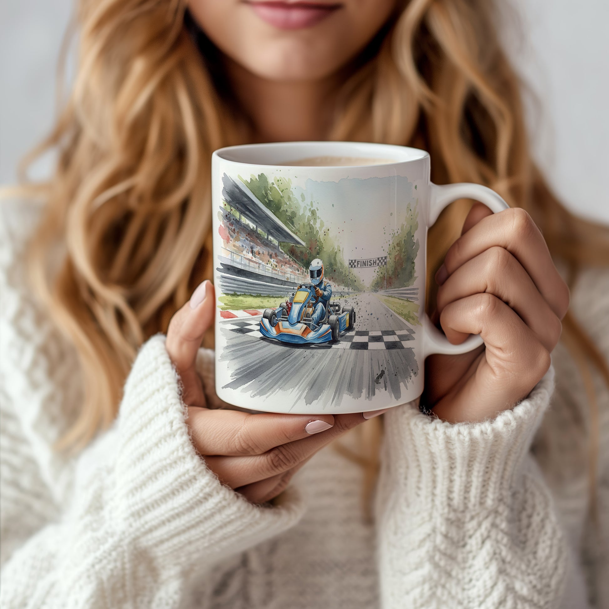 Nádherný hrnek s akvarelovým motivem motokáry na závodní dráze. Ideální pro milovníky rychlosti. Hrnek 330 ml – vhodný do myčky i mikrovlnky.