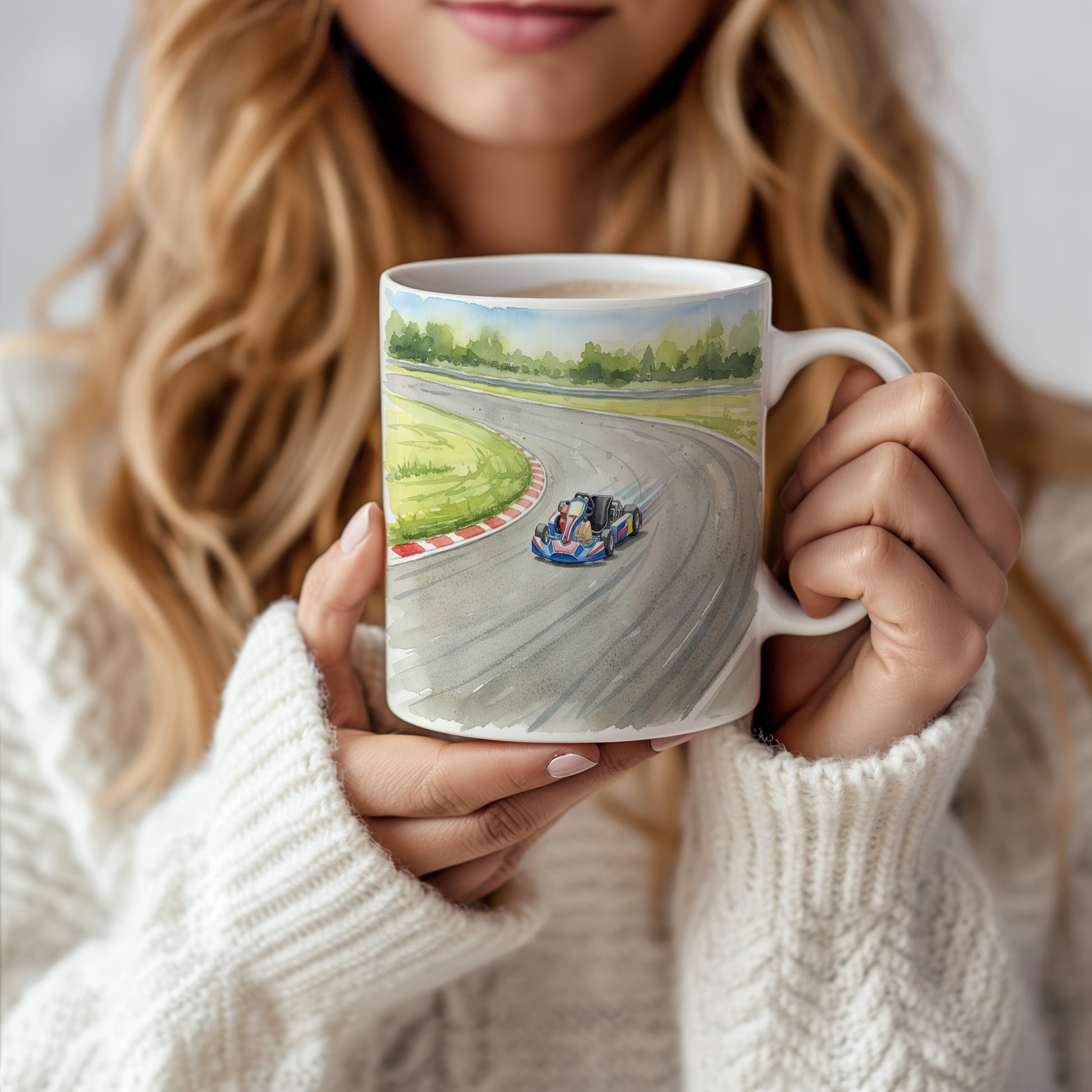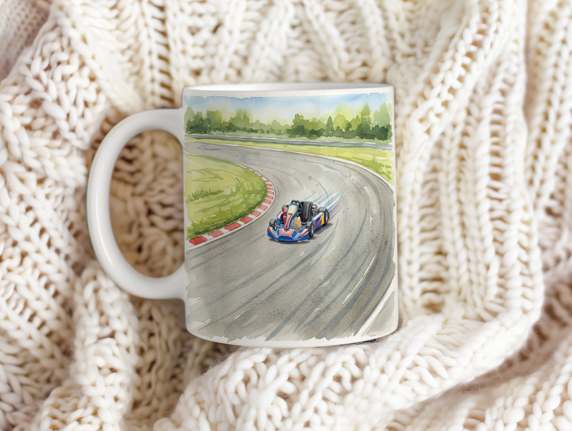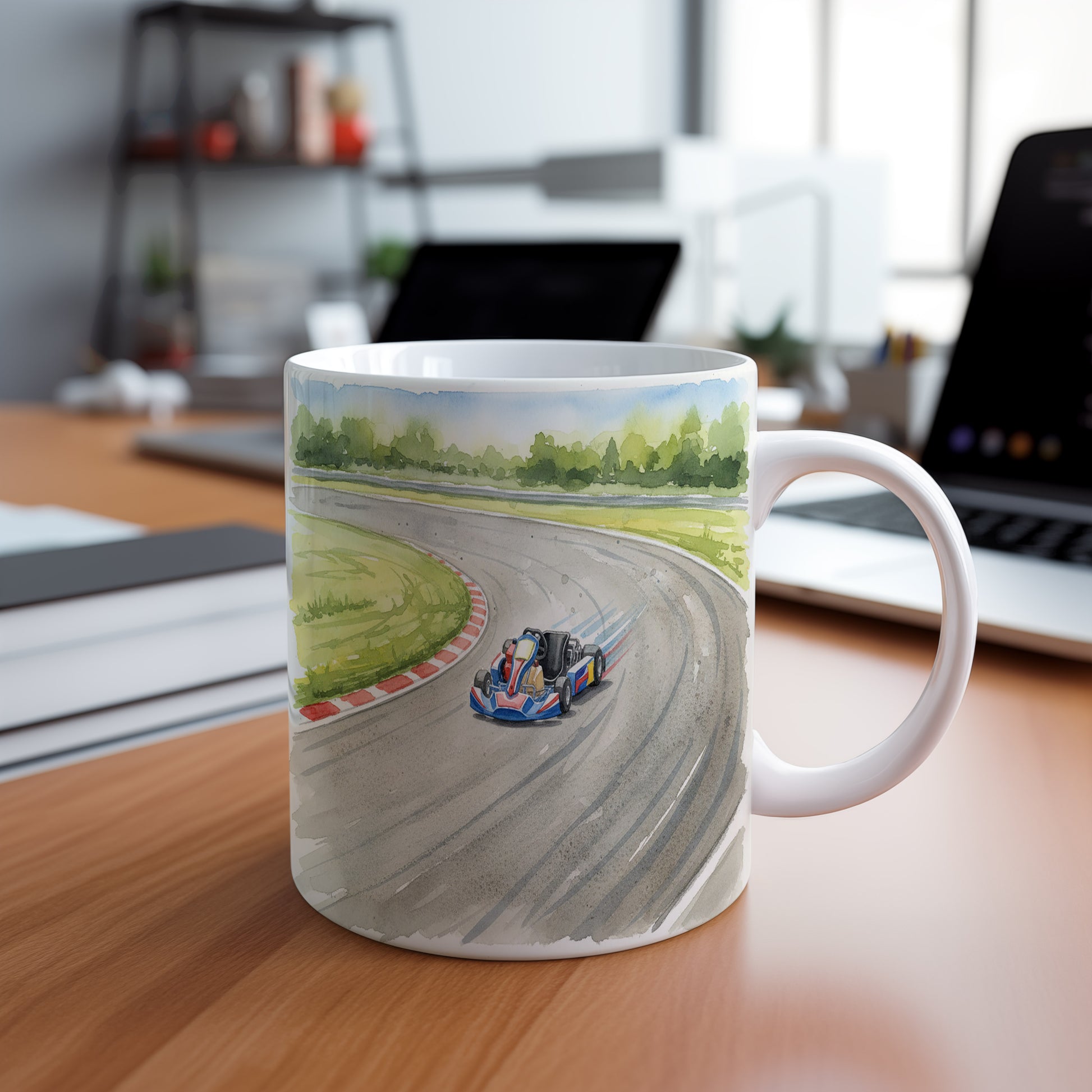 Užijte si závodní adrenalin s hrnkem, na kterém se motokára řítí po okruhu. Jemný akvarelový motiv přináší dynamiku a rychlost do každého doušku. Hrnek 330 ml – vhodný do myčky i mikrovlnky.