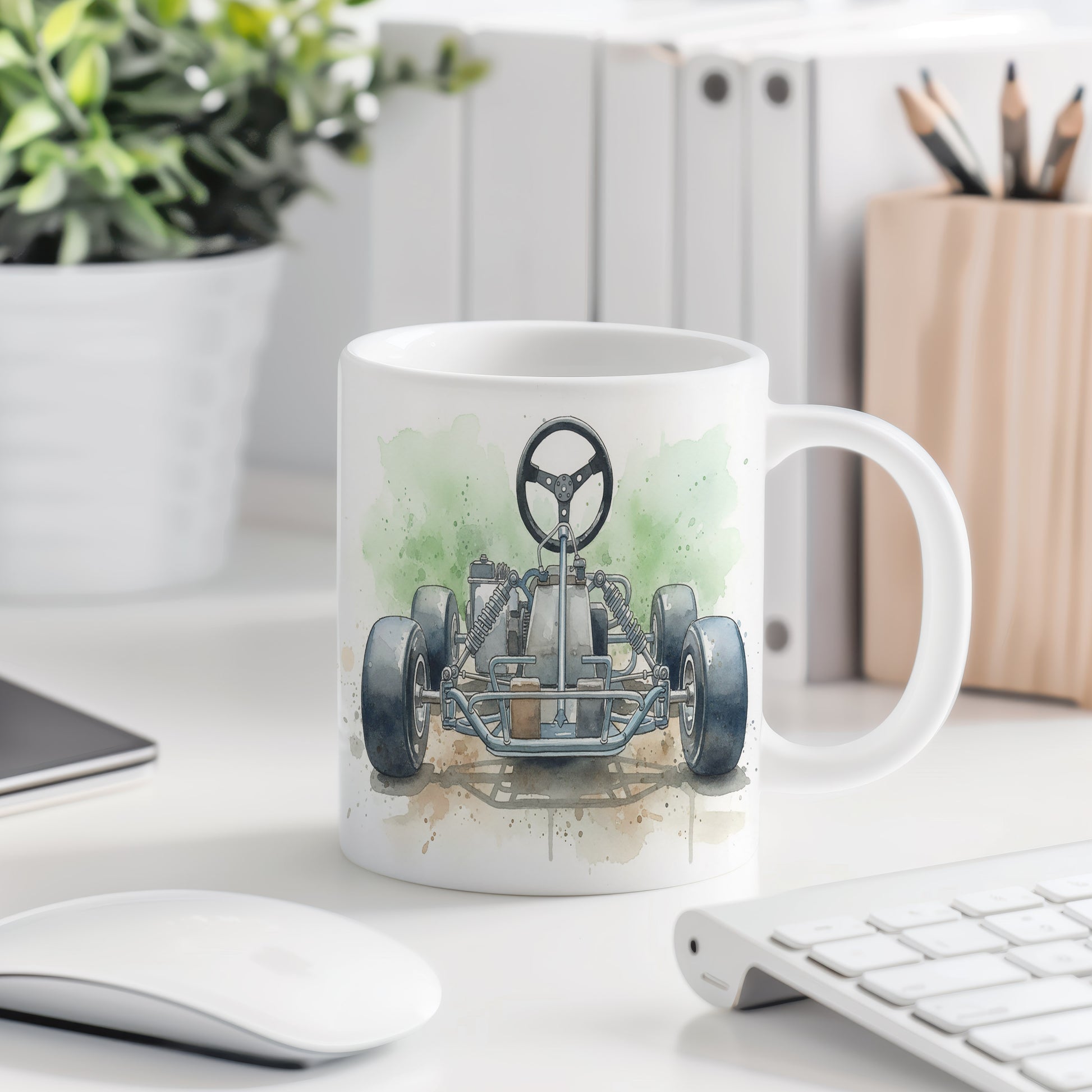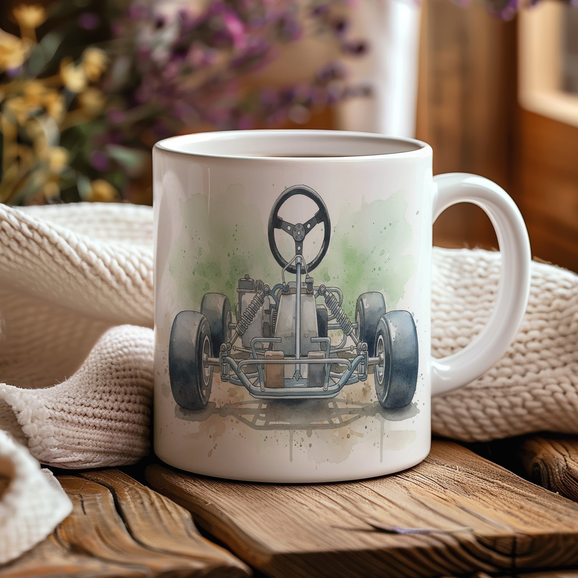 Zažijte vzrušení závodní dráhy s tímto hrnkem zdobeným akvarelovým motivem motokáry. Hrnek 330 ml – vhodný do myčky i mikrovlnky.