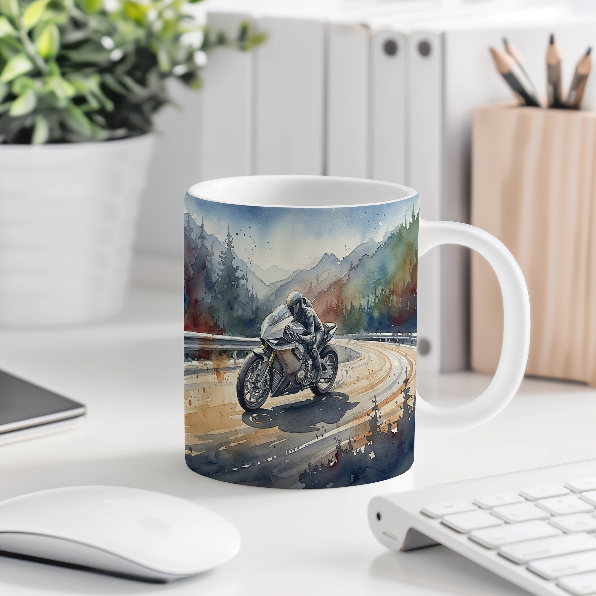Elegantní hrnek s akvarelovým motivem motorkáře projíždějícího horskými zatáčkami. Hrnek 330 ml – vhodný do myčky i mikrovlnky.