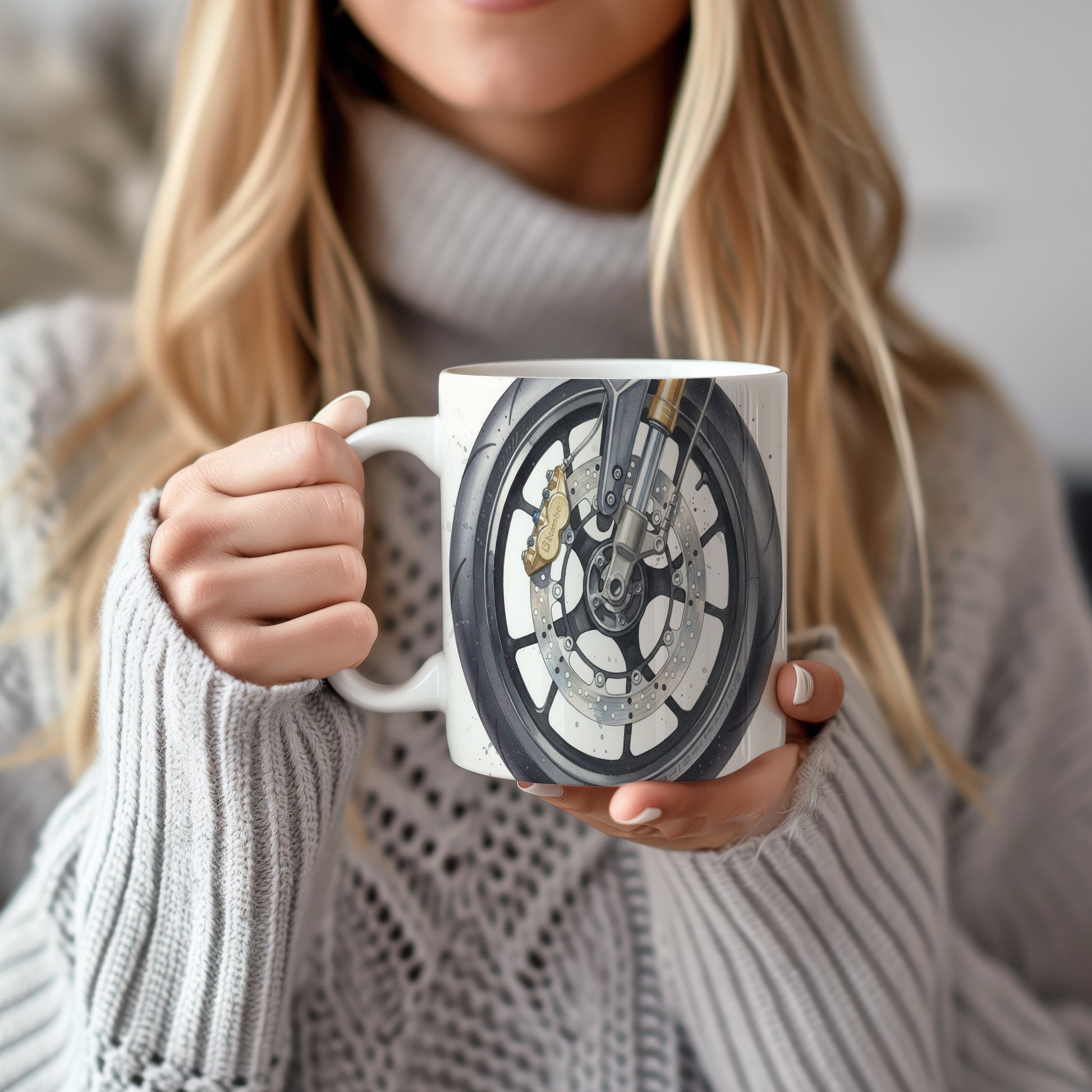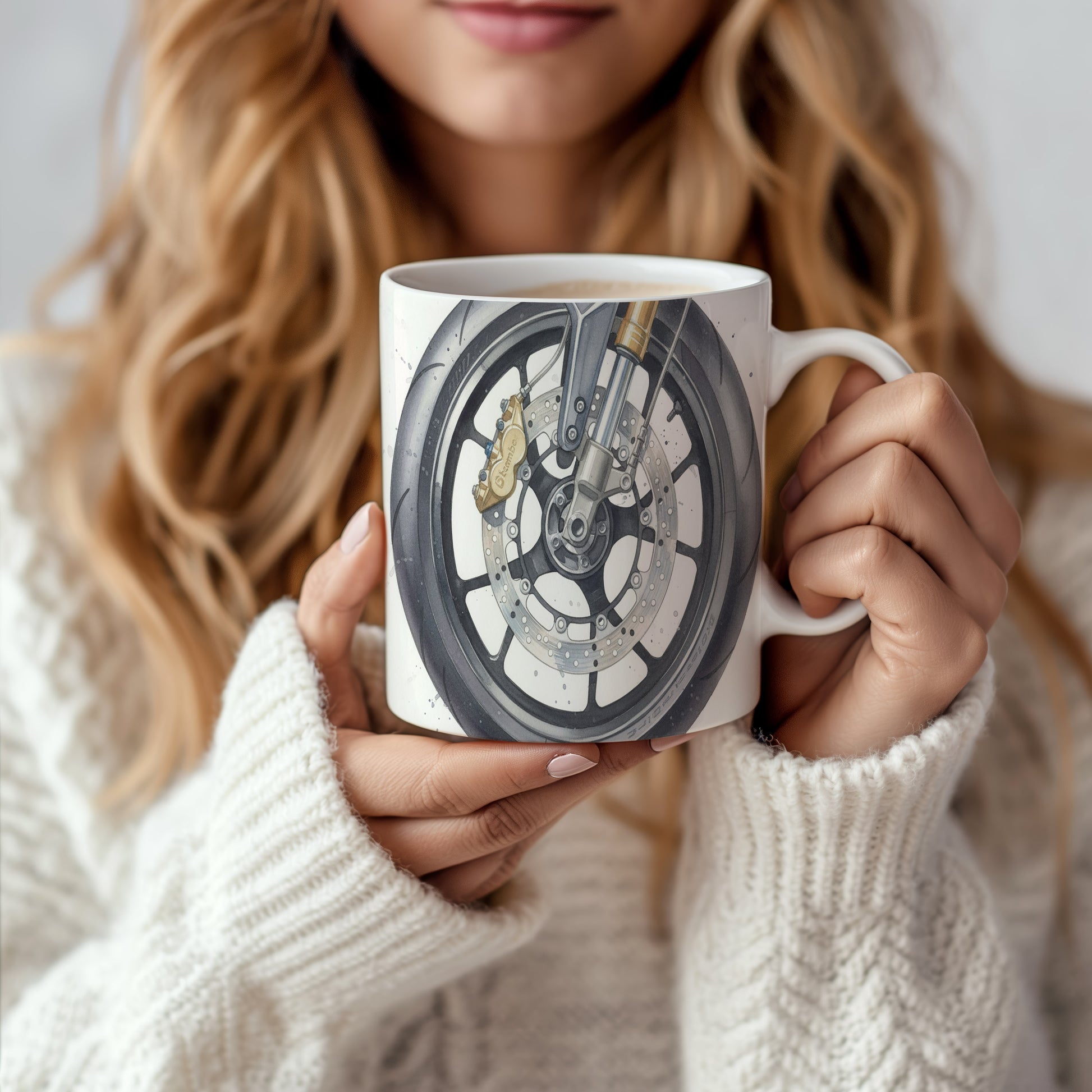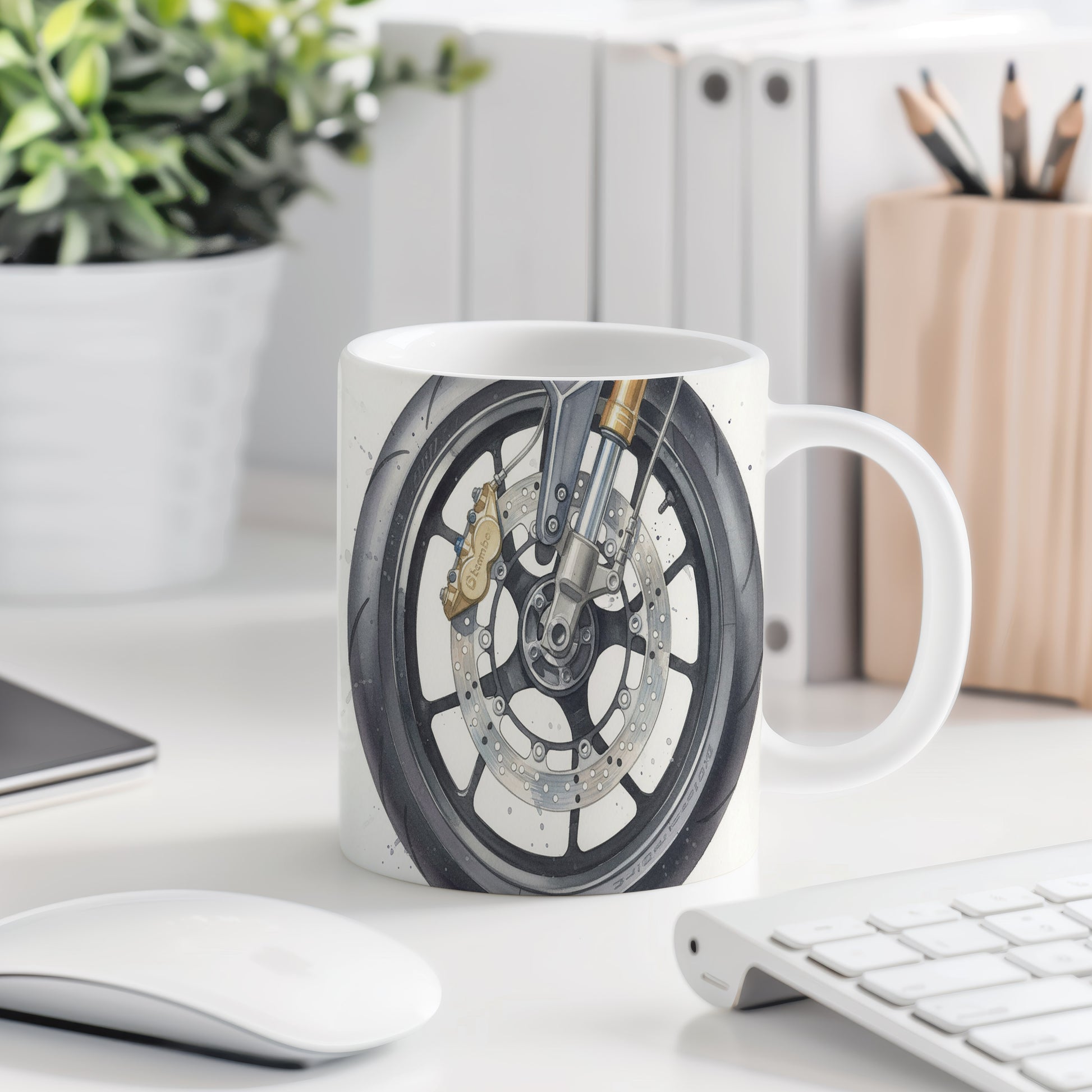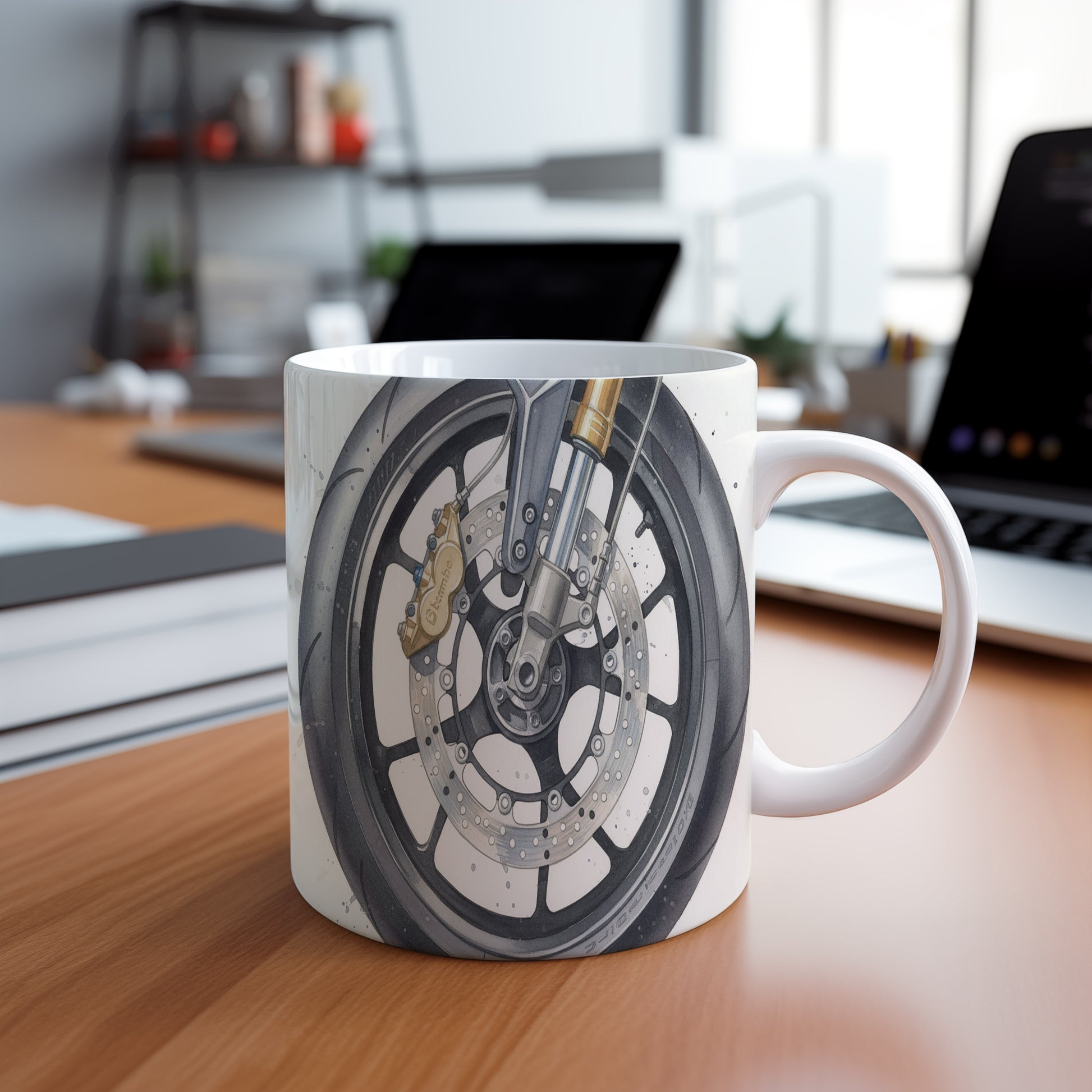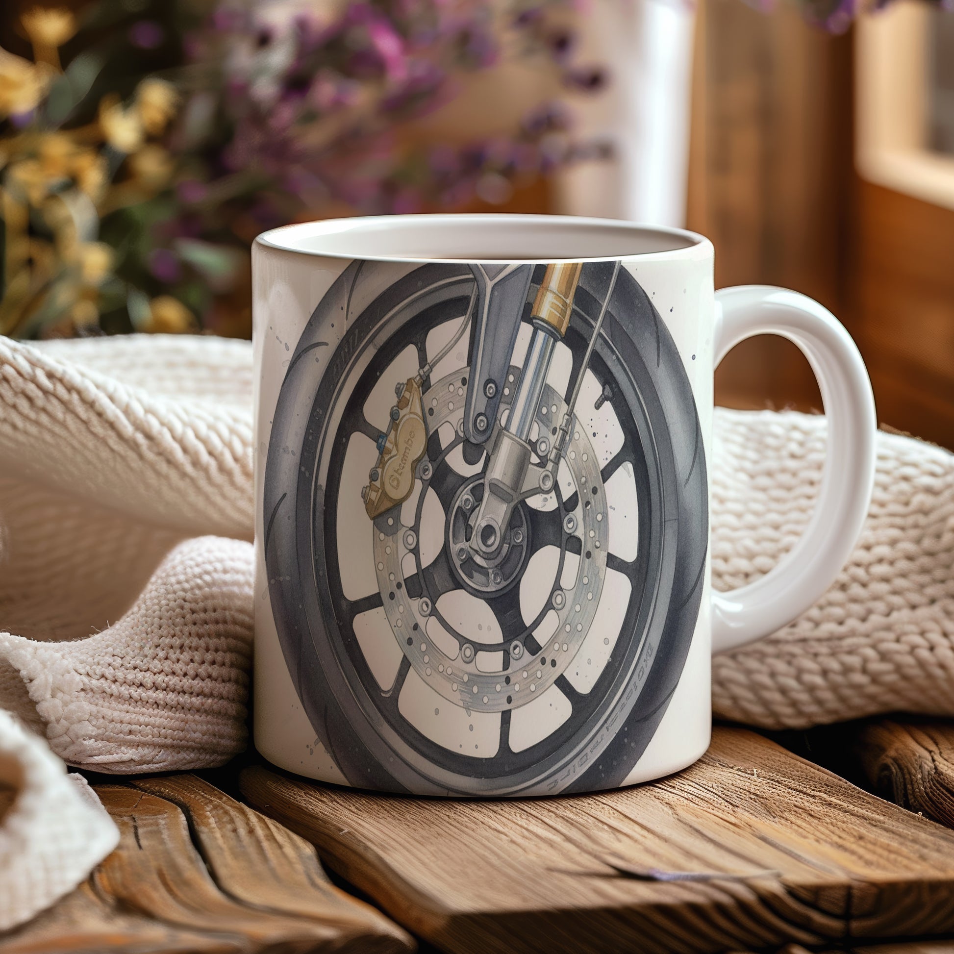 Objevte akvarelový motiv detailu motocyklu na silnici, který vyniká jemností a precizností. Hrnek 330 ml – vhodný do myčky i mikrovlnky.
