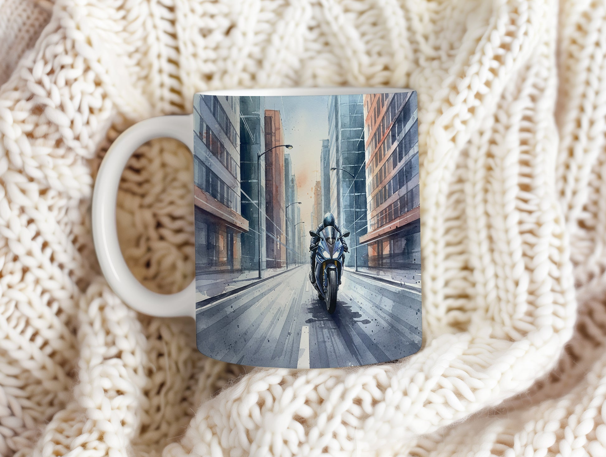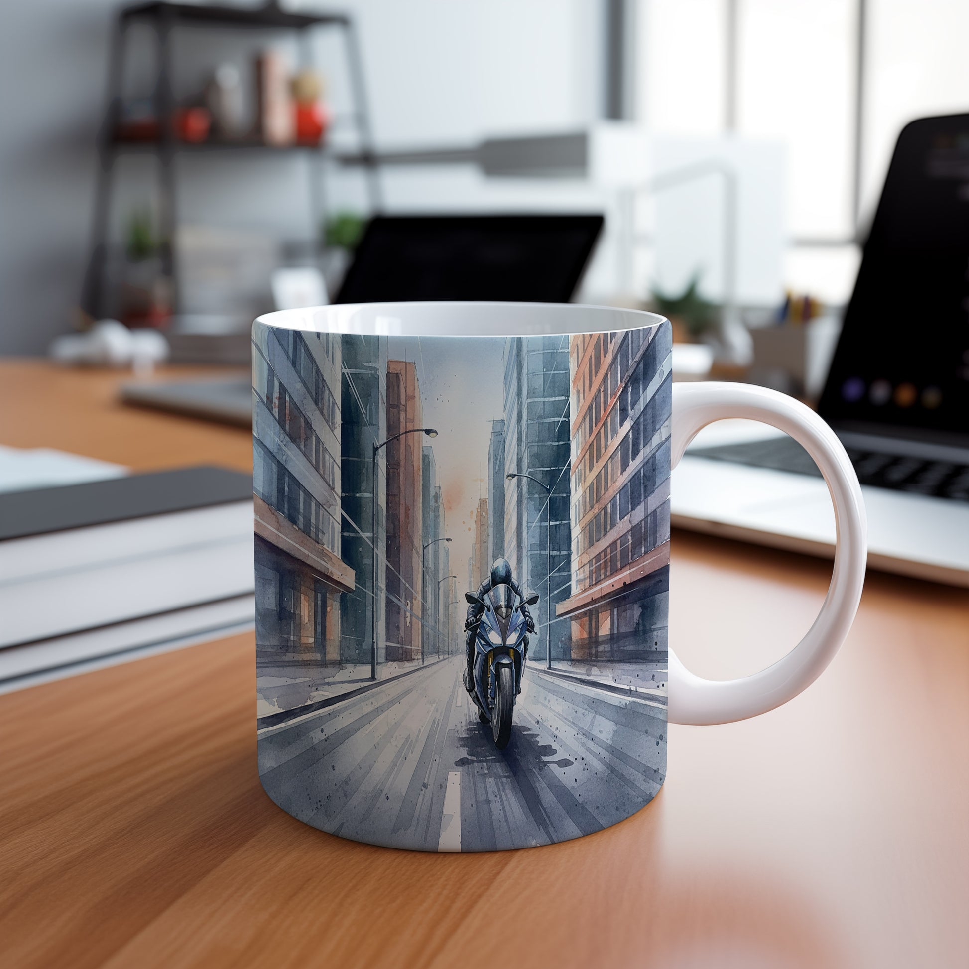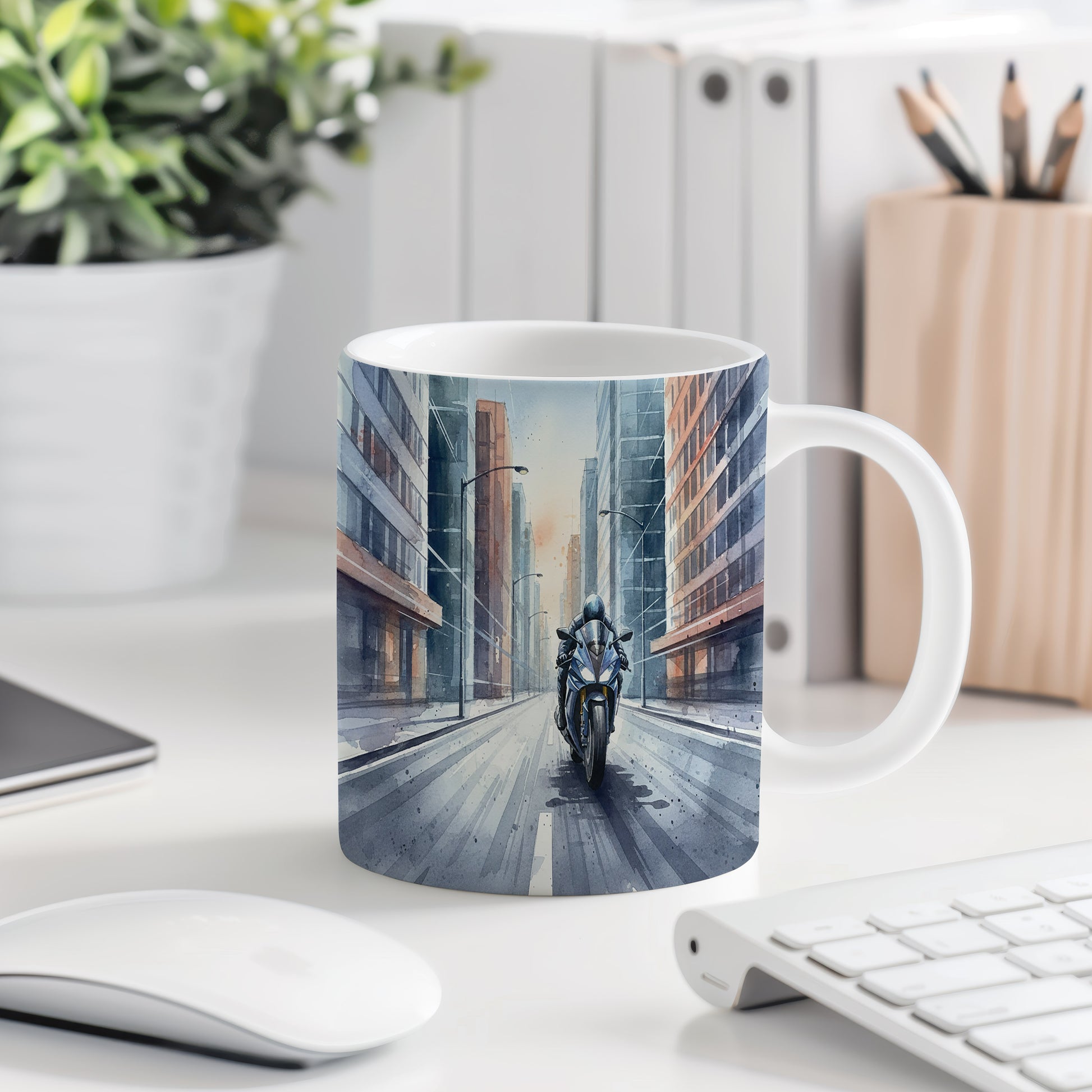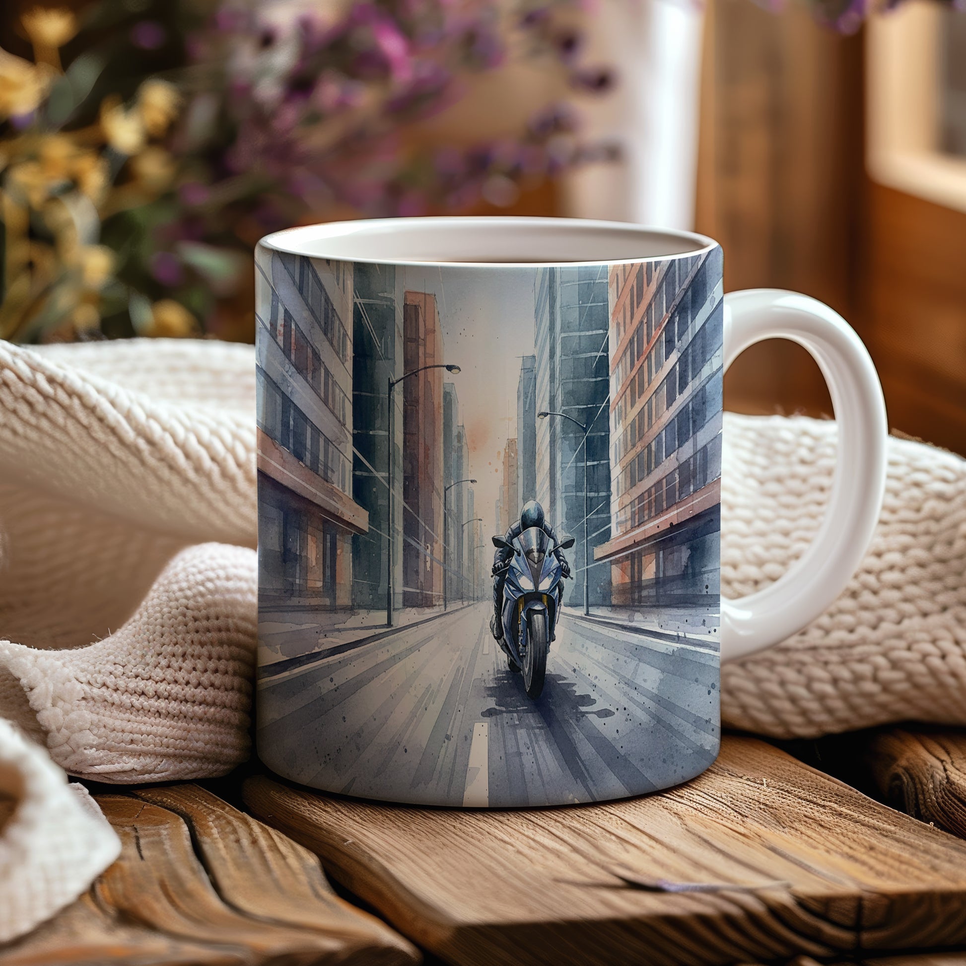 Objevte kouzlo rychlé jízdy s tímto hrnkem s akvarelovým motivem motorky v městské uličce. Ideální pro milovníky dobrodružství. Hrnek 330 ml – vhodný do myčky i mikrovlnky.
