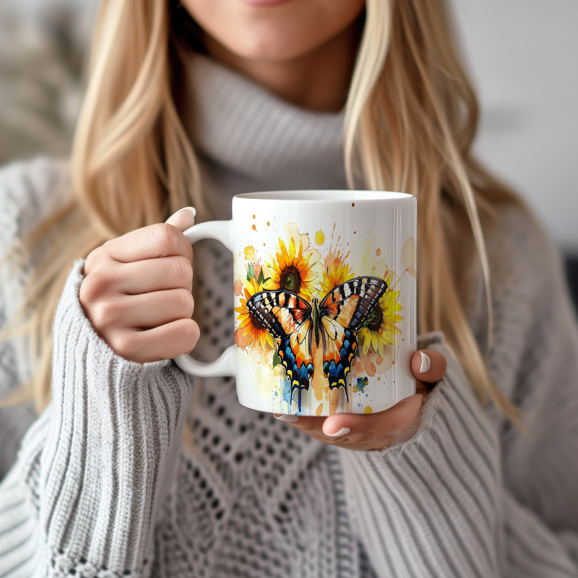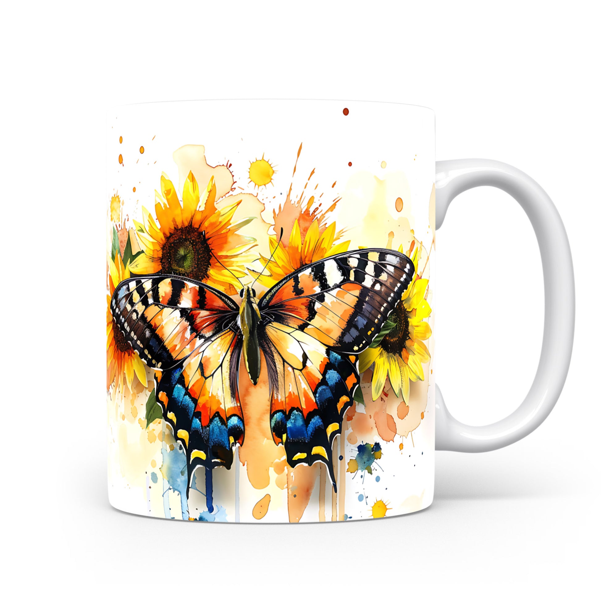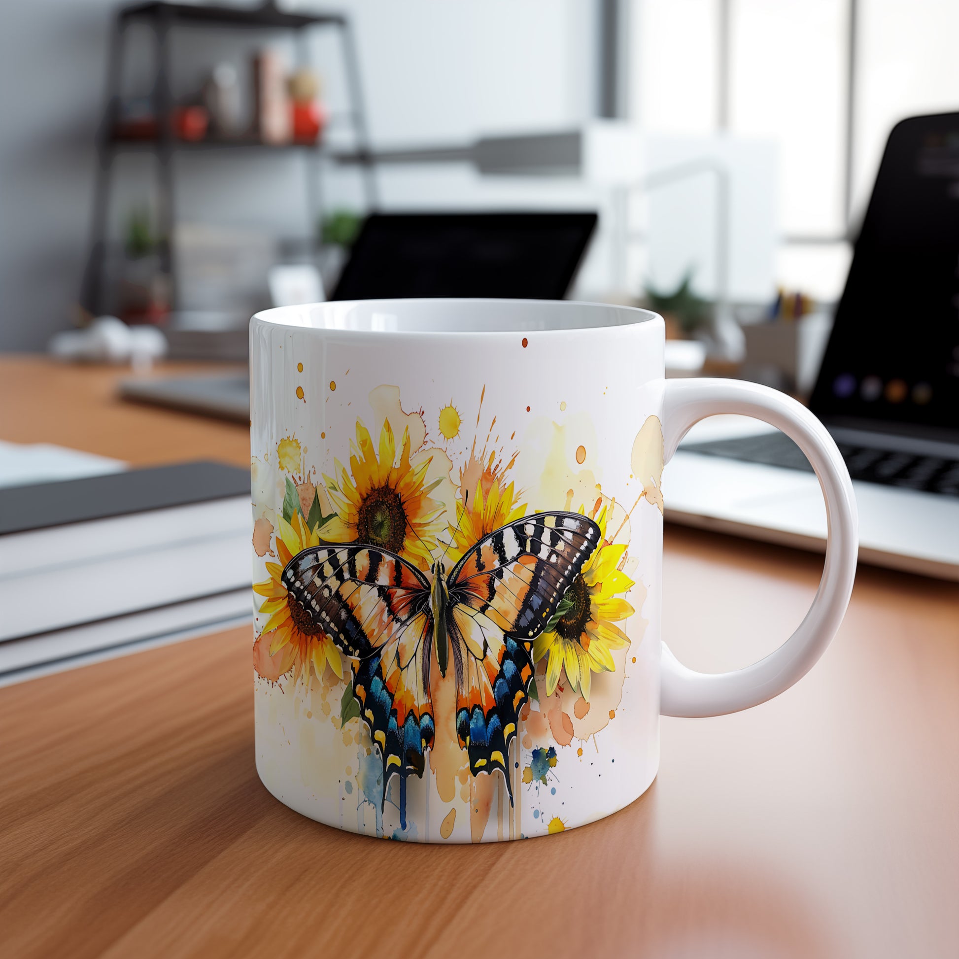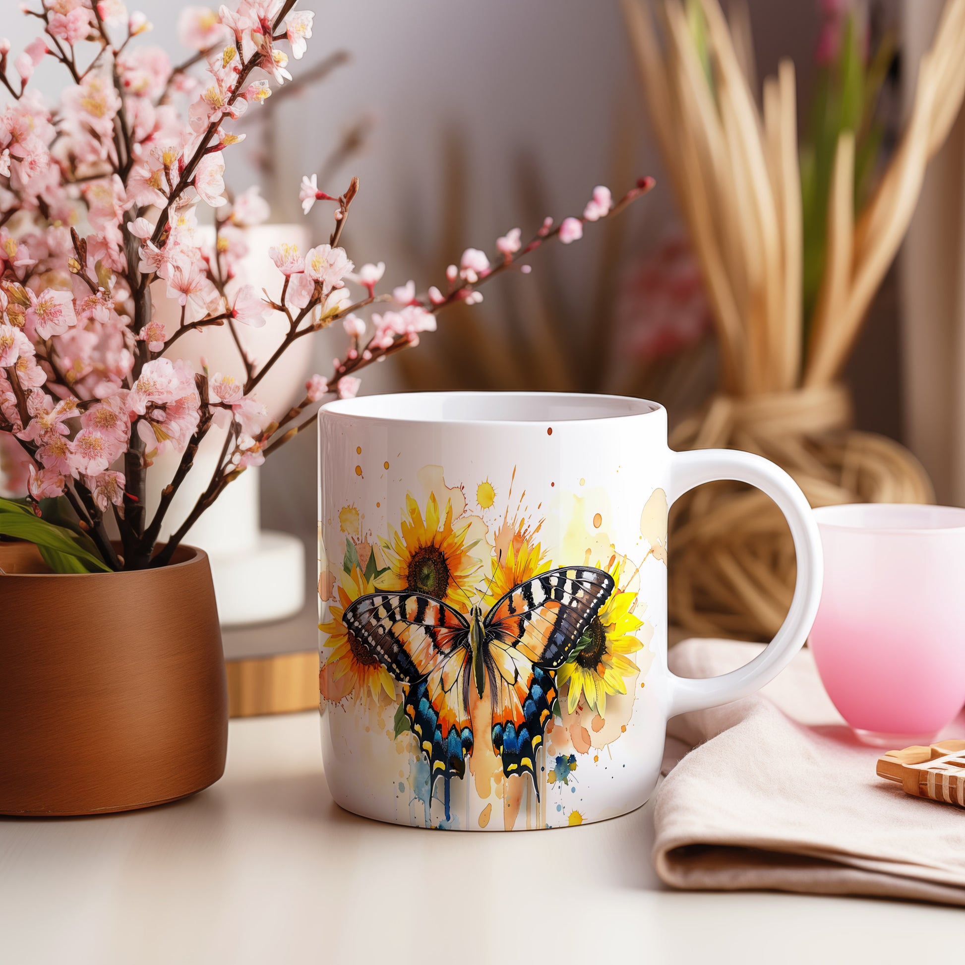 Tento hrnek s motivem motýla a slunečnic je skvělým kouskem pro všechny milovníky přírody a květin. Je ideální jako dárek pro přátele nebo rodinu, kteří ocení krásu barevných motivů. Hrnek má objem 330 ml, je vyroben z keramiky a je vhodný do myčky i mikrovlnky. Díky svému designu přináší do každodenního pití radost a pozitivní energii.