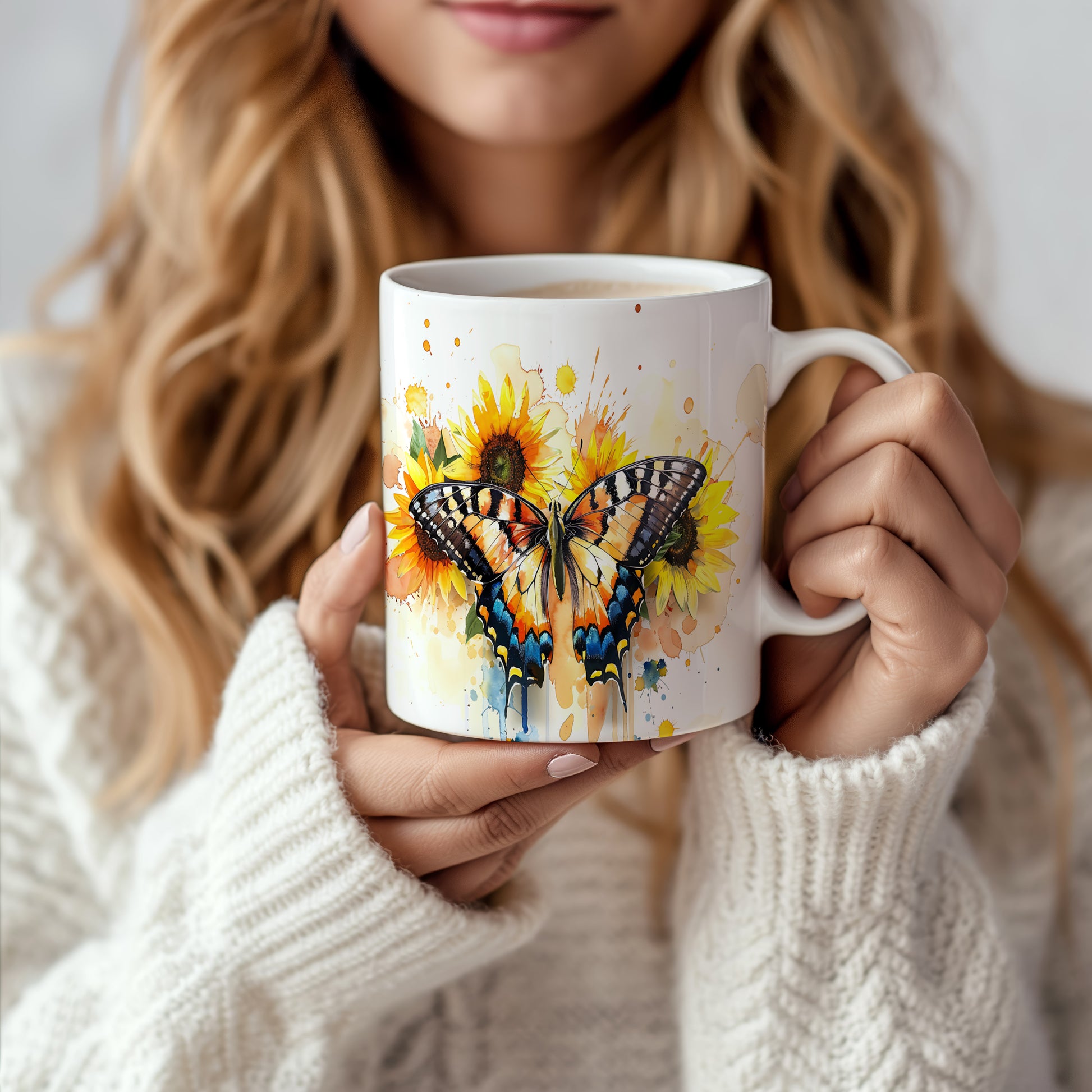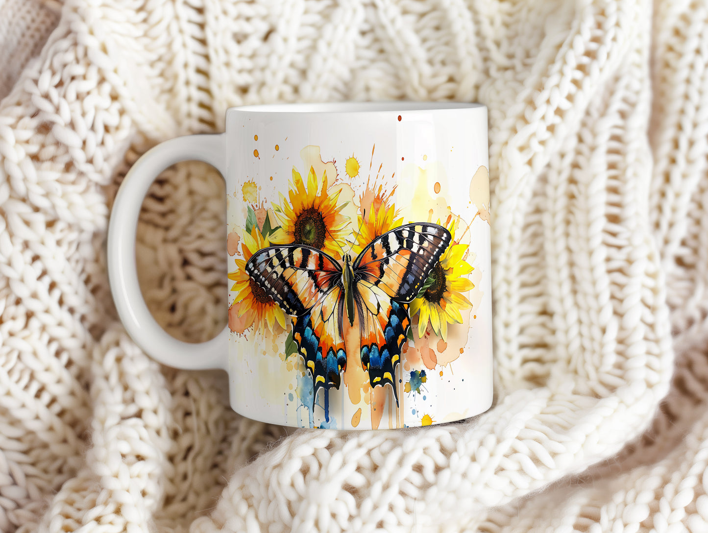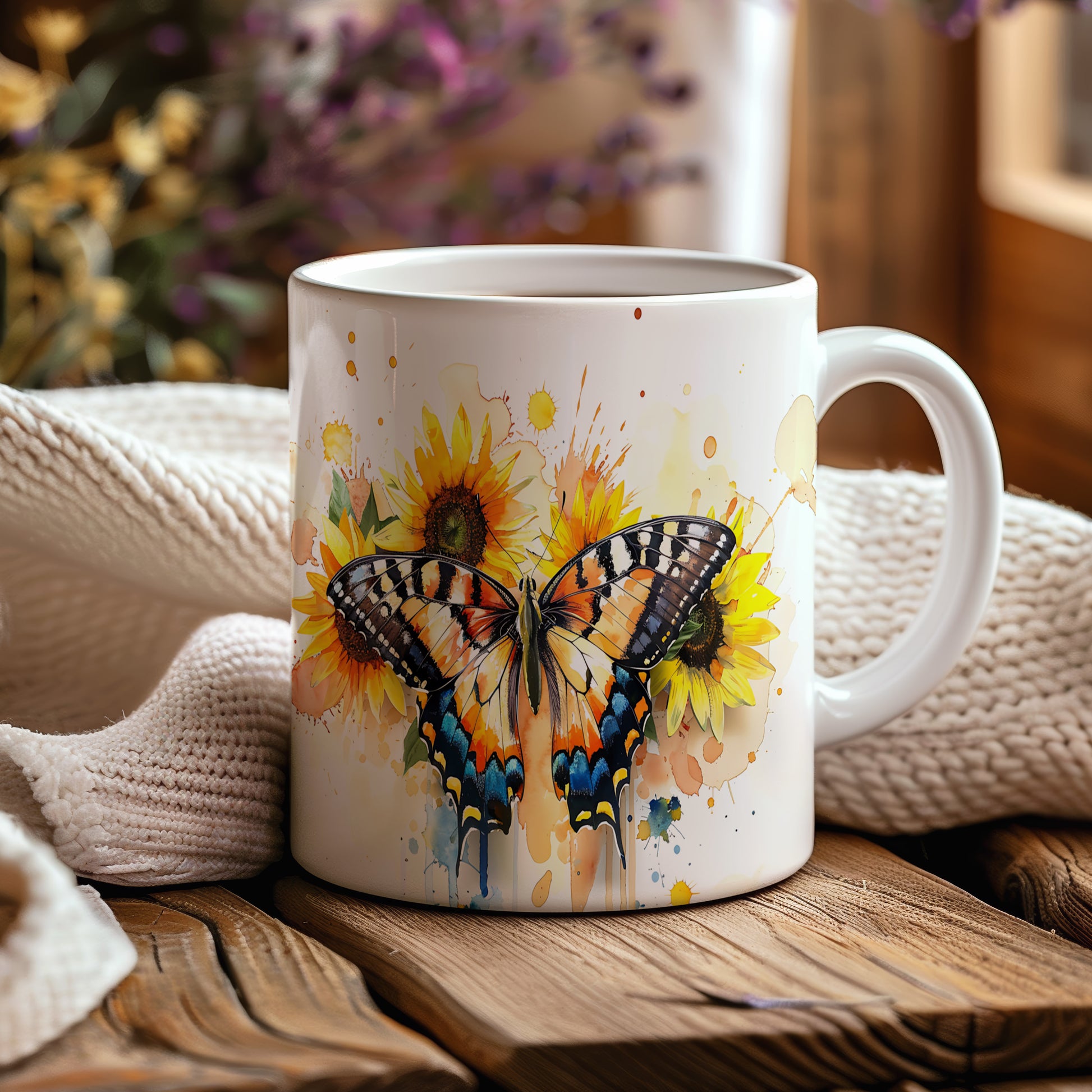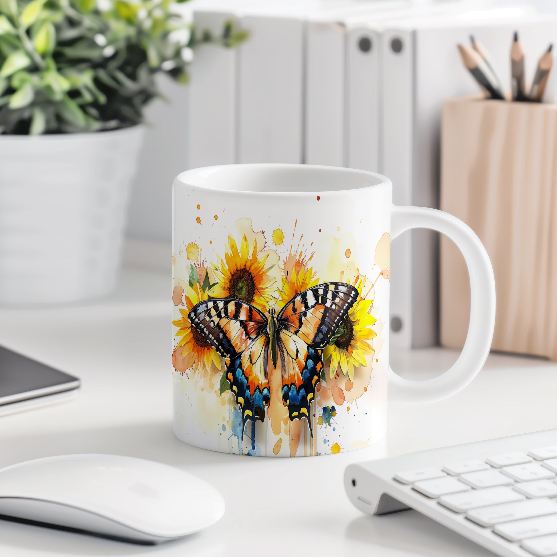 Tento hrnek s motivem motýla a slunečnic je skvělým kouskem pro všechny milovníky přírody a květin. Je ideální jako dárek pro přátele nebo rodinu, kteří ocení krásu barevných motivů. Hrnek má objem 330 ml, je vyroben z keramiky a je vhodný do myčky i mikrovlnky. Díky svému designu přináší do každodenního pití radost a pozitivní energii.
