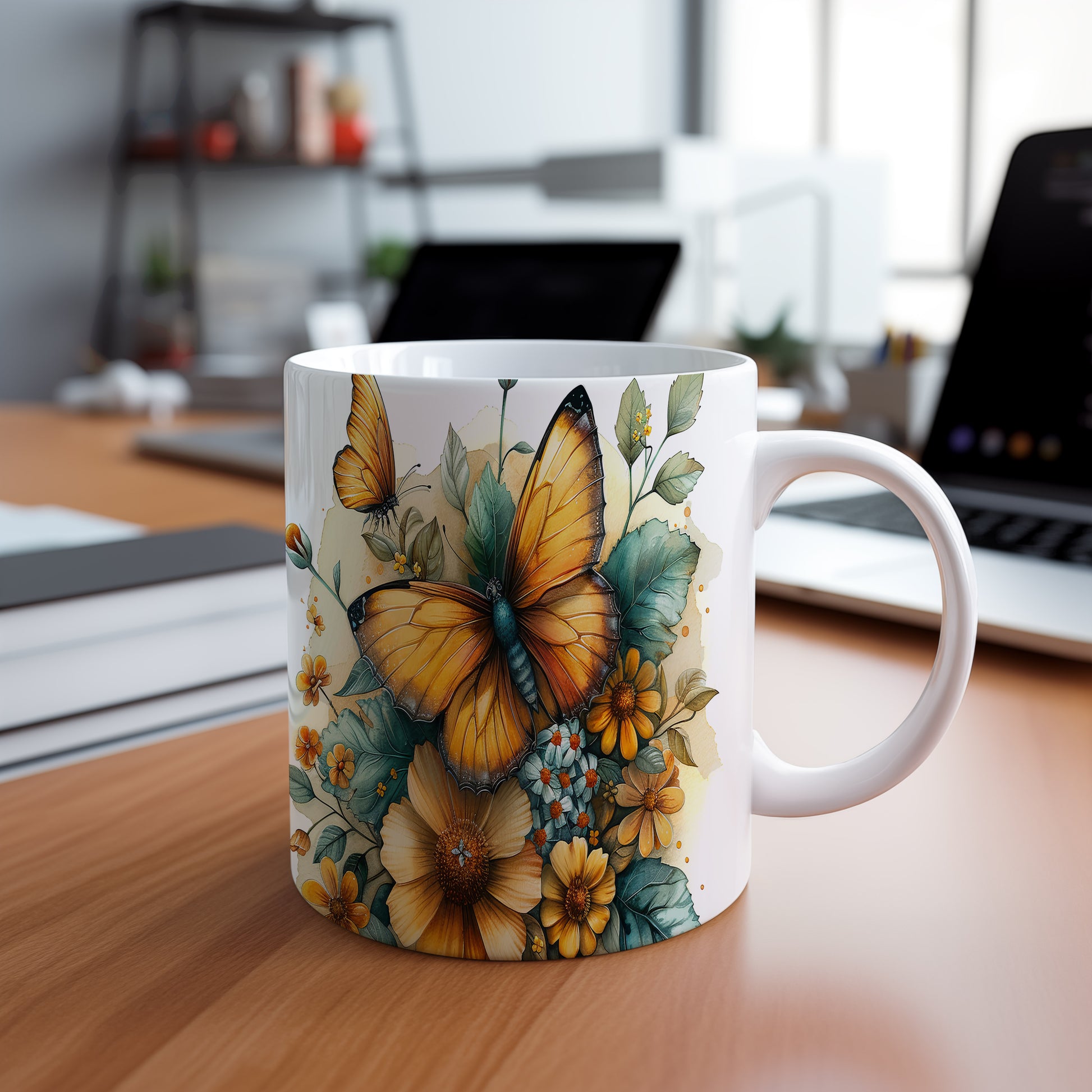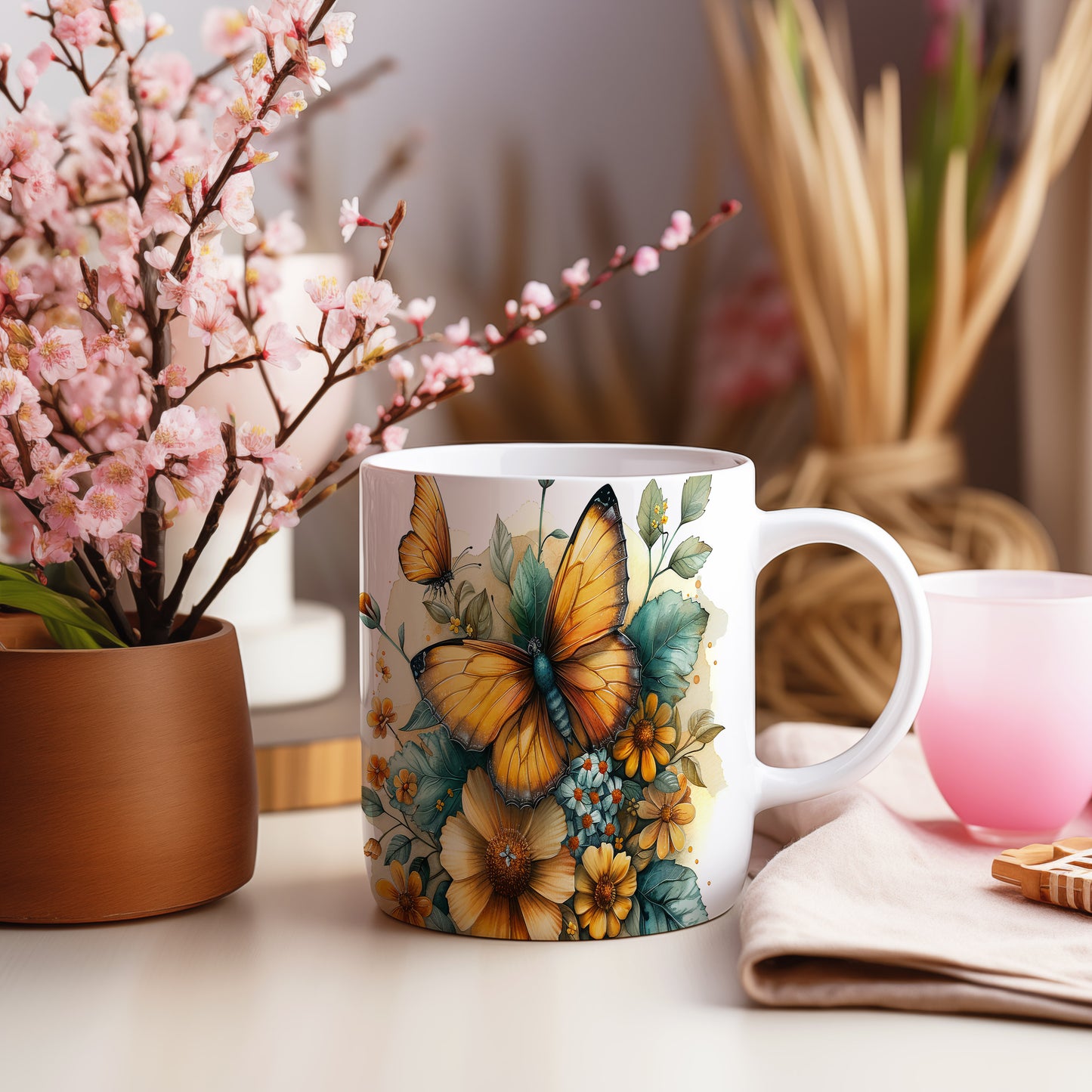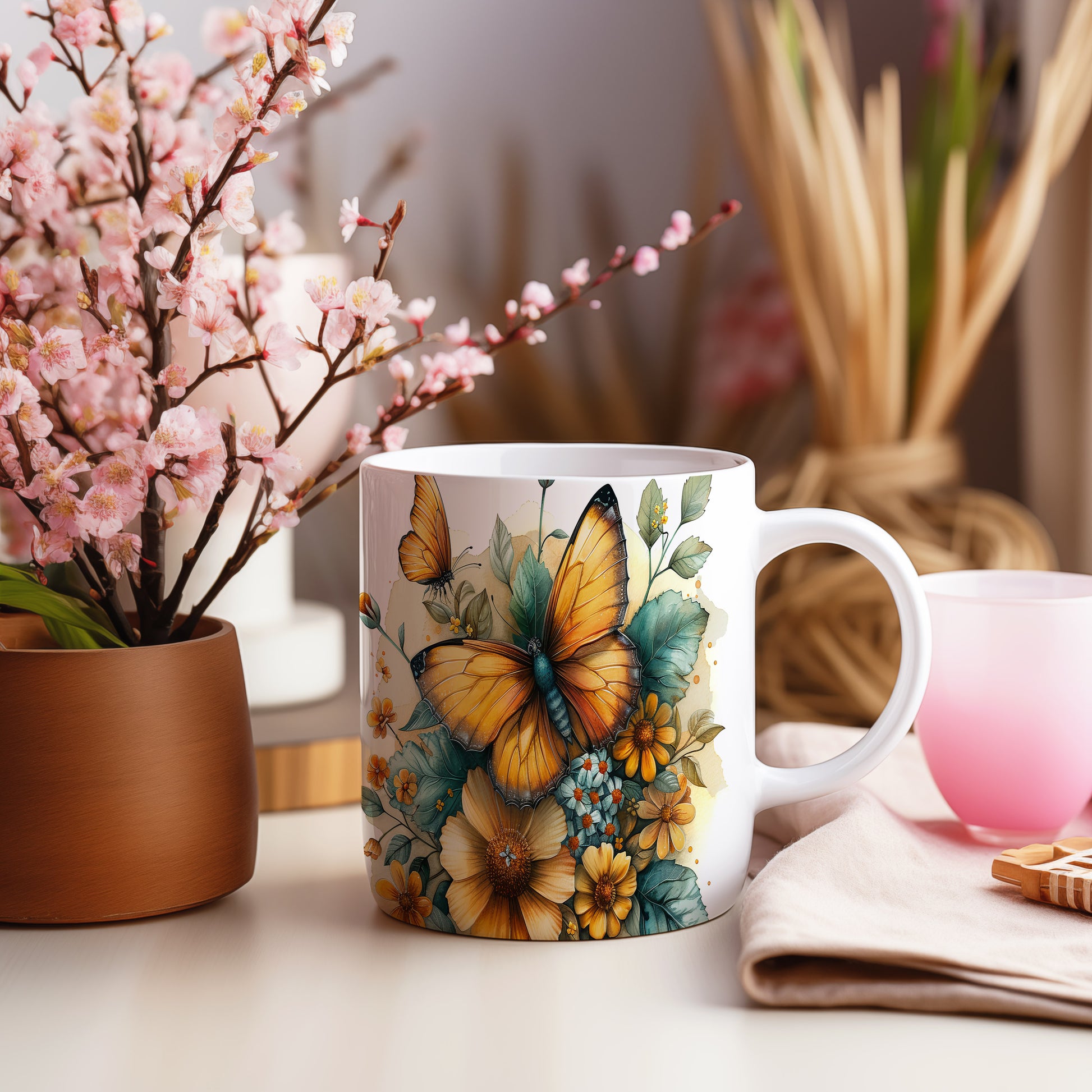 Tento keramický hrnek zobrazuje krásný motiv motýla mezi květinami, který přináší lehkost a přírodní krásu. Je ideální pro každodenní použití a skvělým dárkem pro milovníky přírody. Materiál: keramika. Objem: 330 ml. Vhodné do myčky i mikrovlnky. Používáním tohoto hrnku si užijete nejen stylový design, ale i pohodlné pití vašeho oblíbeného nápoje.